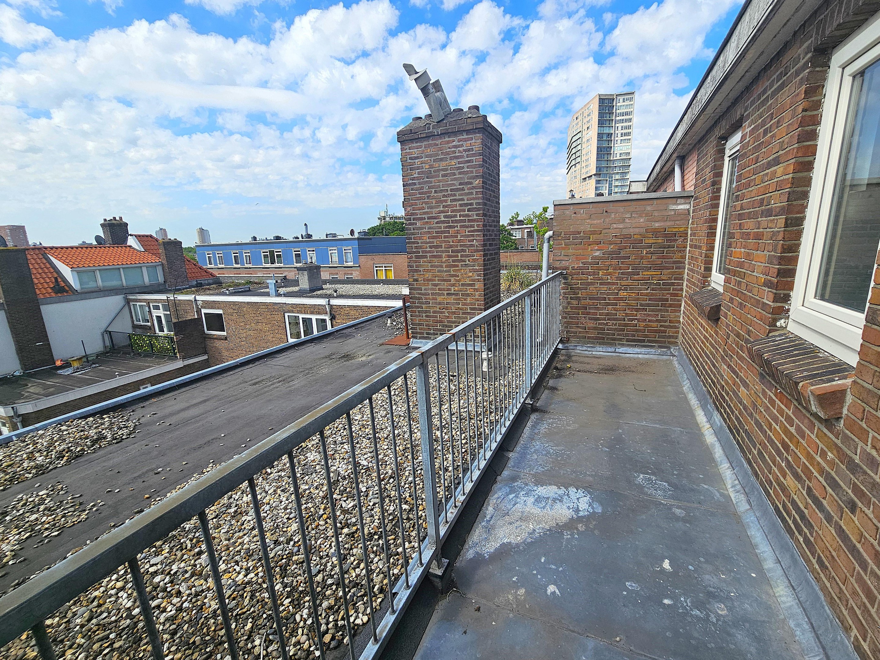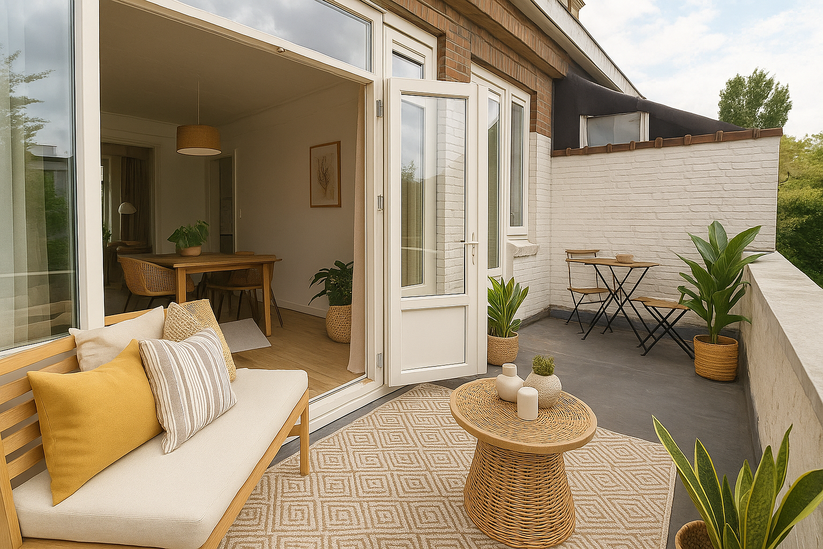 Twee royale buitenruimtes: een ruim terras aan de achterzijde en een balkon aan de voorzijde, samen goed voor ca. 25 m2. Ideaal om buiten te tafelen, te relaxen of te genieten.