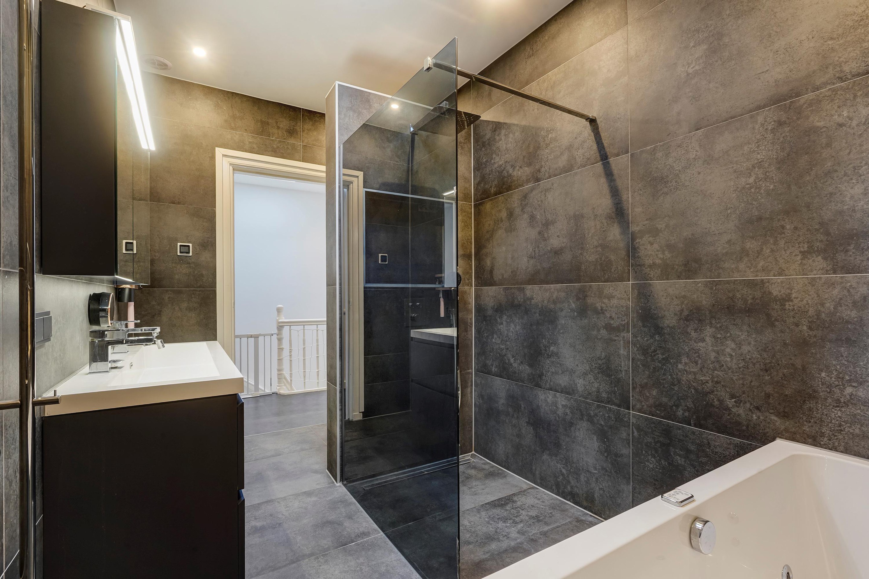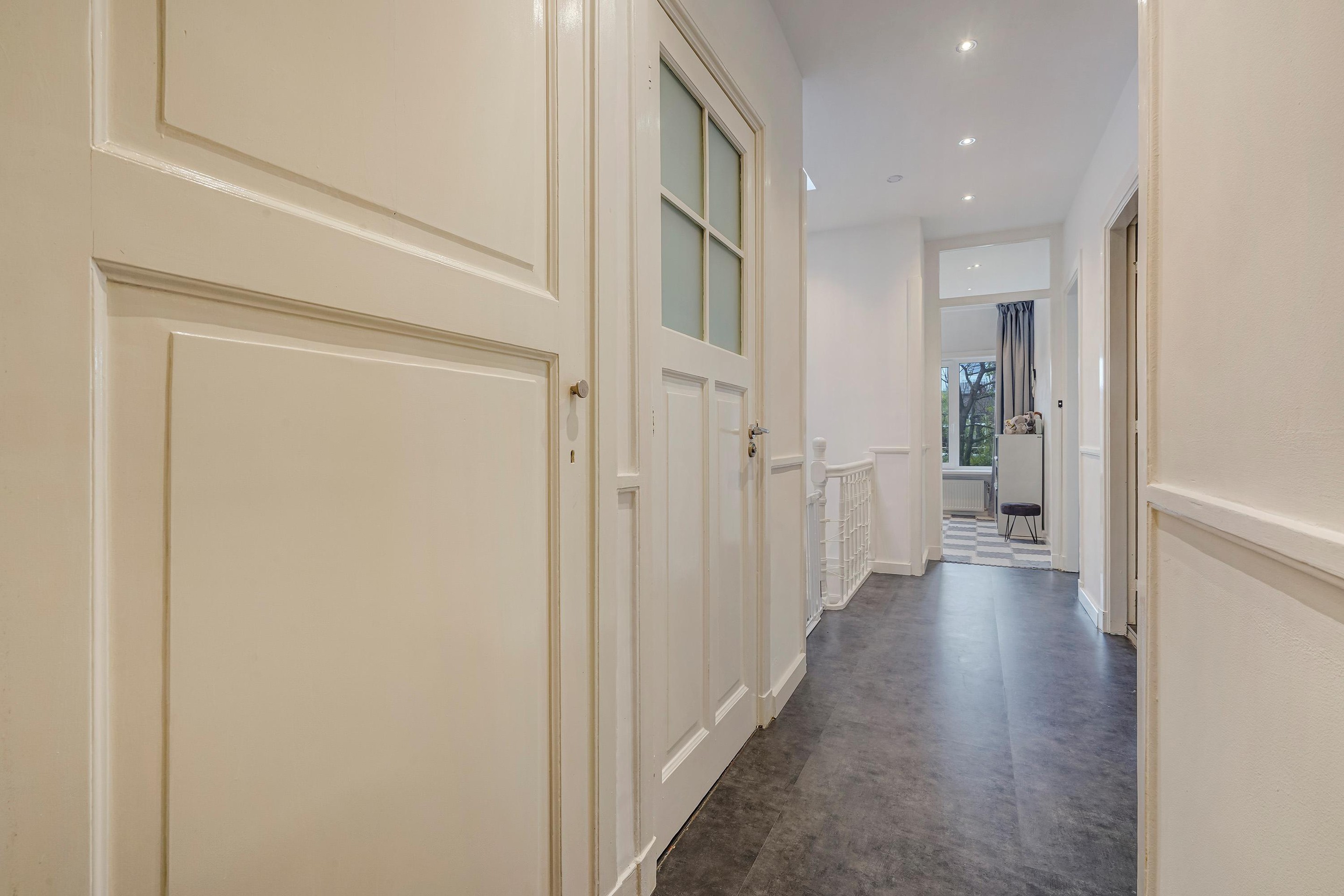 Second floor: spacious landing with a second toilet, storage room with the central heating boiler (Remeha, built in 2012) and washing machine connection. At the front of the house, you will find two spacious bedrooms, both large enough for a double bed. At the rear of the house, you will find the master bedroom with access to the terrace and the adjacent bathroom. The bathroom features a jacuzzi, walk-in shower, double vanity, third toilet, electric underfloor heating, and mechanical ventilation. The second back room has been converted into a walk-in closet, but can, of course, be used as a bedroom again if desired.