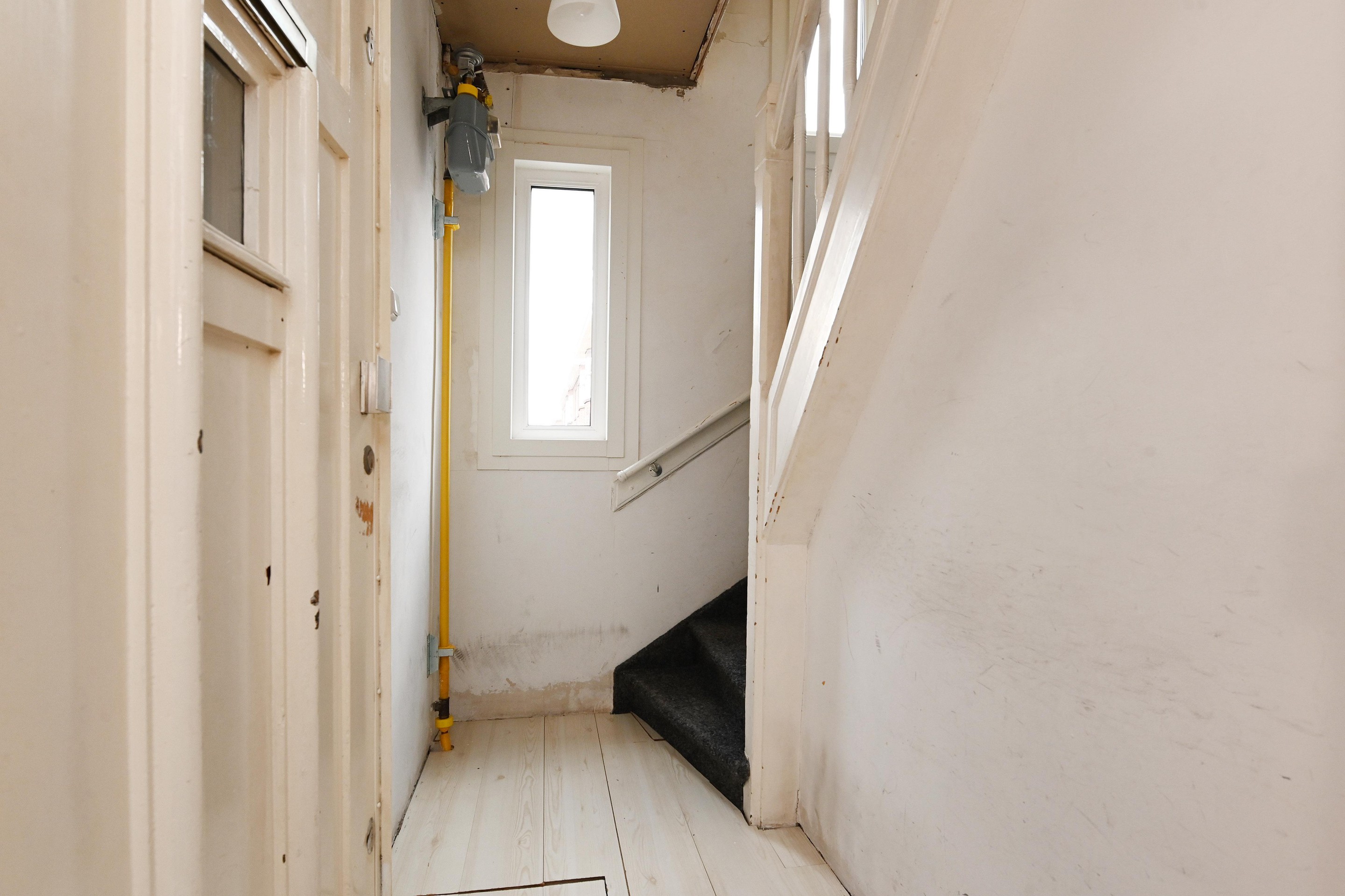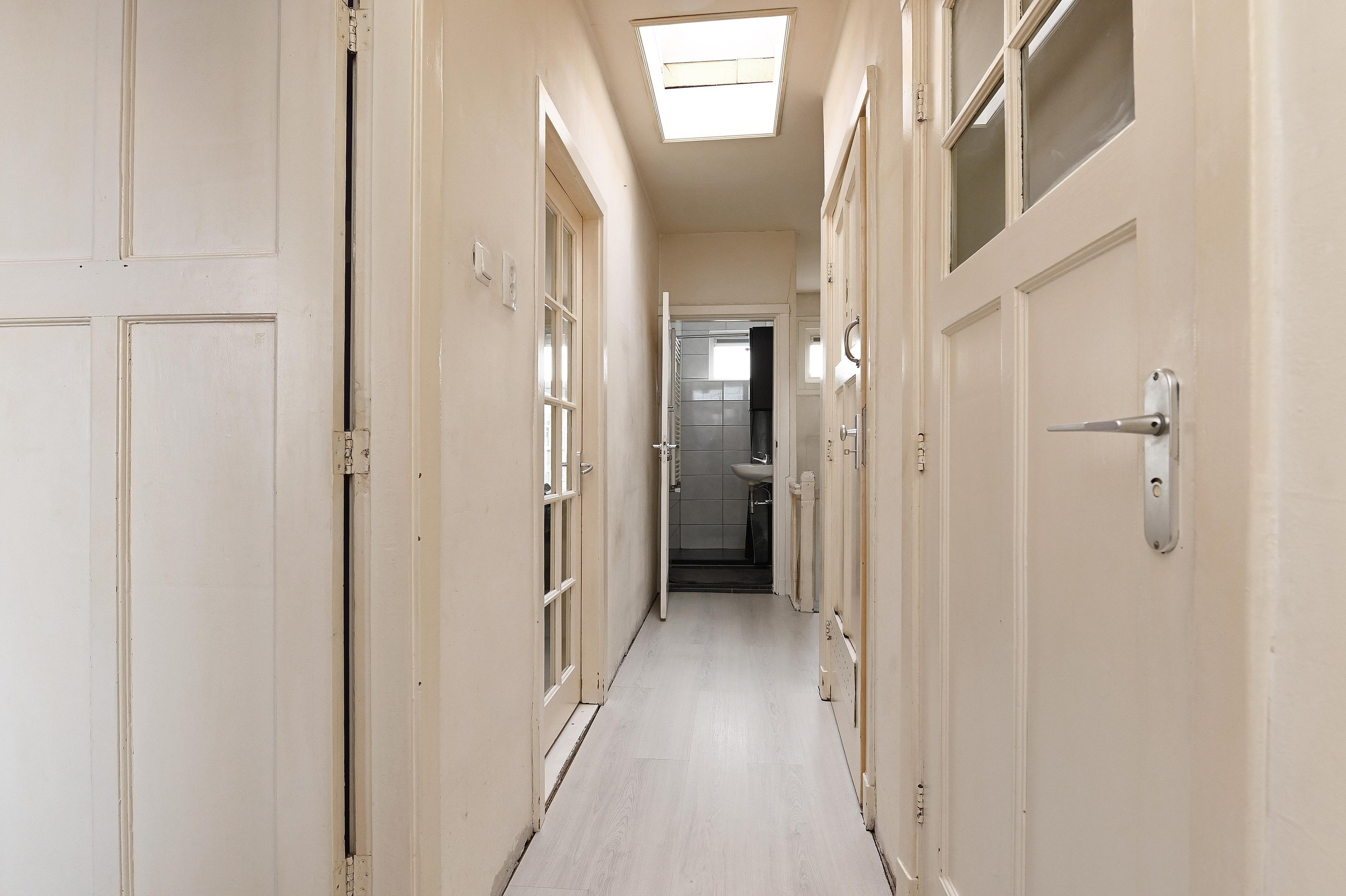Op de tweede verdieping vind je de overloop met dakraam, een vaste kast met meters en de opstelplaats van de CV-ketel (2019, eigendom) en wasmachine.