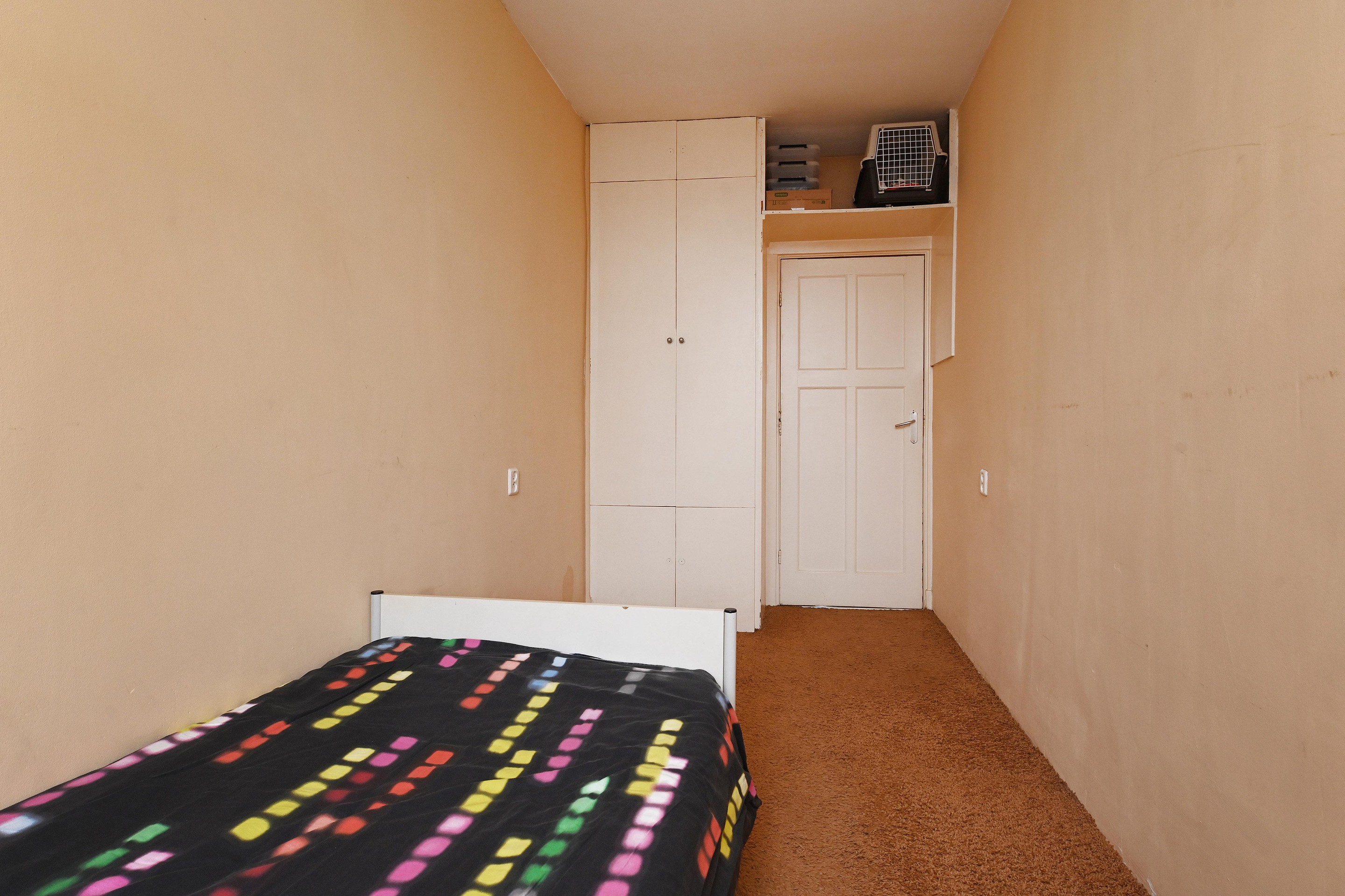 De kleine slaapkamer is toegankelijk vanuit de woonkamer. De ruime tweede slaapkamer ligt aan de achterzijde.