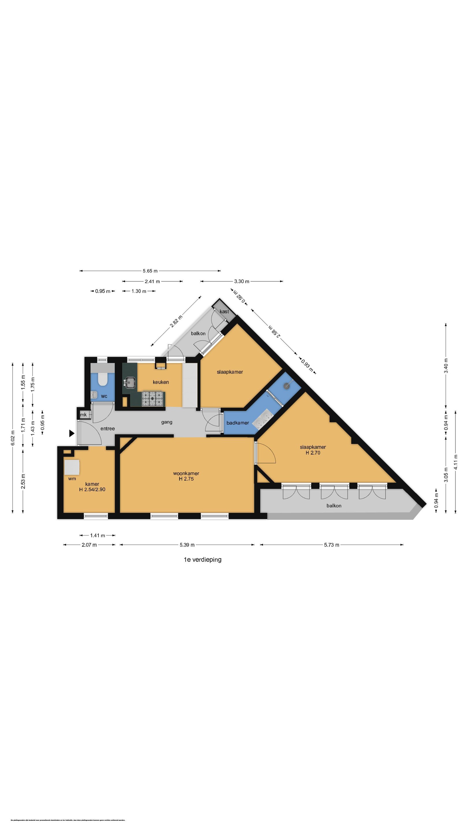 Zie de plattegrond voor de exacte maatvoering en de speelse hoekindeling.