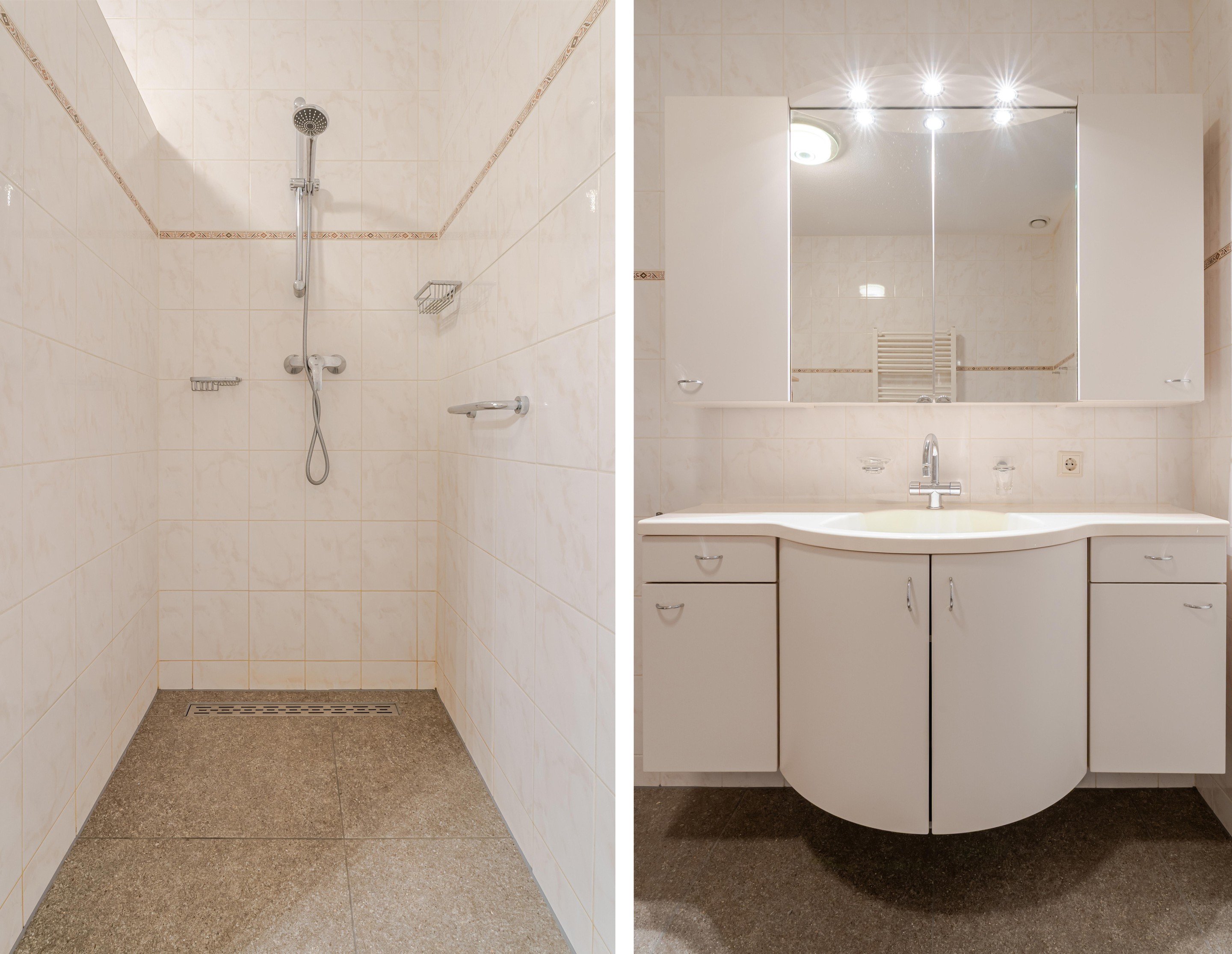 Beide vertrekken zijn volledige betegeld.