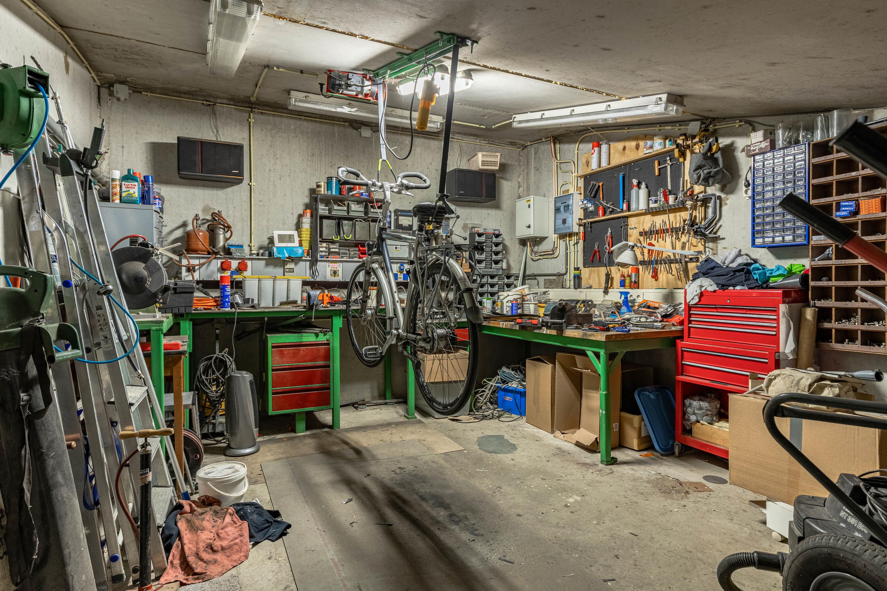 Unieke klusruimte in de parkeergarage.