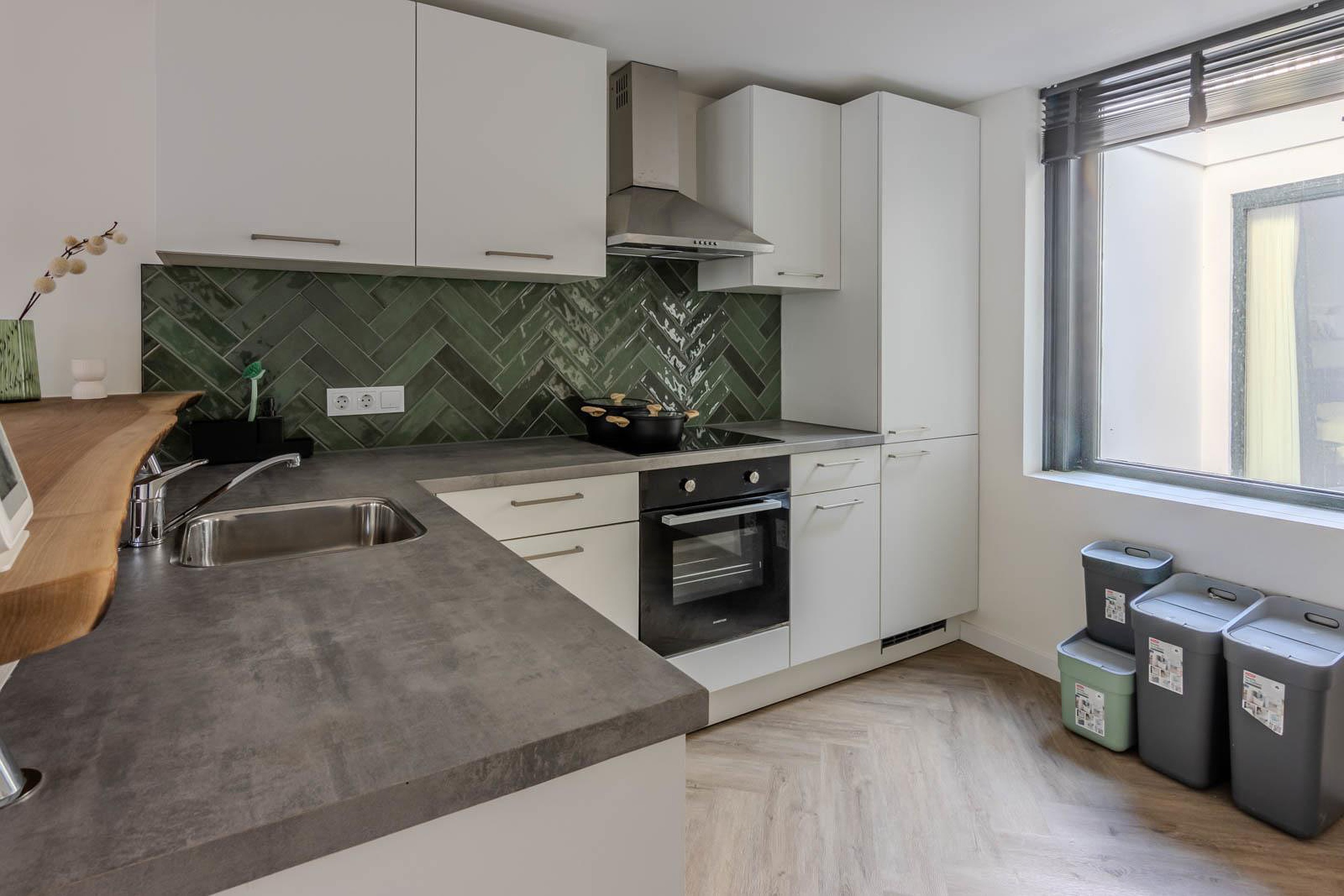 Het volledige appartement is in 2023 volledig gerenoveerd en is voorzien van een stijlvolle pvc vloer in visgraat motief en een strakke wandafwerking. Ook is de gehele woning voorzien van elektrische vloerverwarming.