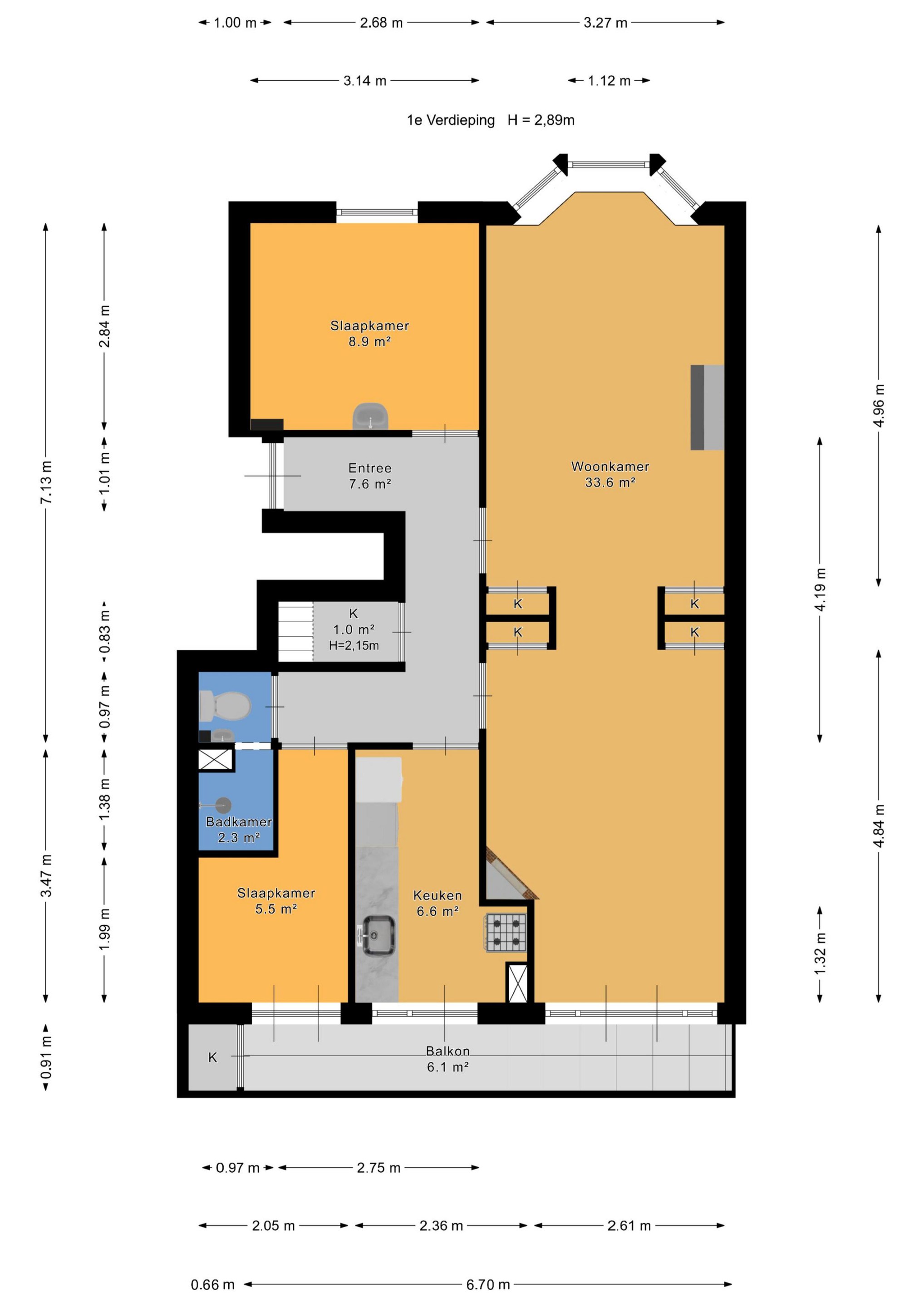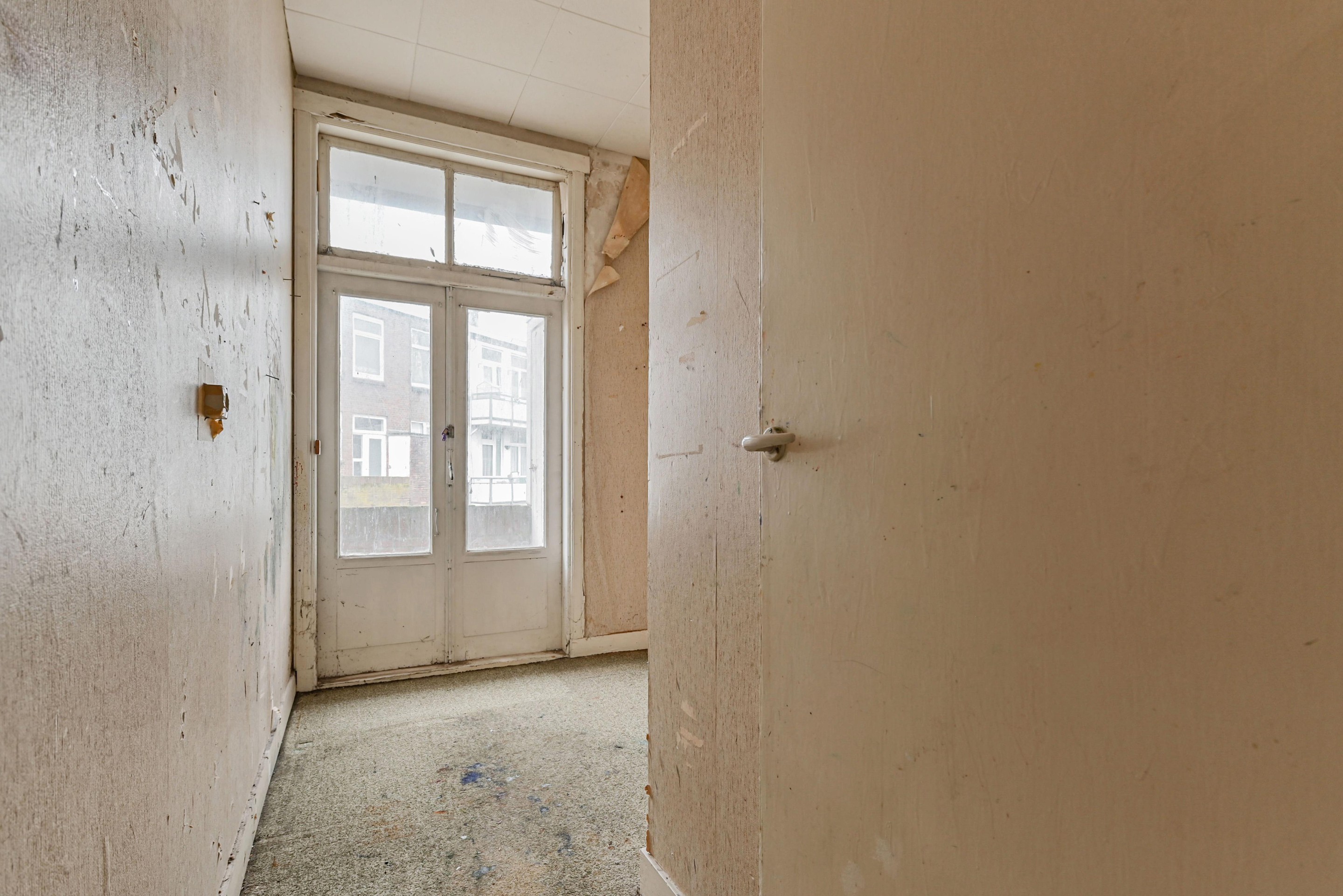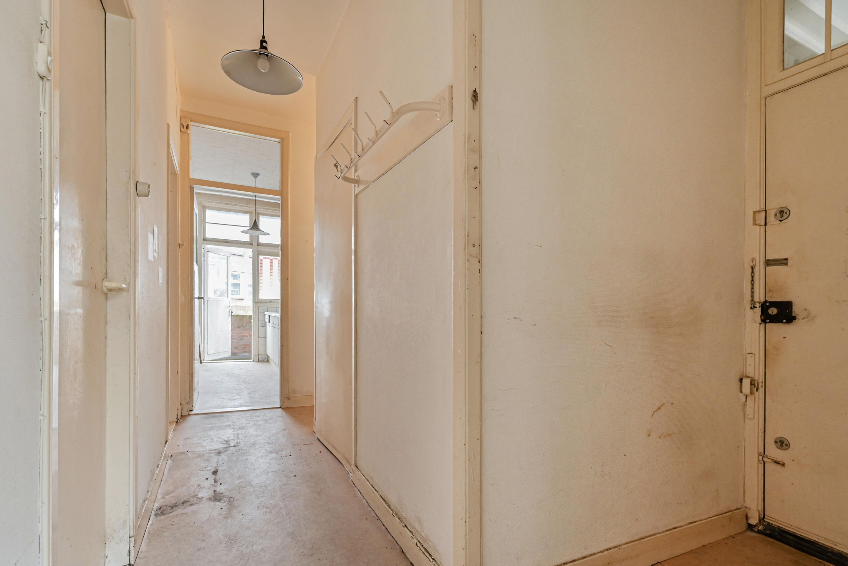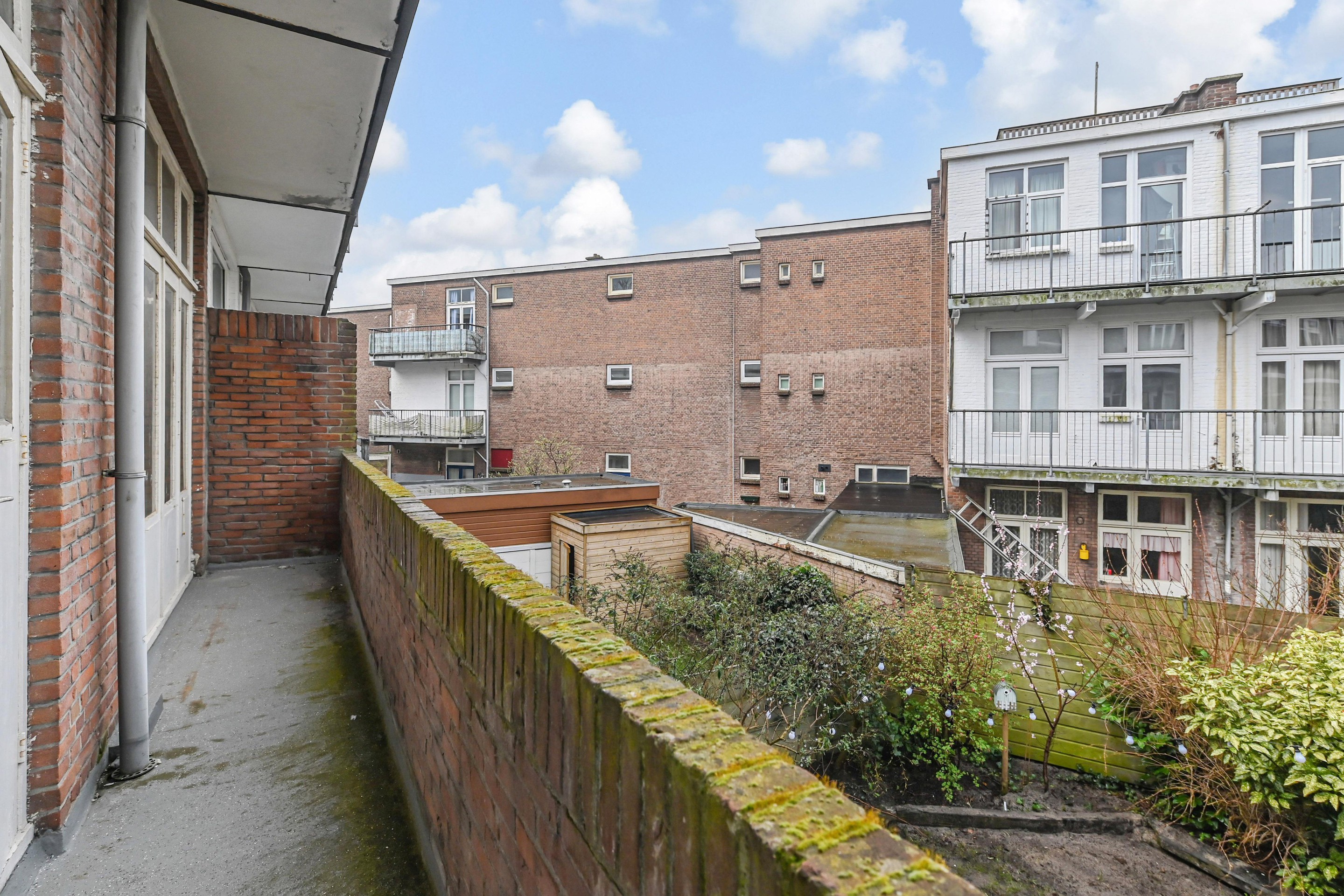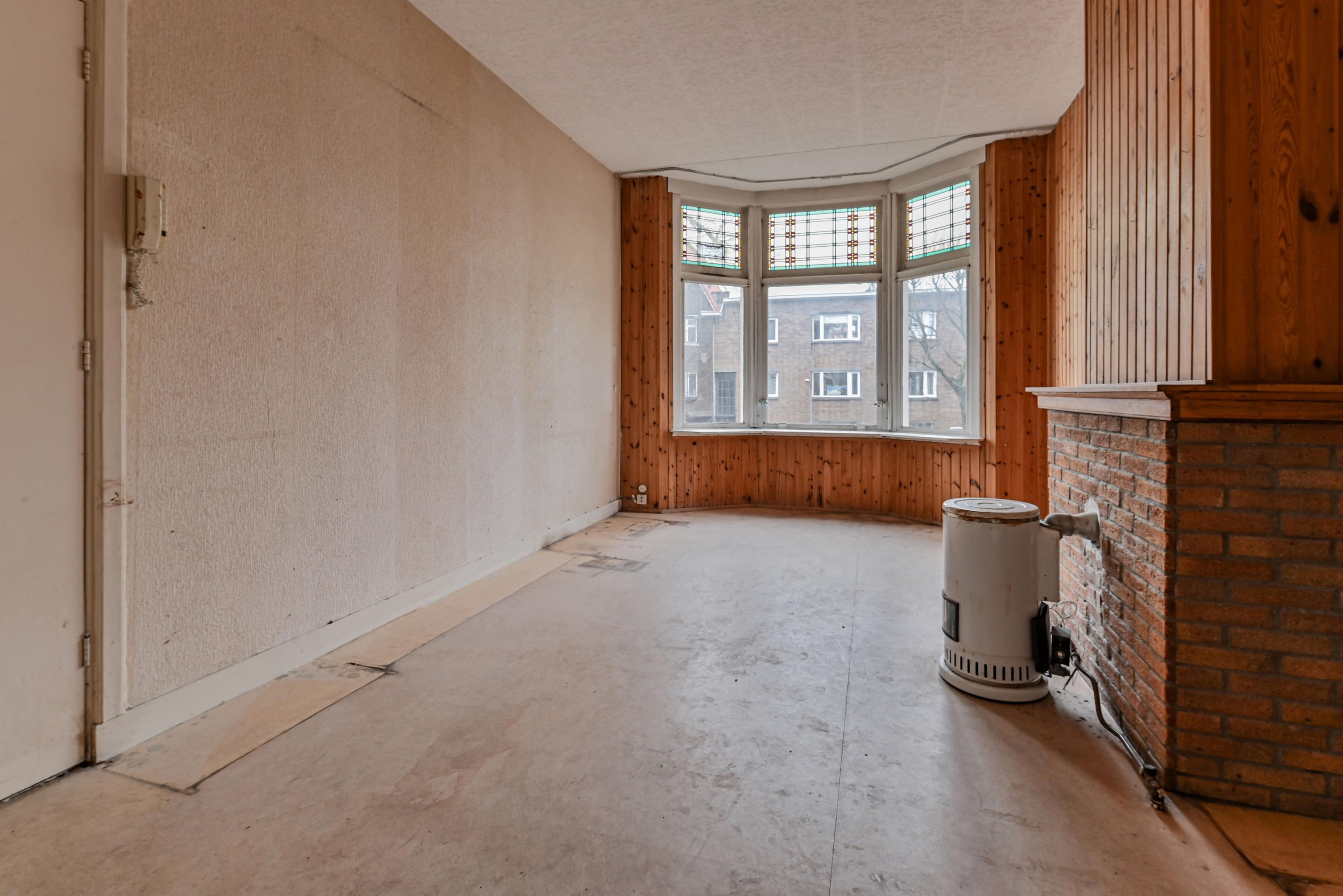 Aan de voorzijde bevindt zich de ruime en lichte woonkamer met erker, wat zorgt voor extra lichtinval en een ruimtelijk gevoel. Aan de achterzijde is de achterkamer te vinden welke toegang biedt tot het balkon.