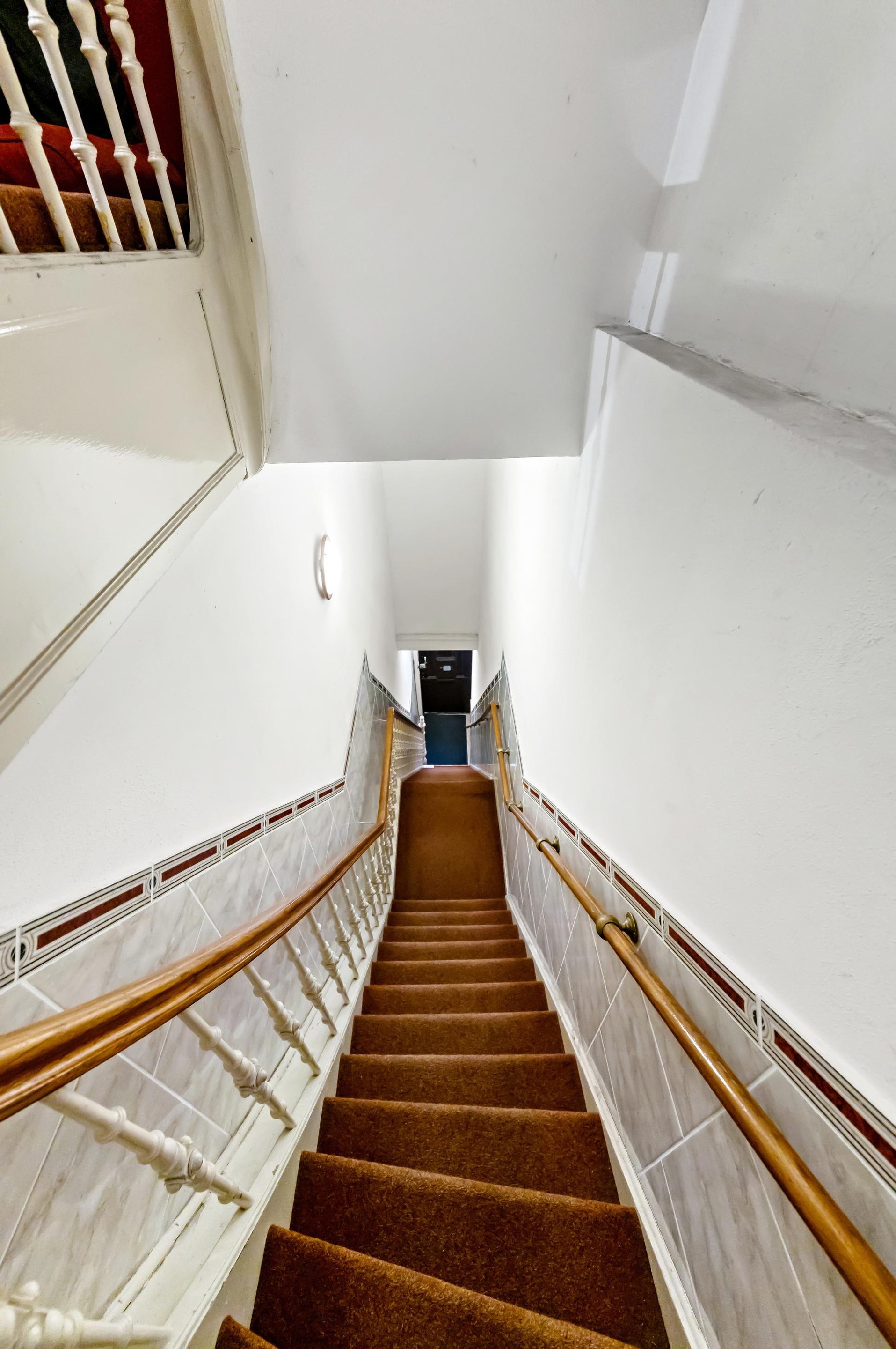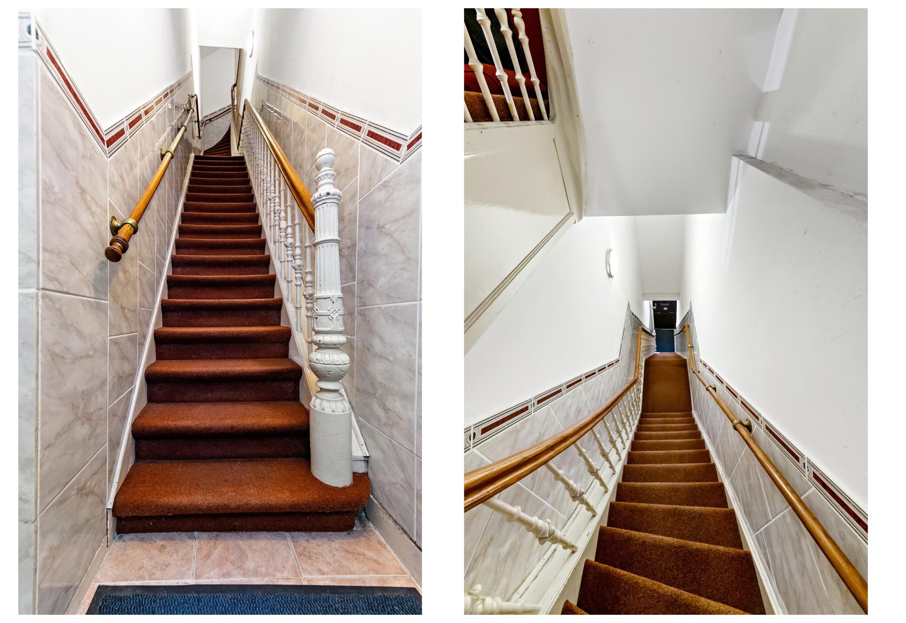 The neat communal entrance leads to the stairs to the second floor where the flat is located.