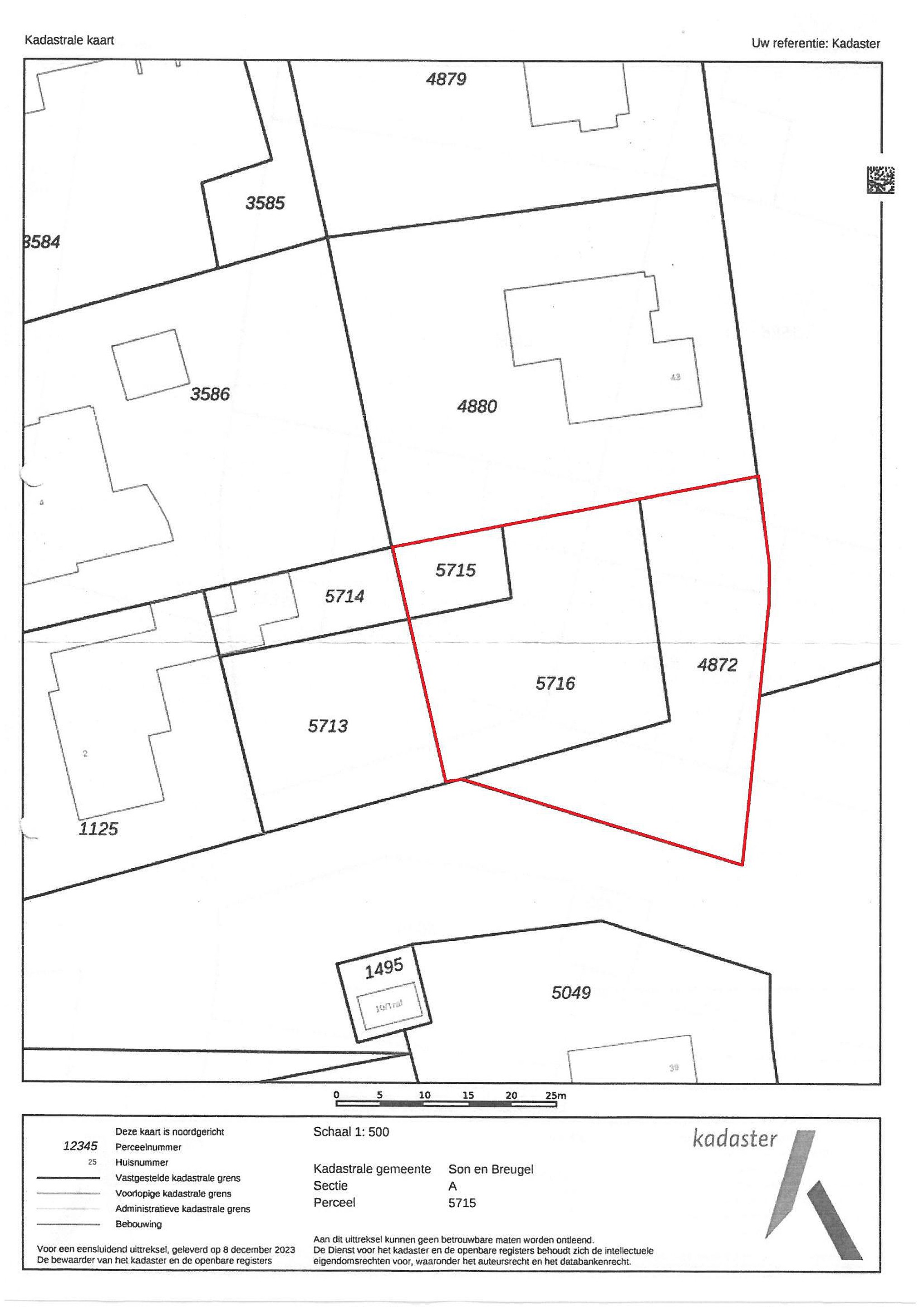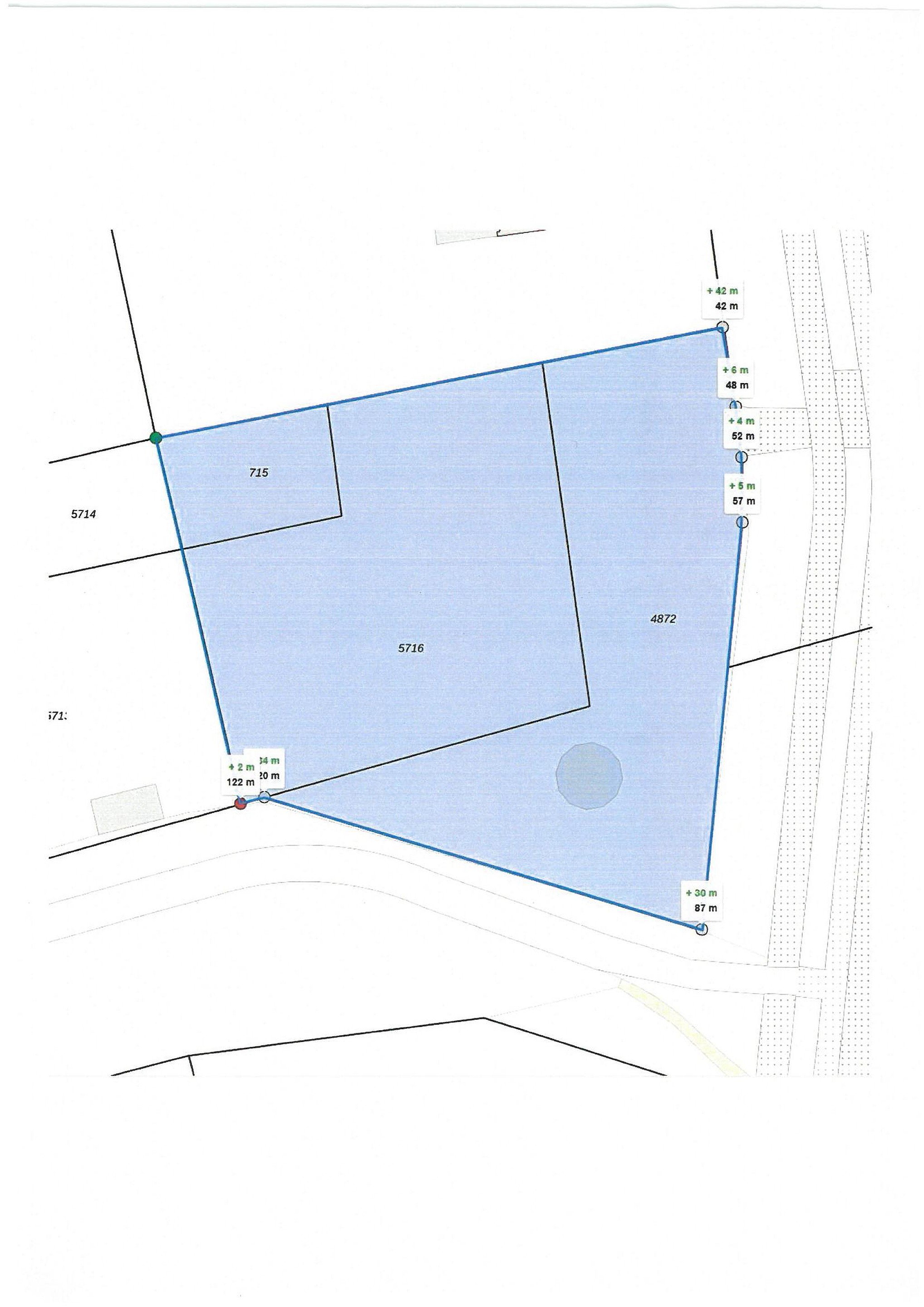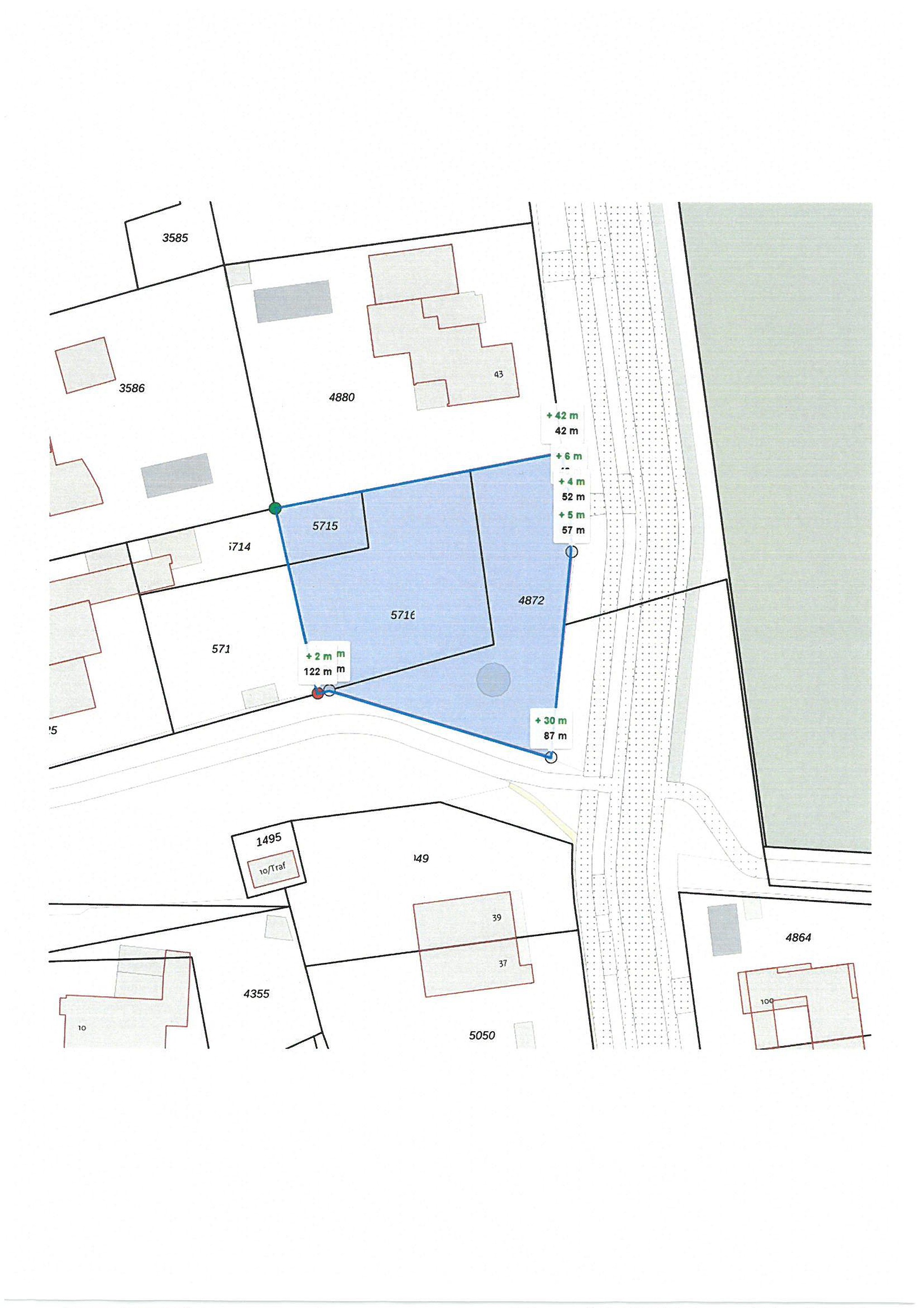 Het perceel van 1371 m2 bestaat uit de kadastrale nummers A 4872, A 5716 en A 5715.