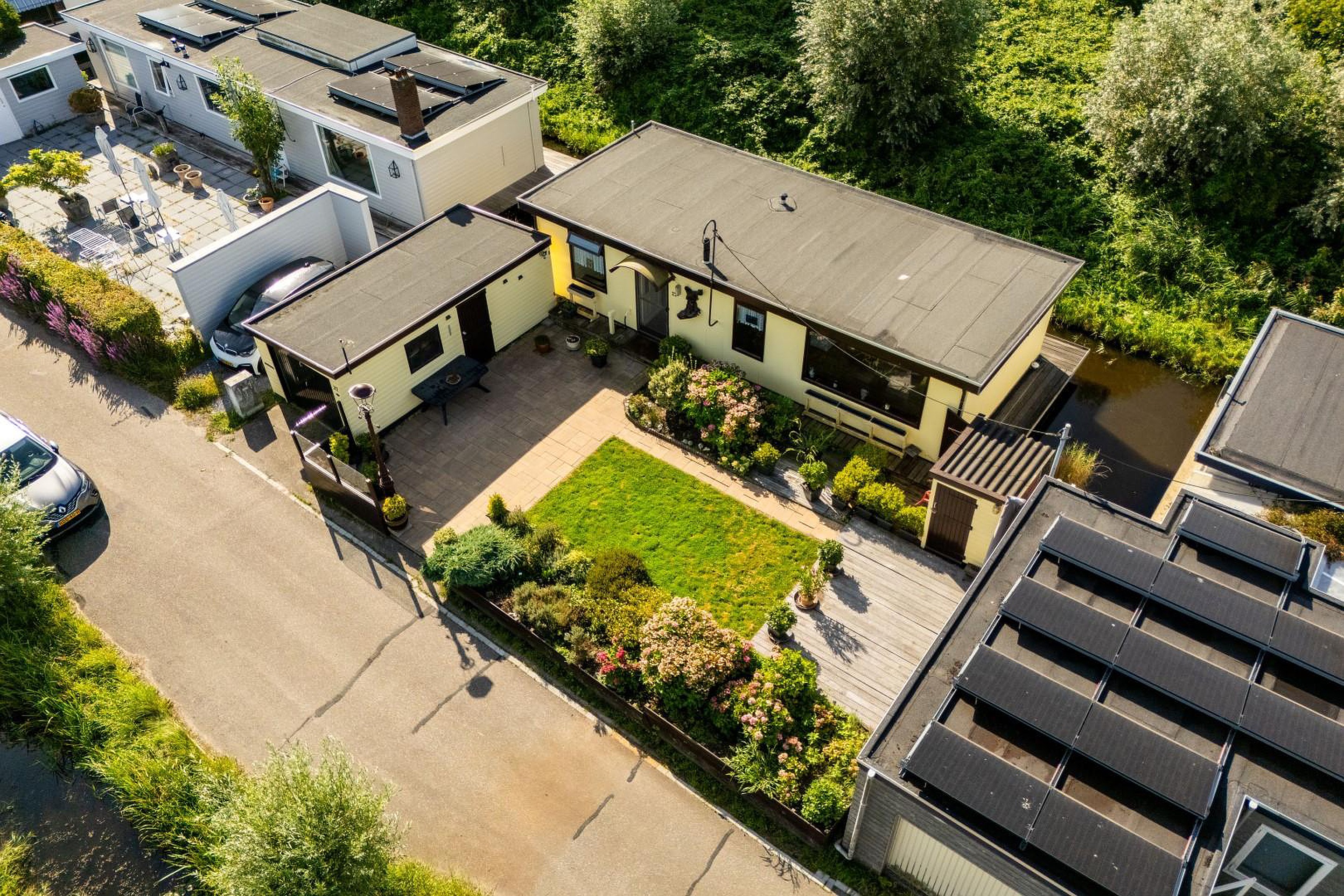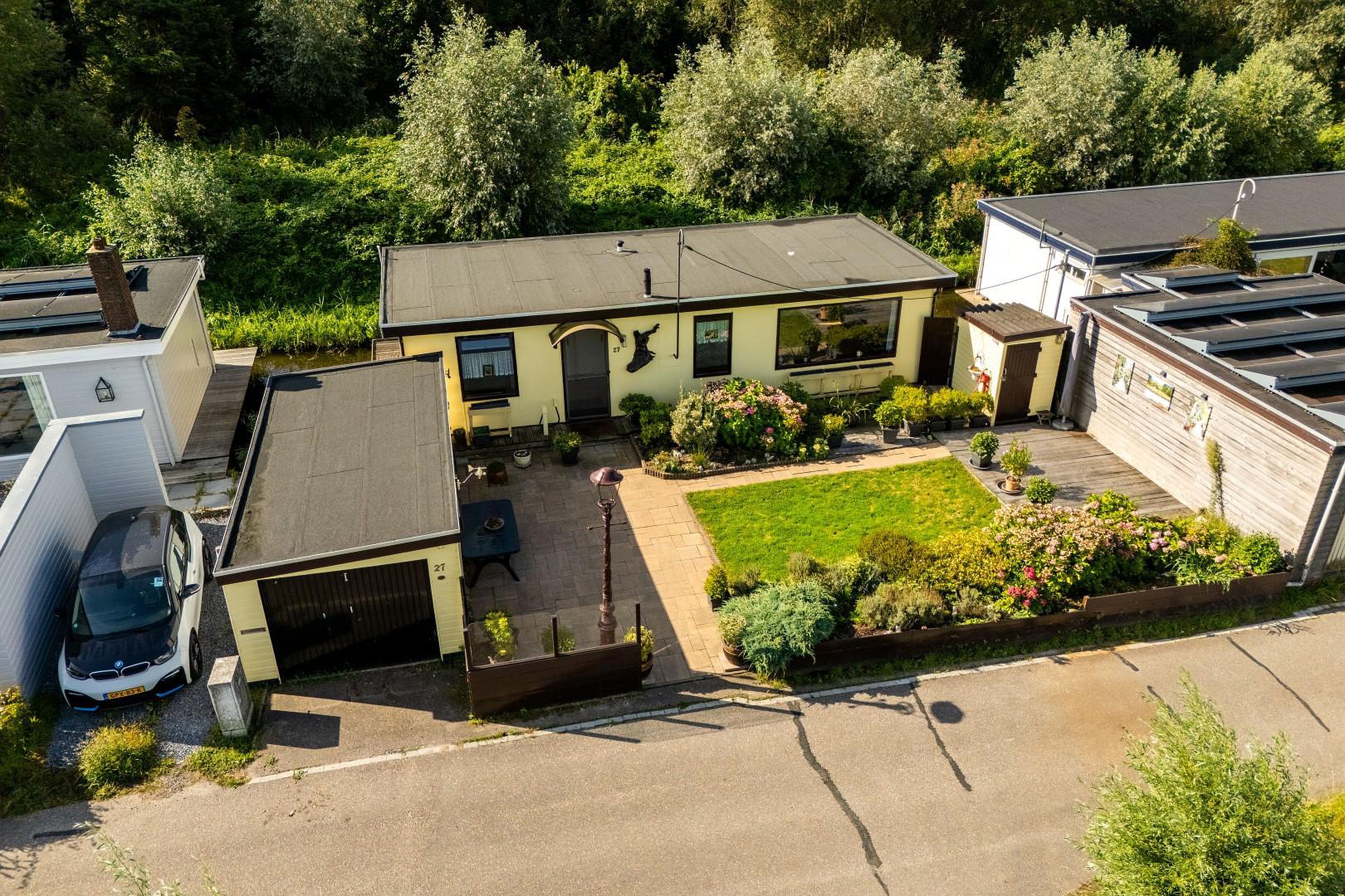 Op het perceel van 260 m2 eigen grond bevinden zich een vrijstaande garage van 21 m2 en een berging van 3 m2. De garage en woonark zijn voorzien van nieuwe dakbedekking in 2023. U parkeert hier eenvoudig op eigen terrein (in de garage) en heeft volop ruimte rondom de woning om te genieten van het buitenleven.