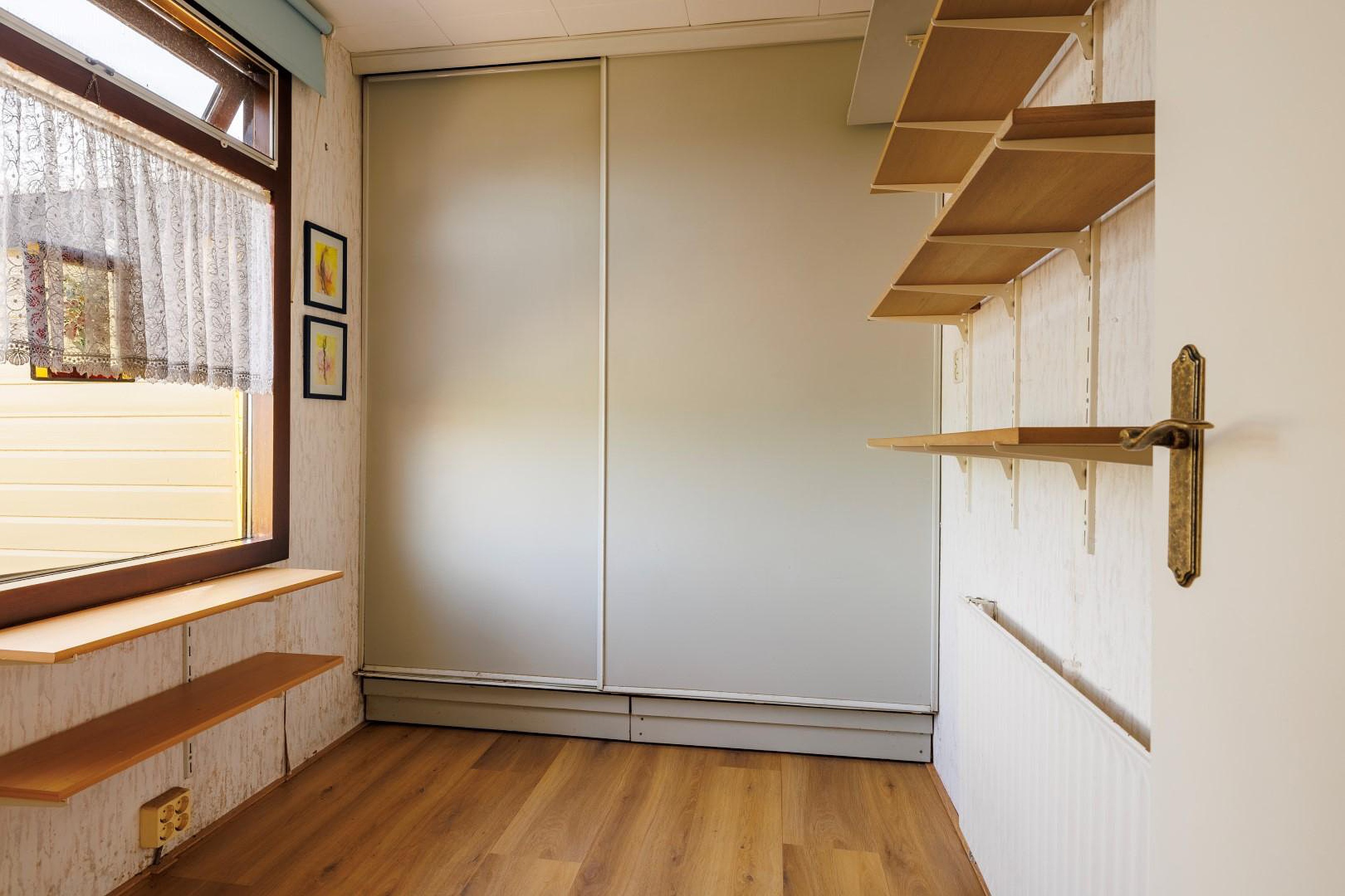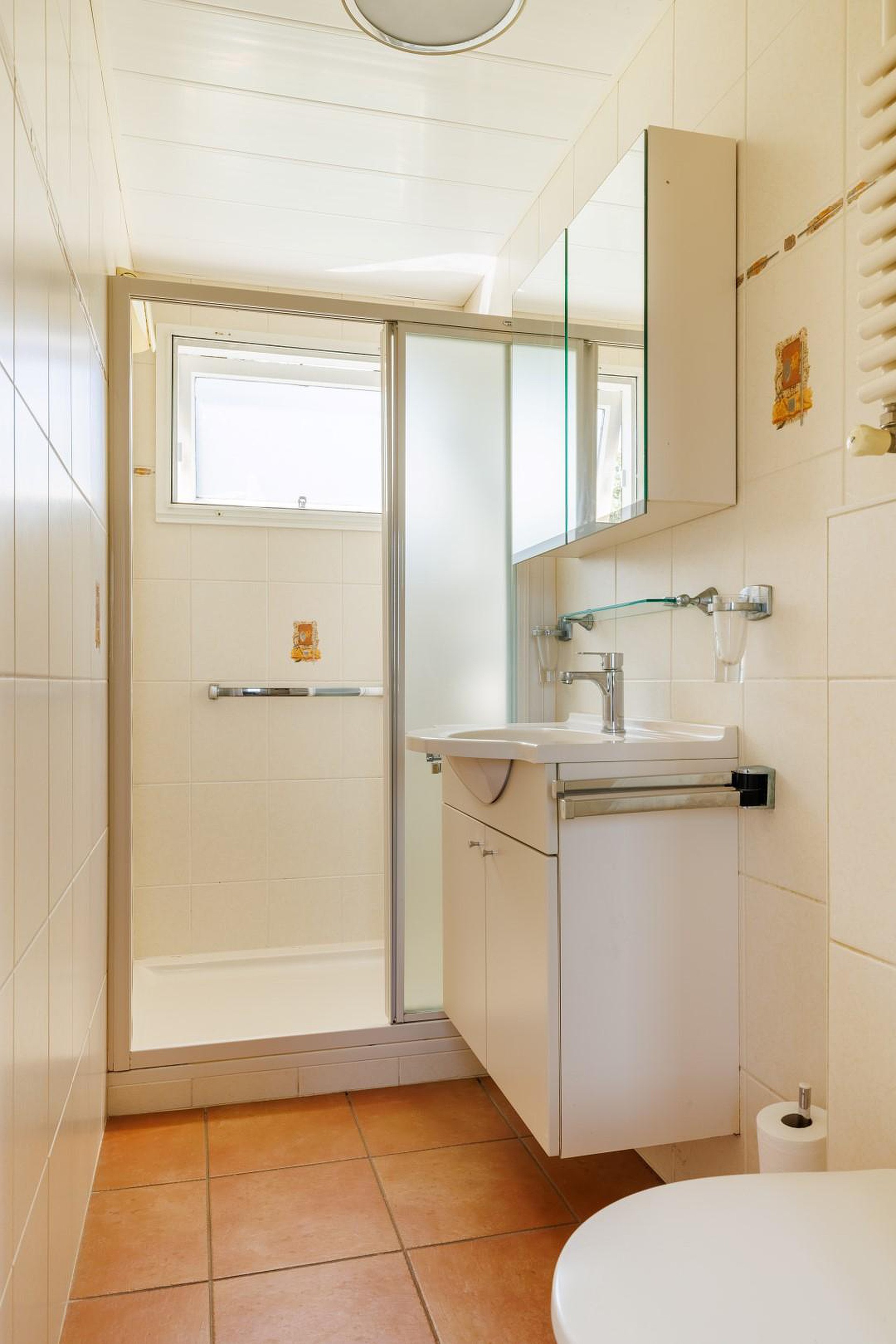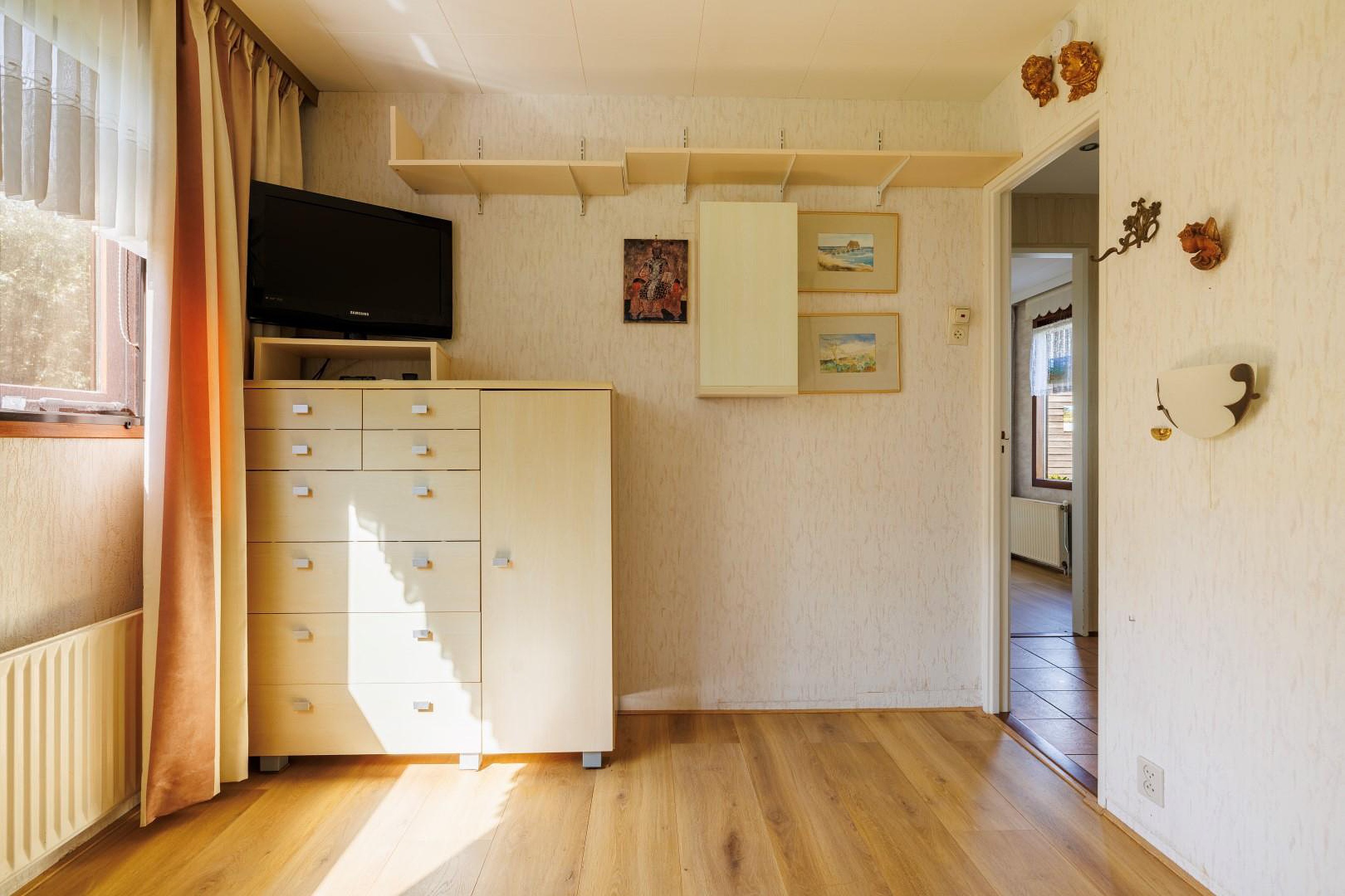 Via de entree komt u in de hal die toegang geeft tot alle vertrekken. Er zijn twee slaapkamers van ca. 6 m2 en 10 m2, beide voorzien van handige inbouwkasten. De nette badkamer beschikt over een douche, wastafel en toilet.