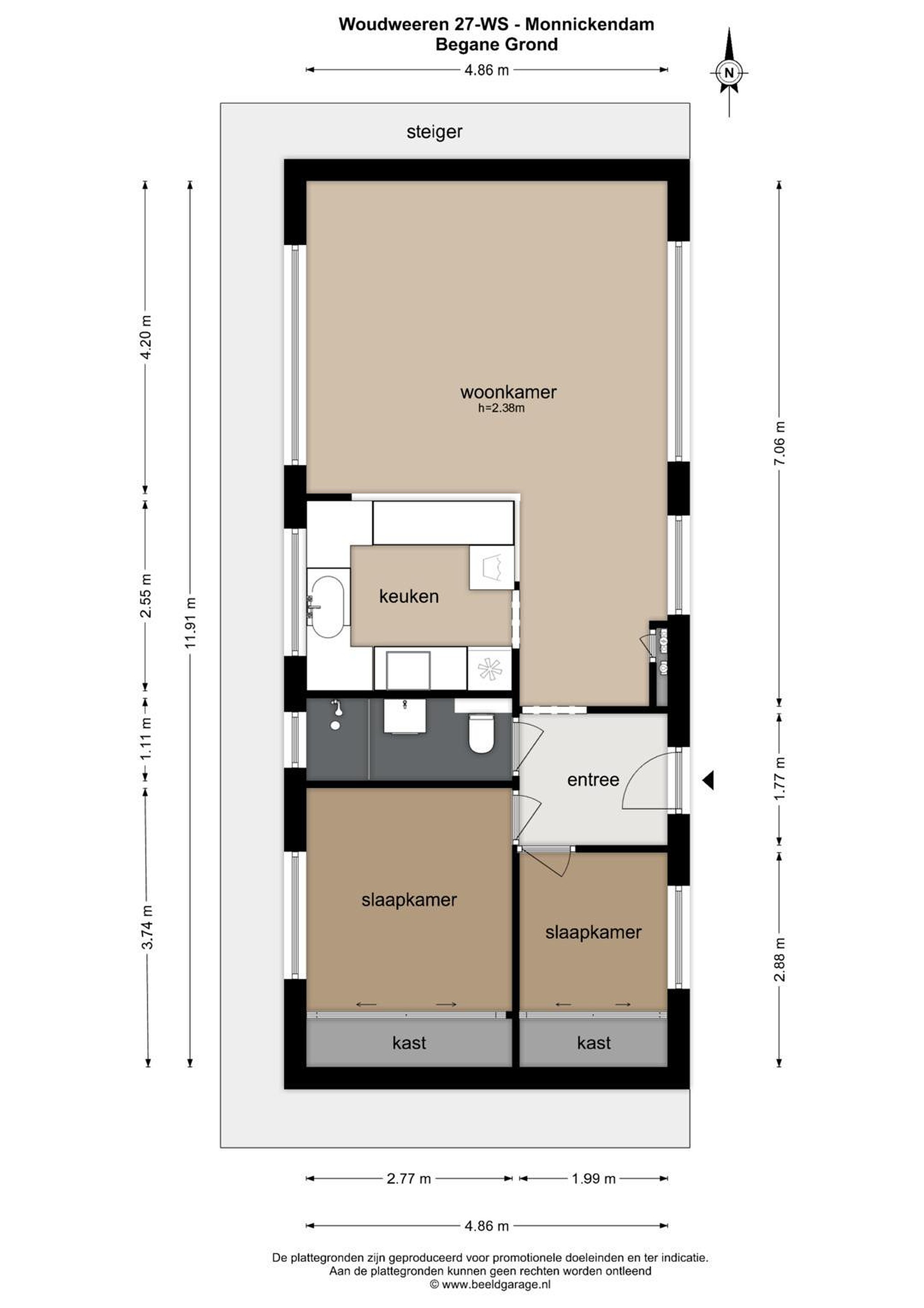 - Garage (21 m2) en berging (3 m2) op eigen perceel