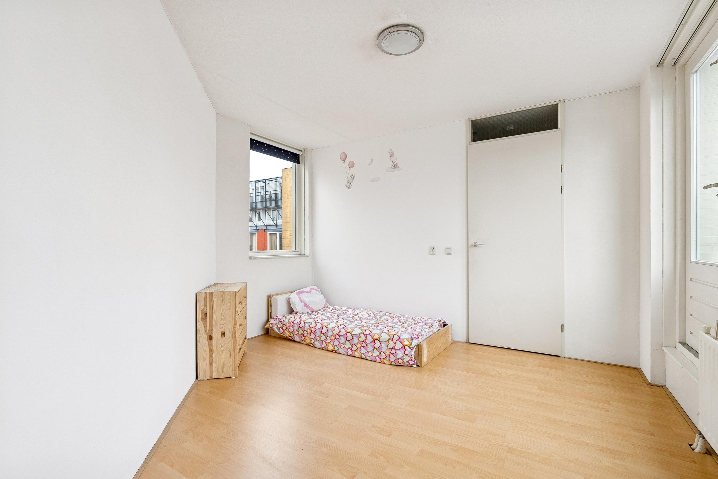 Op deze verdiepingen vinden we de tweede ruime slaapkamer. Leuke toevoeging van deze kamer is het ruime dakterras van 48m2!