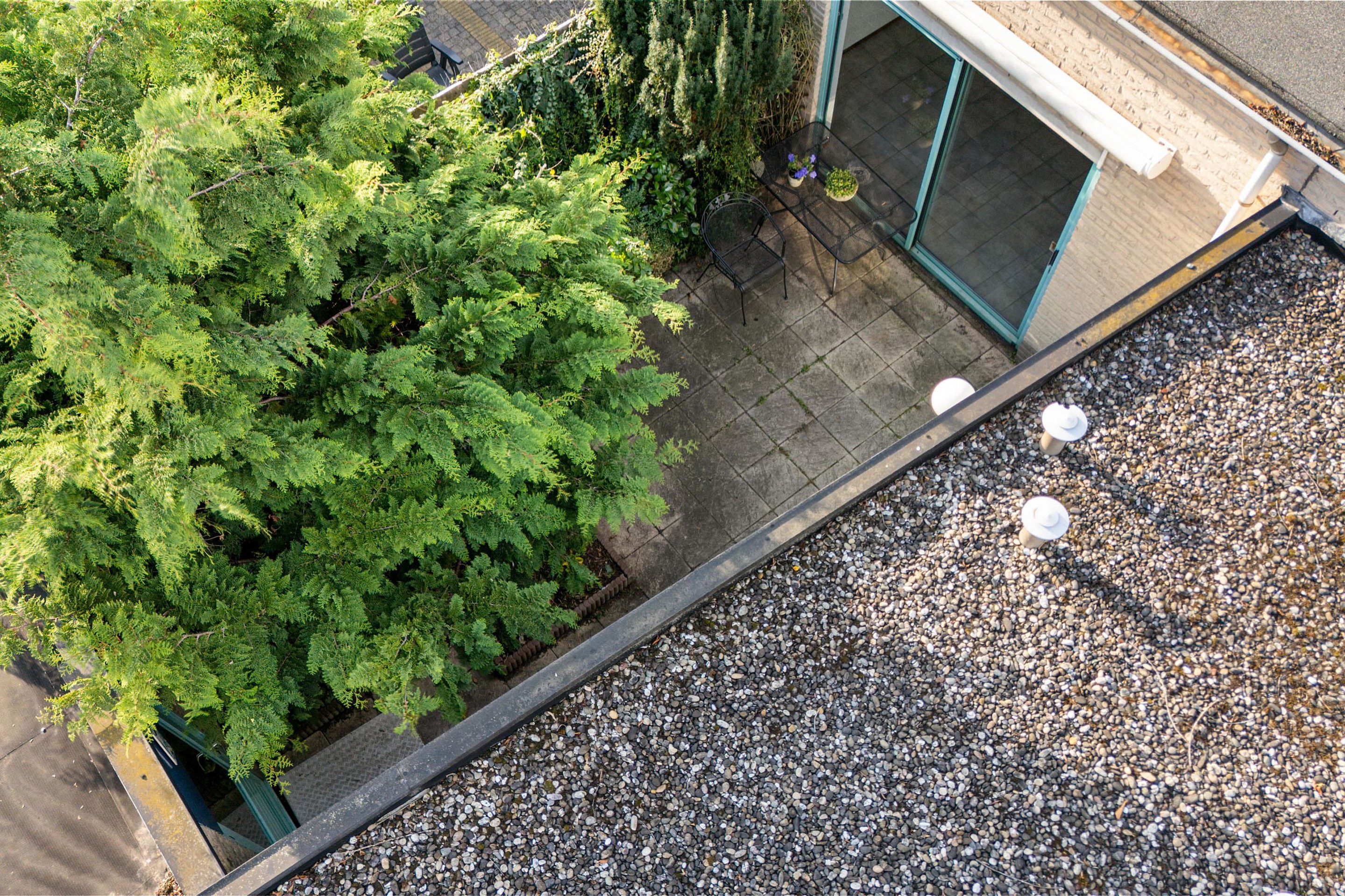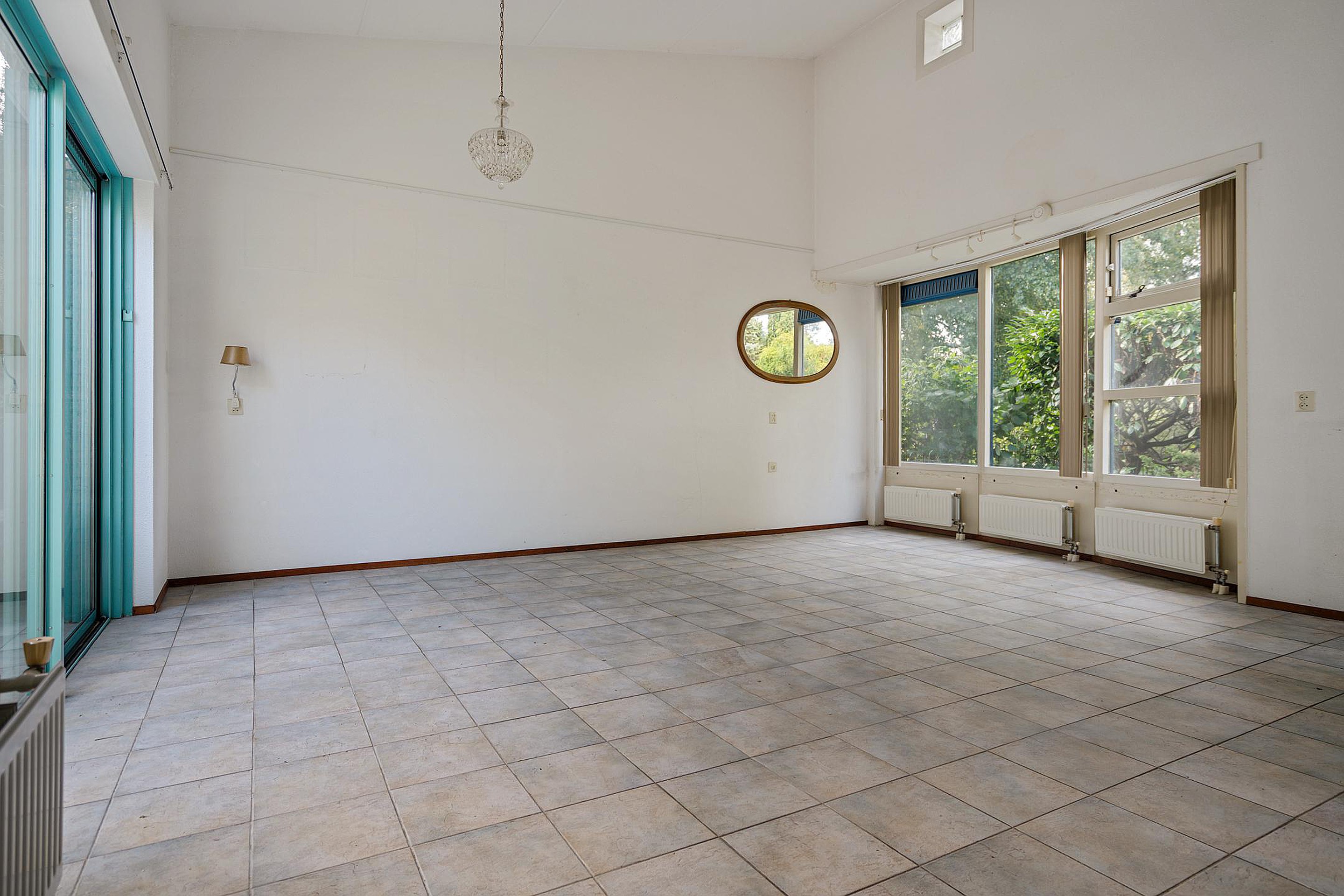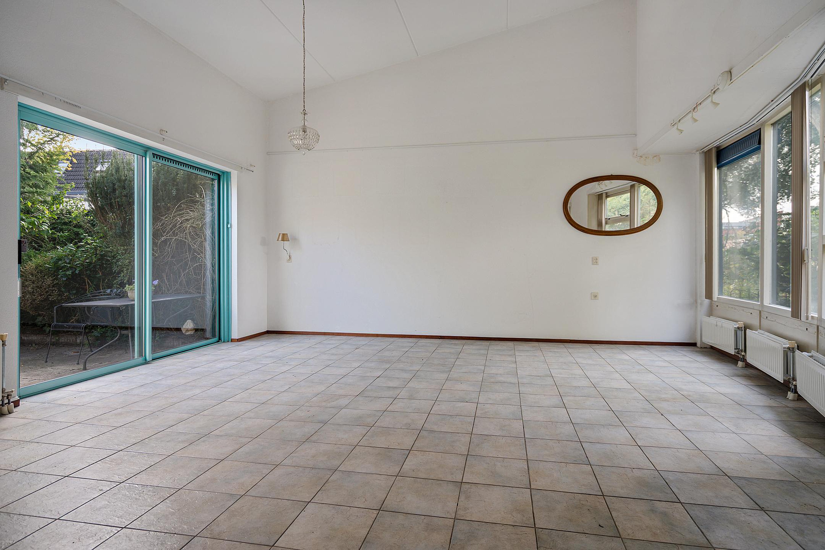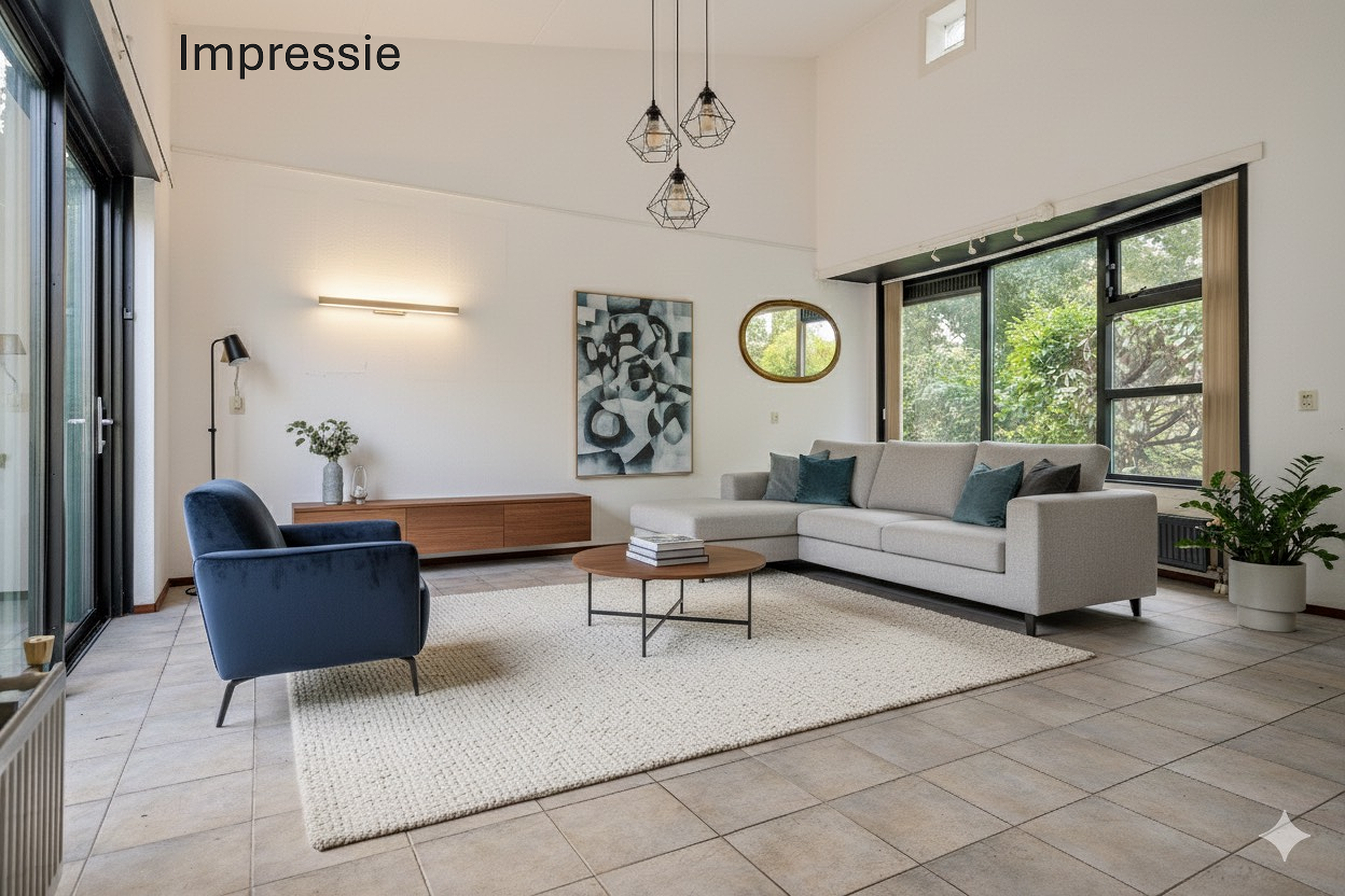 De woonkamer is ruim van opzet en heeft een heerlijk lichte uitstraling dankzij de grote raampartijen en het hoge plafond. Aan de voorzijde kijkt u vrij uit over een groenstrook met waterpartij, terwijl u aan de achterzijde via een schuifpui direct toegang heeft tot de beschutte patio.