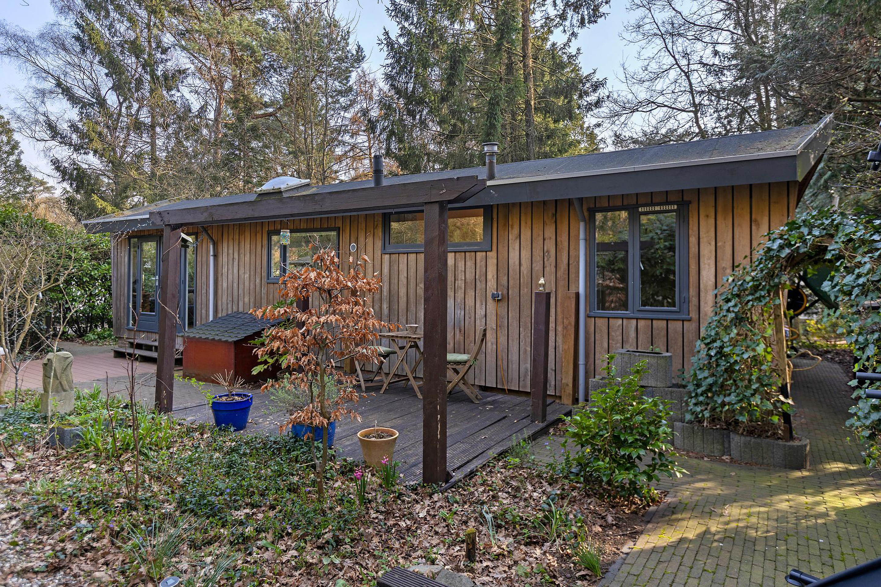 Binnen ervaar je veel licht en ruimte dankzij de hoge dakconstructie en slimme indeling, terwijl buiten de rondom gelegen tuin met drie terrassen volop privacy en zon biedt op ieder moment van de dag. Met parkeergelegenheid voor de deur en een prachtige ligging midden in de natuur, is dit een ideale recreatiewoning voor eigen gebruik.