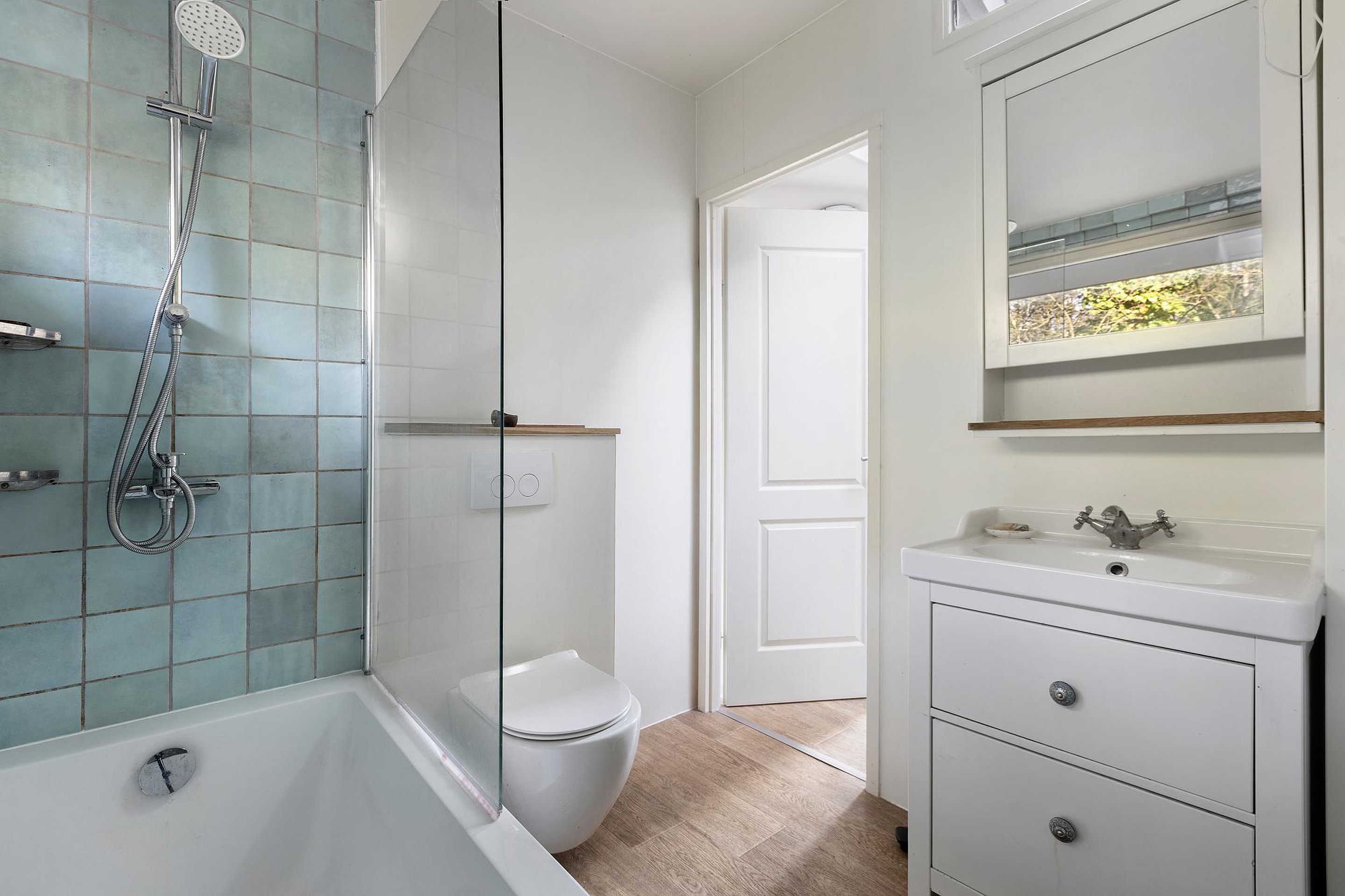 De tuin rondom de recreatiewoning vormt een prachtig verlengstuk van het wooncomfort en loopt volledig om de woning heen. Dankzij de beschutte ligging en de rustige plek op het park geniet je hier van optimale privacy en een ontspannen sfeer midden in het groen. Rondom de woning ligt een verzorgd, betegeld pad dat zorgt voor een nette uitstraling en praktische toegankelijkheid.