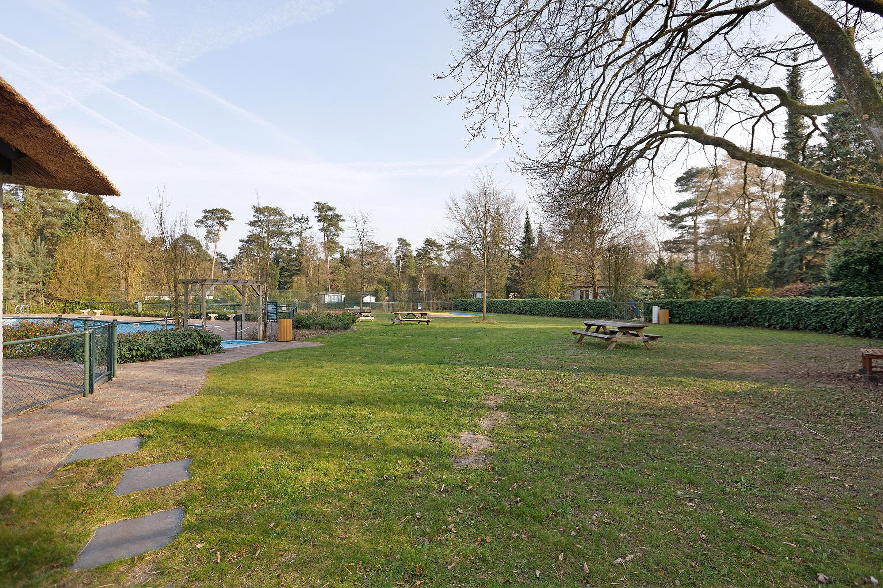 De recreatiewoning aan Panoramaweg 27-R563 ligt op Recreatiepark De Dikkenberg, aan de rand van Bennekom, midden in een bosrijke en rustige omgeving op de Veluwe. Vanuit het park wandel en fiets je direct de natuur in, met uitgestrekte bossen en heidevelden binnen handbereik.