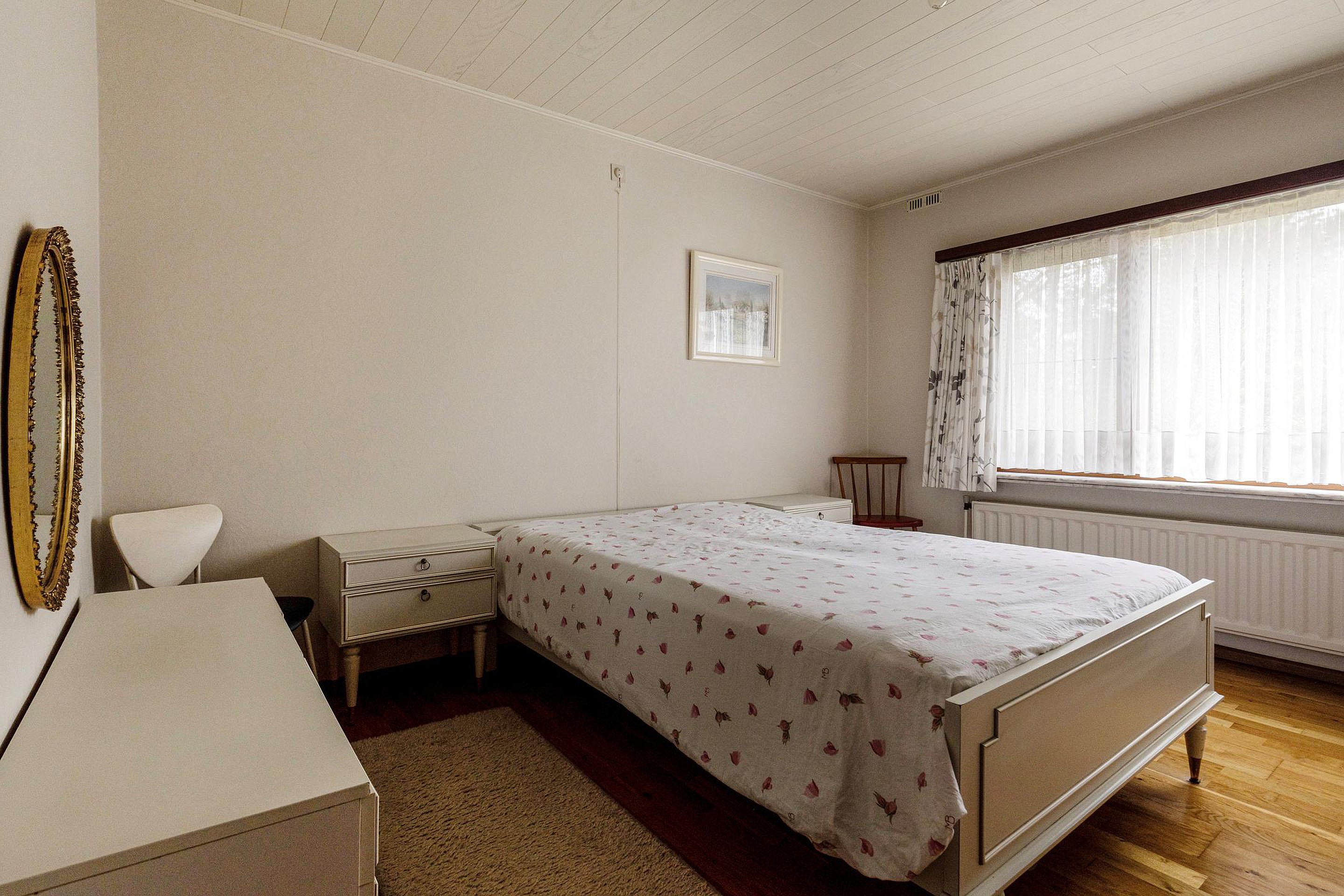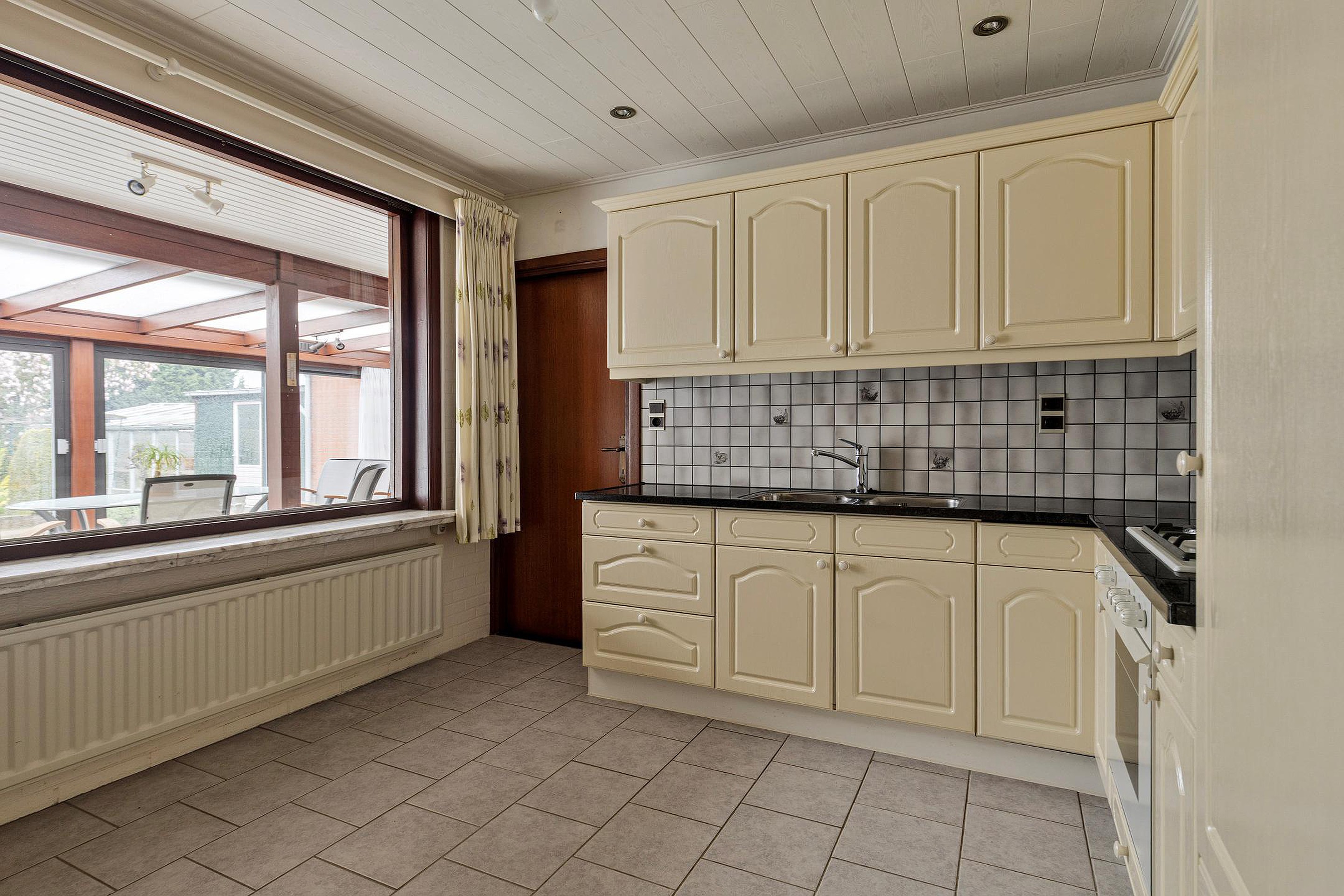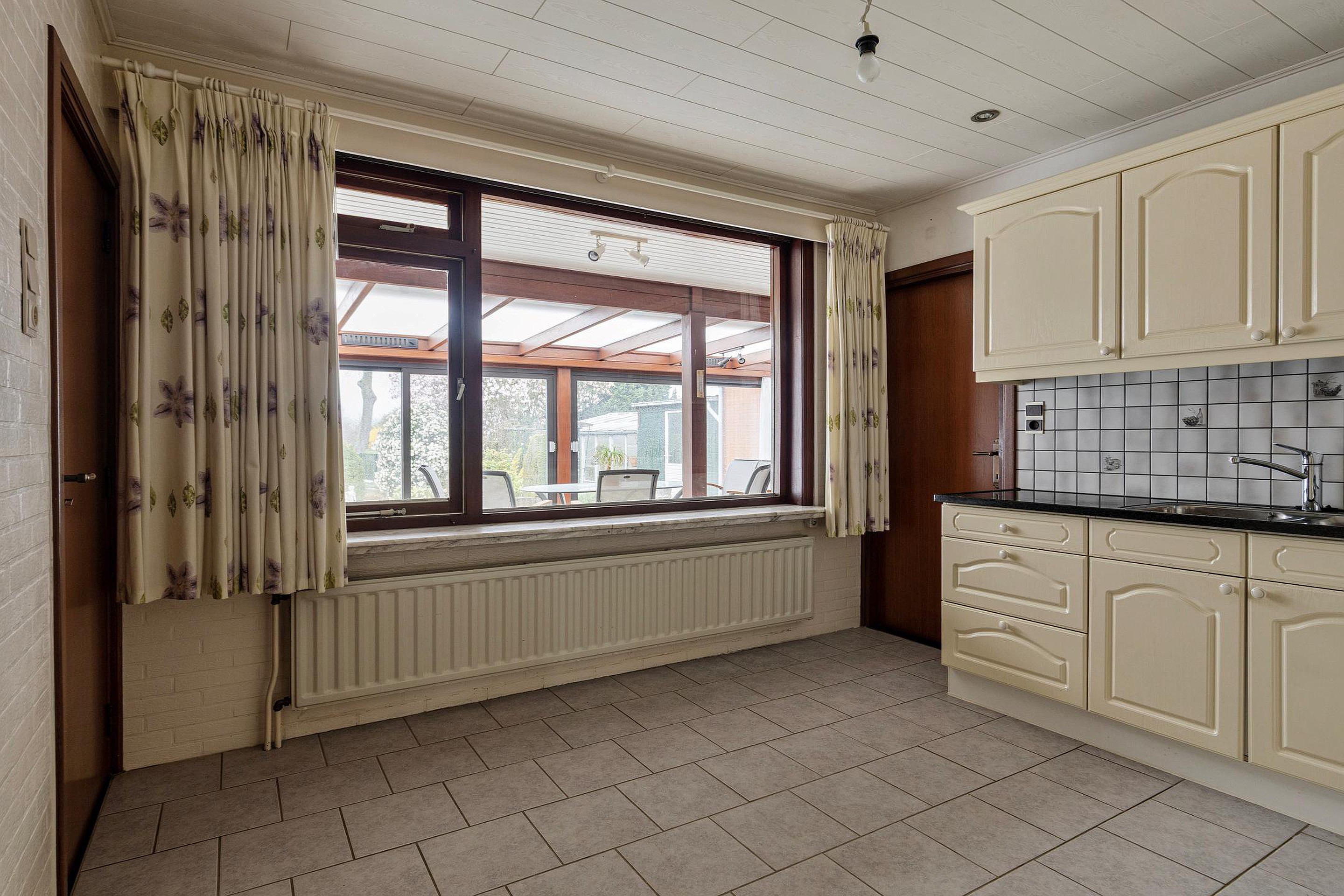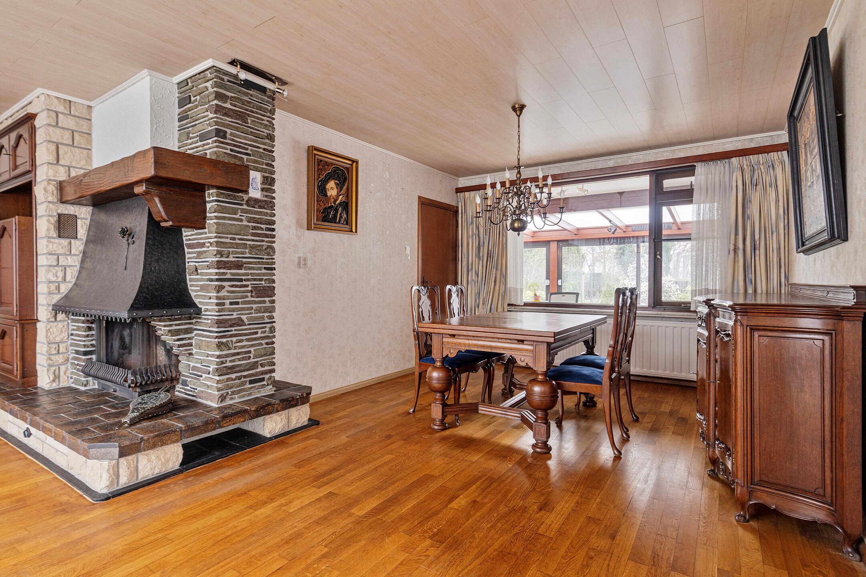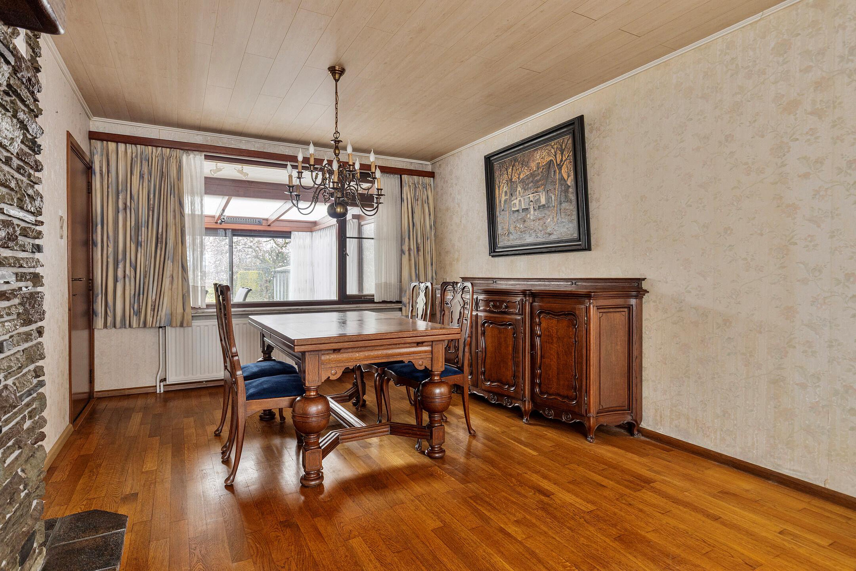Het absolute hoogtepunt van deze woning is de enorme serre aan de achterzijde. Dankzij de grote schuifpui en het vrije uitzicht over de tuin voelt het hier alsof buiten en binnen volledig in elkaar overlopen. Een plek waar je het hele jaar door kunt genieten van rust, groen en privacy.
