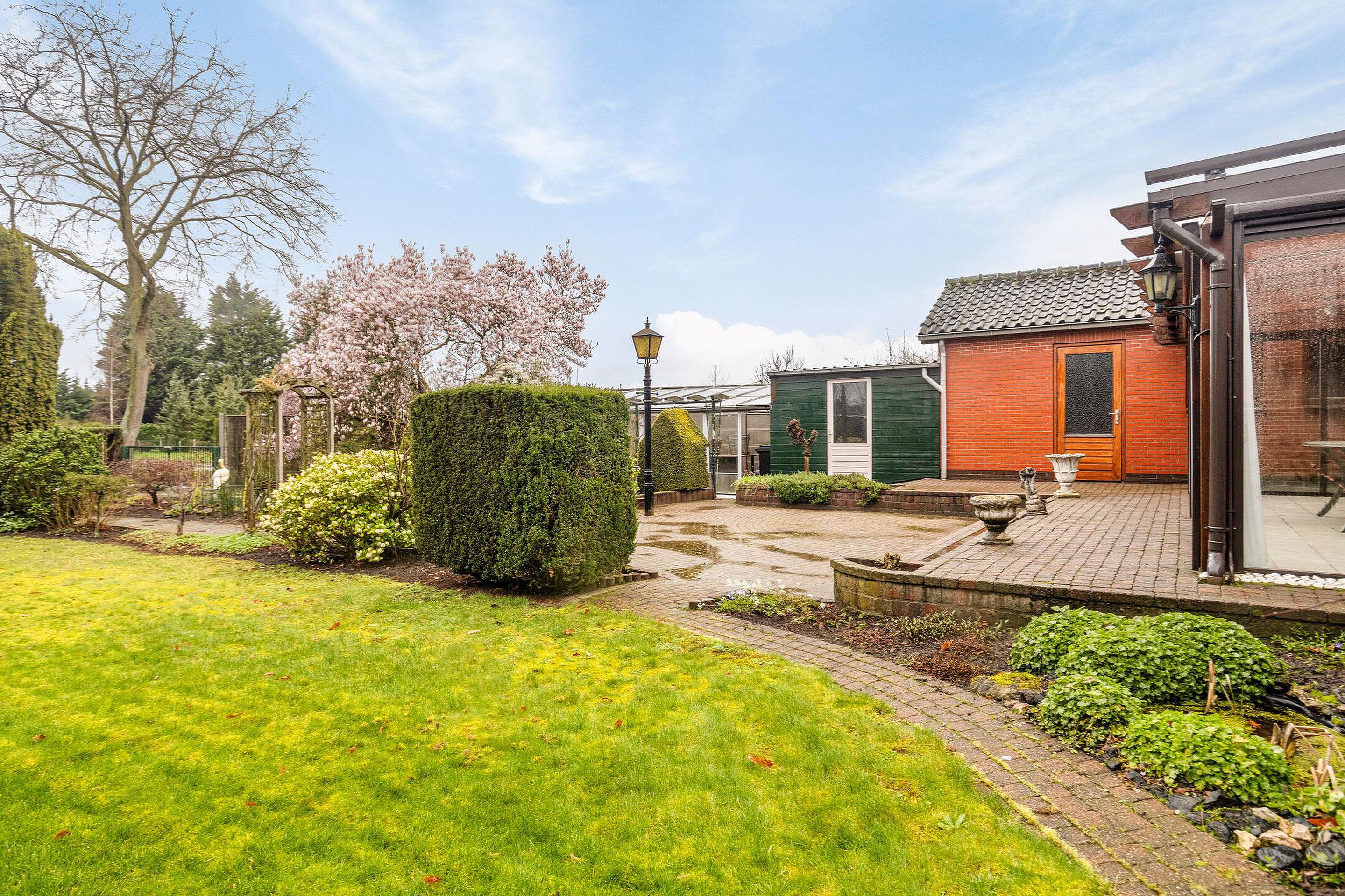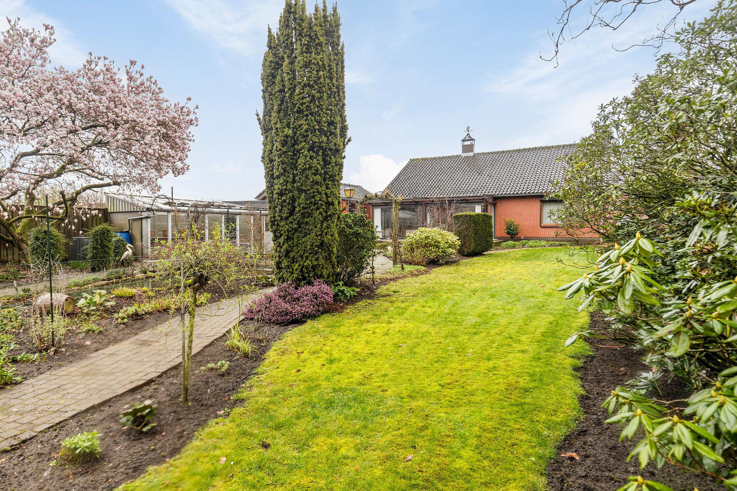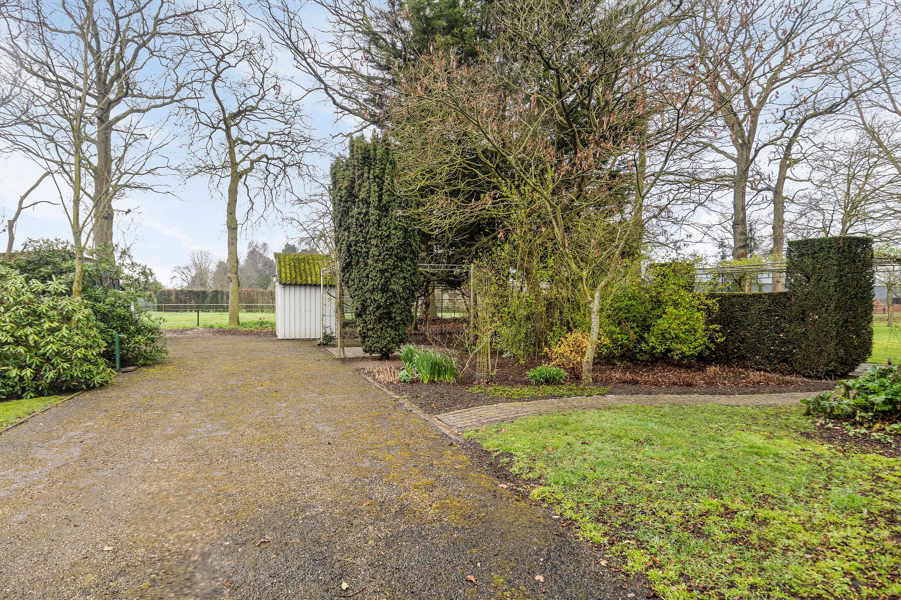 Het perceel is royaal en biedt een unieke woonbeleving met veel groen en ruimte rondom de woning. Achter in de tuin bevindt zich zelfs een tweede oprit met een extra garage. Ideaal voor hobbyisten, opslag of meerdere auto’s.