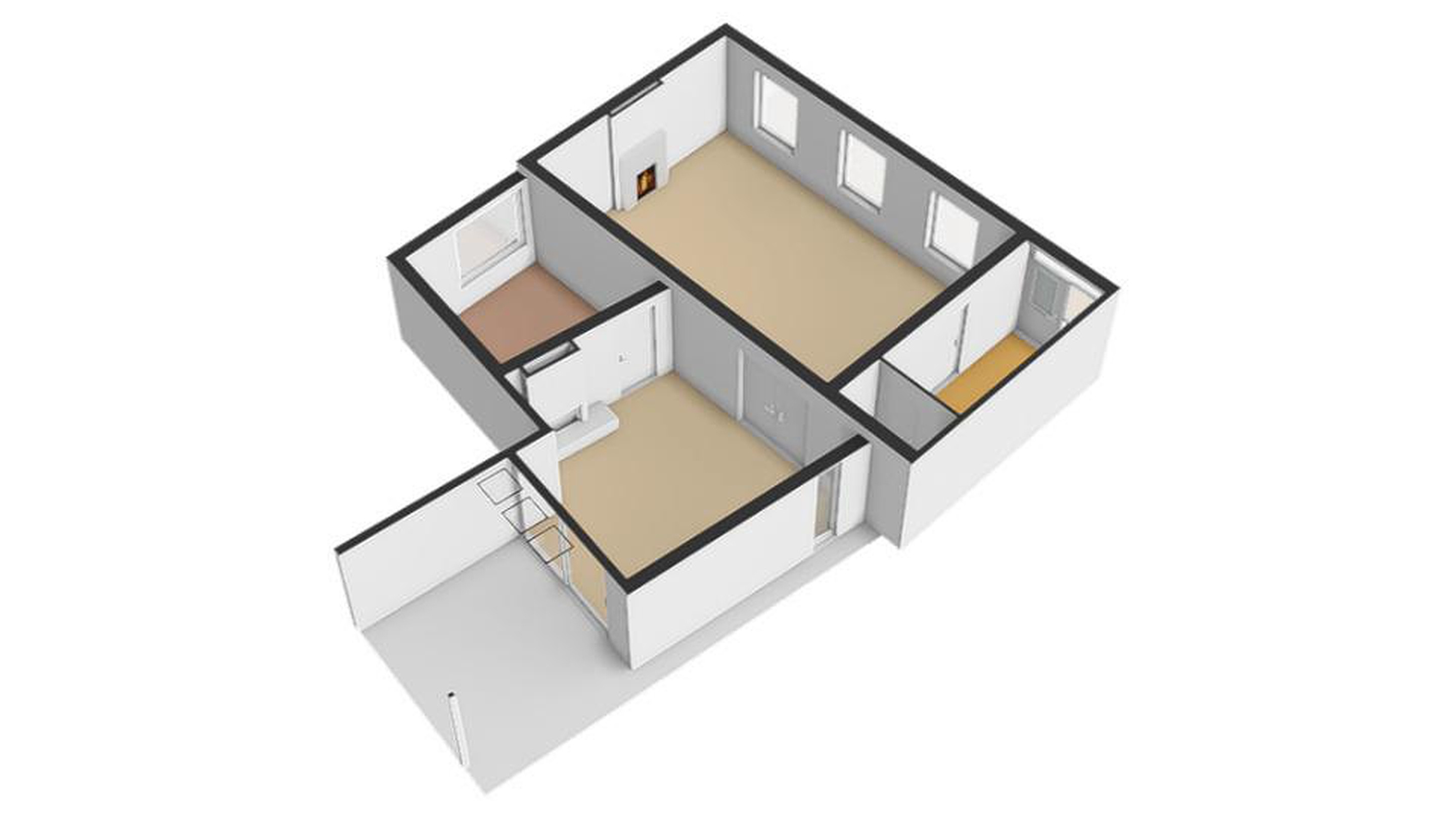 Indeling: via een eigen entree kom je binnen in een lichte woonkamer met uitzicht op de tuin. Daarnaast is er een extra kamer die perfect kan dienen als slaapkamer. Er is nog ruimte voor het realiseren van een keuken en badkamer. De woning dient nog te worden aangesloten op eigen nutsvoorzieningen.