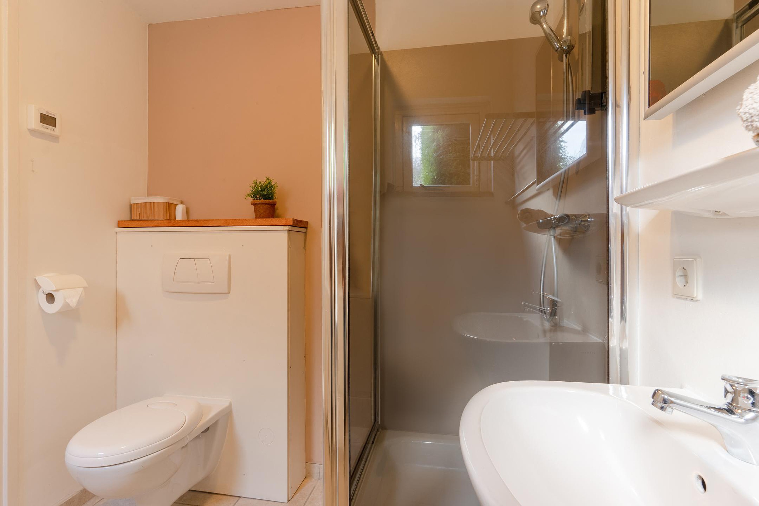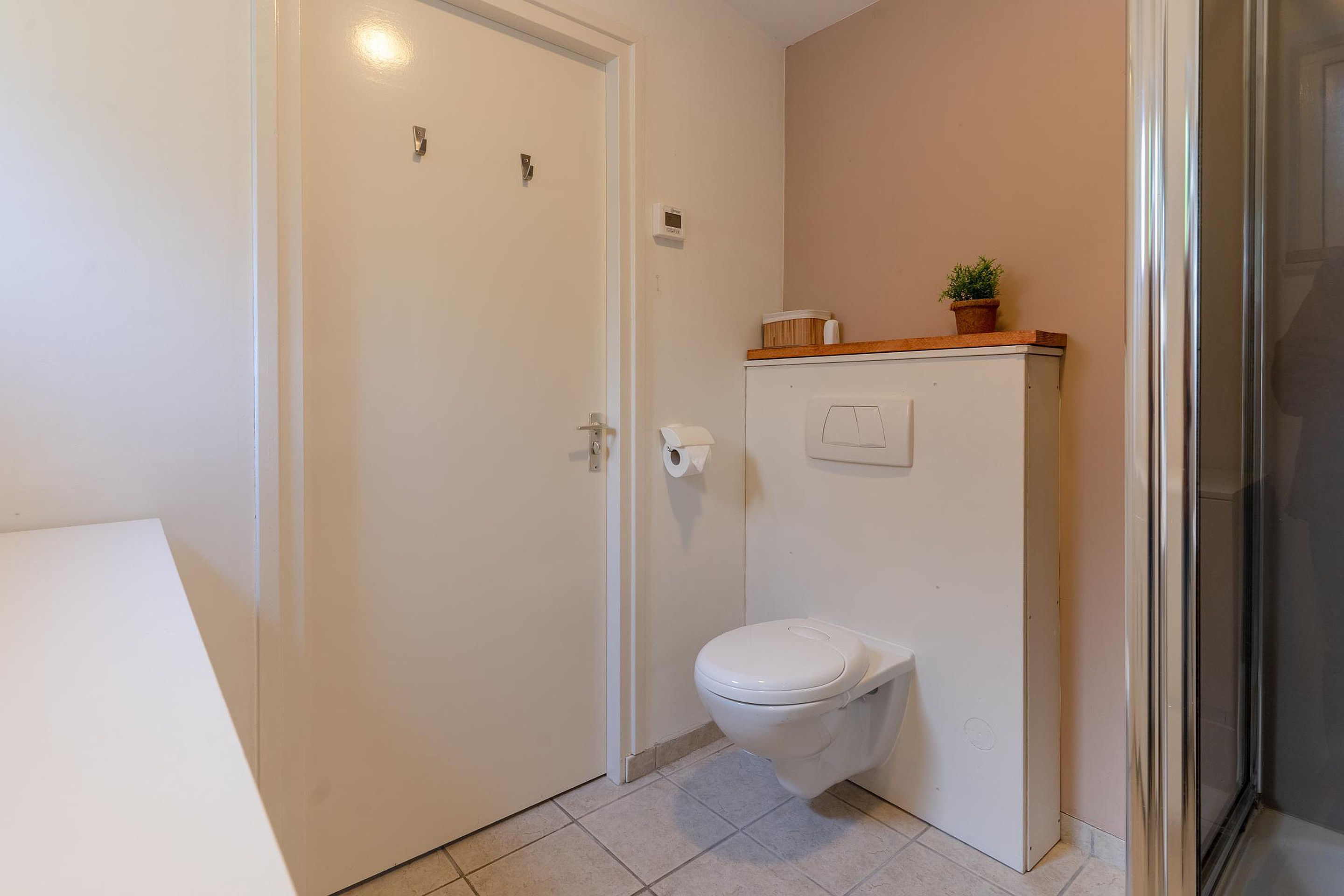 Begane grond Via de hal bereikt u de kinderslaapkamer, de meterkast en het separate toilet met fonteintje. De ruime ouderslaapkamer beschikt over openslaande deuren naar het zonneterras en de tuin en biedt daarnaast directe toegang tot de praktische badkamer, uitgerust met douchecabine, wastafel, aansluiting voor was apparatuur en een tweede toilet. De lichte, comfortabele woonkamer met aansluitend de open keuken, vormen het hart van de woning. Grote raampartijen brengen het buitengevoel naar binnen en nodigen uit tot gezellige avonden na een dag op het water.