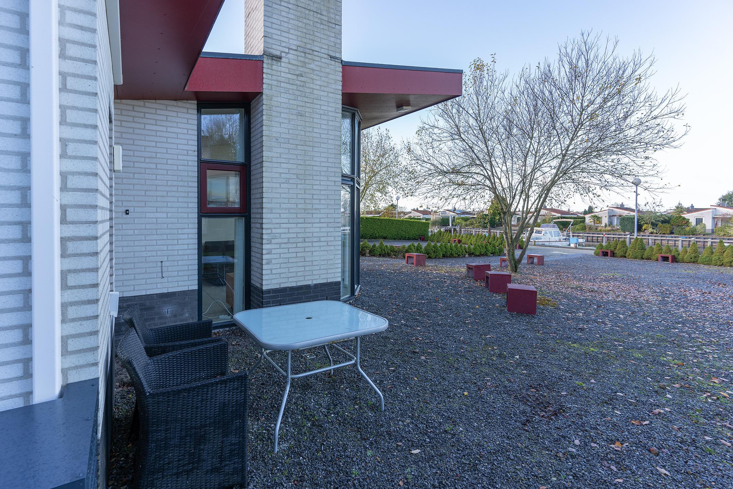 Details De inpandige berging is van buitenaf bereikbaar en perfect geschikt voor tuinmeubilair, gereedschap en natuurlijk uw watersportuitrusting. Op het grote perceel is ruim voldoende parkeergelegenheid aanwezig voor u en uw gasten.
