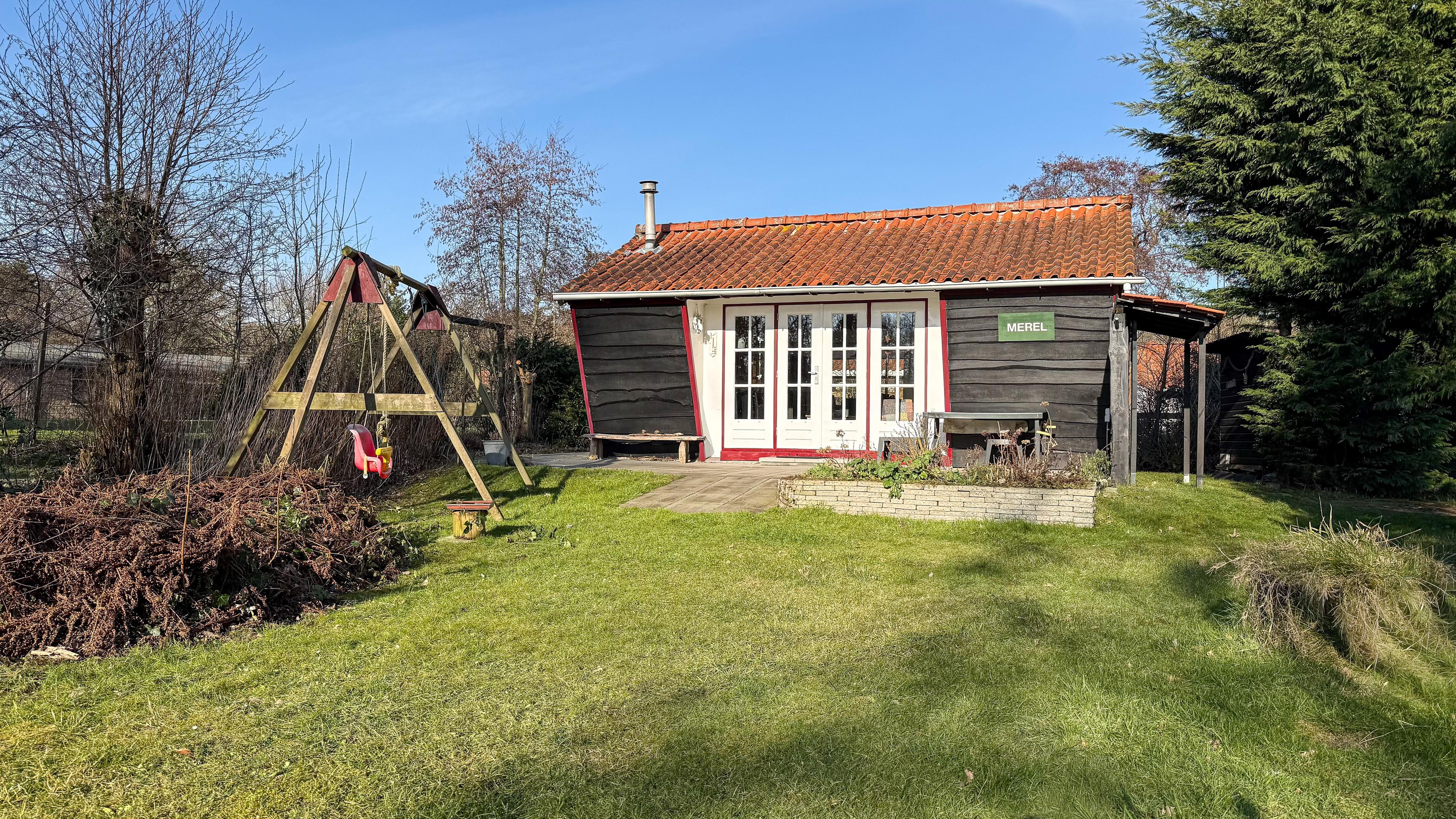 ‘Merel’ is compact en praktisch ingedeeld en beschikt over een uitnodigende vakantiesfeer. De woonkamer met open keuken vormt het hart van de woning en is voorzien van openslaande deuren naar het zonnige terras op het zuiden, waardoor binnen- en buitenleven op natuurlijke wijze in elkaar overlopen. Daarnaast zijn er twee slaapkamers aanwezig. De hoofdslaapkamer is ingericht met een tweepersoonsbed en een wastafel. De tweede slaapkamer is ingericht met een praktische stapelbedopstelling, waarbij het onderste bed plaats biedt aan twee personen en het bovenste een eenpersoonsbed betreft. Een ideale ruimte als kinder- of logeerkamer.. De badkamer is gemoderniseerd en uitgevoerd in een sfeervolle stijl met douche en wastafel. Tevens is er een separaat toilet aanwezig gelegen in de hal. De tuin rondom 'Merel' is gunstig georiënteerd op het zuiden en beschikt over een aangelegd terras en diverse speeltoestellen. Aan de noordzijde bevindt zich een praktische berging voor fietsen en opslag. Tevens is er parkeergelegenheid op eigen terrein.