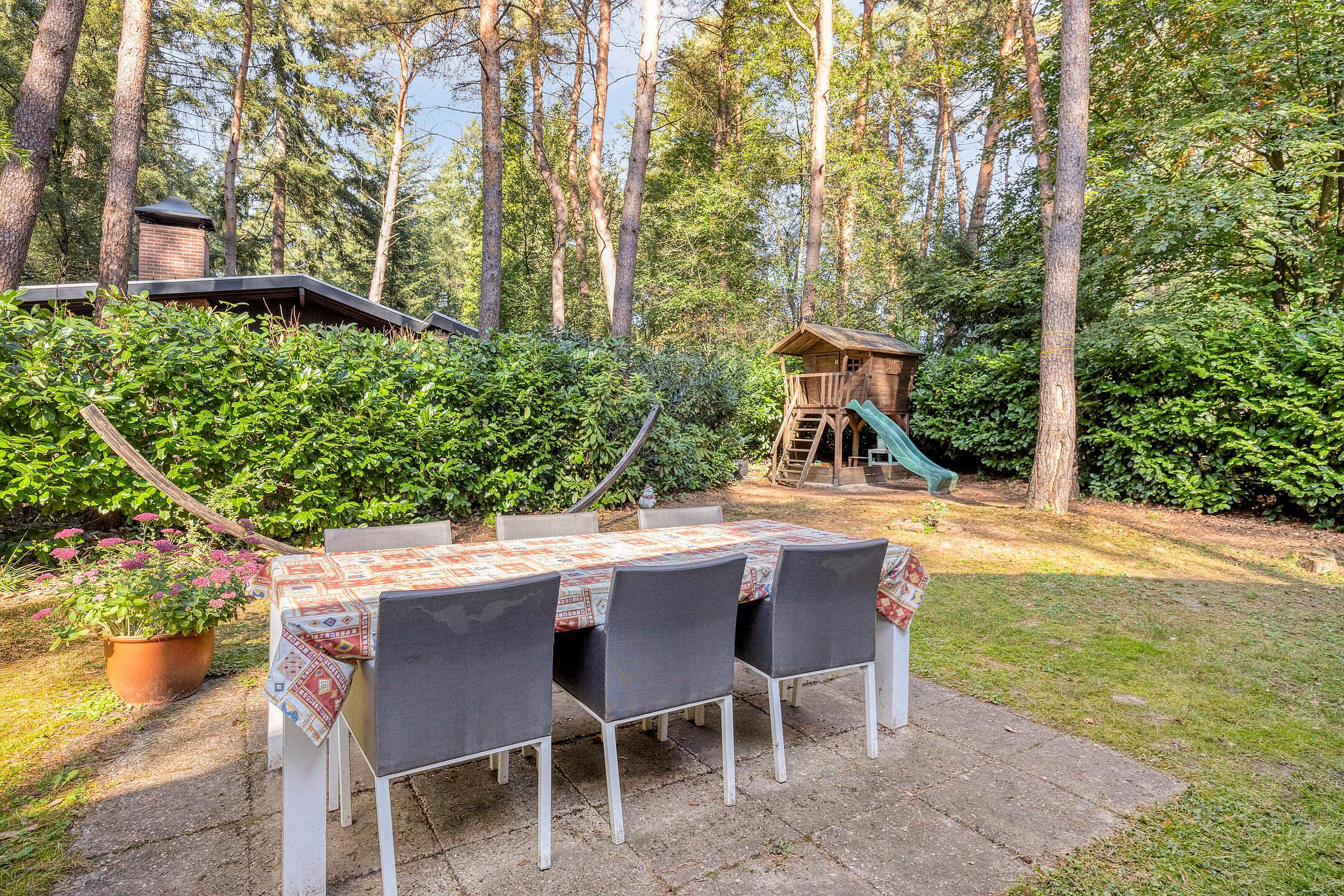 De woning, gebouwd in 1975, biedt 96 m2 aan woonoppervlakte en staat op een ruim perceel eigen grond van maar liefst 626 m2. Dankzij de ligging in het bos ben je omringd door groen en geniet je van optimale privacy. De tuin met diverse zitjes en een picknicktafel nodigt uit om urenlang buiten te vertoeven. Zo is er zelfs een speel-klimhuisje voor de kleintjes. Het overdekte terras met binnen- en buitenhaard zorgt ervoor dat je ook op frissere dagen kunt genieten van de bosrijke omgeving.