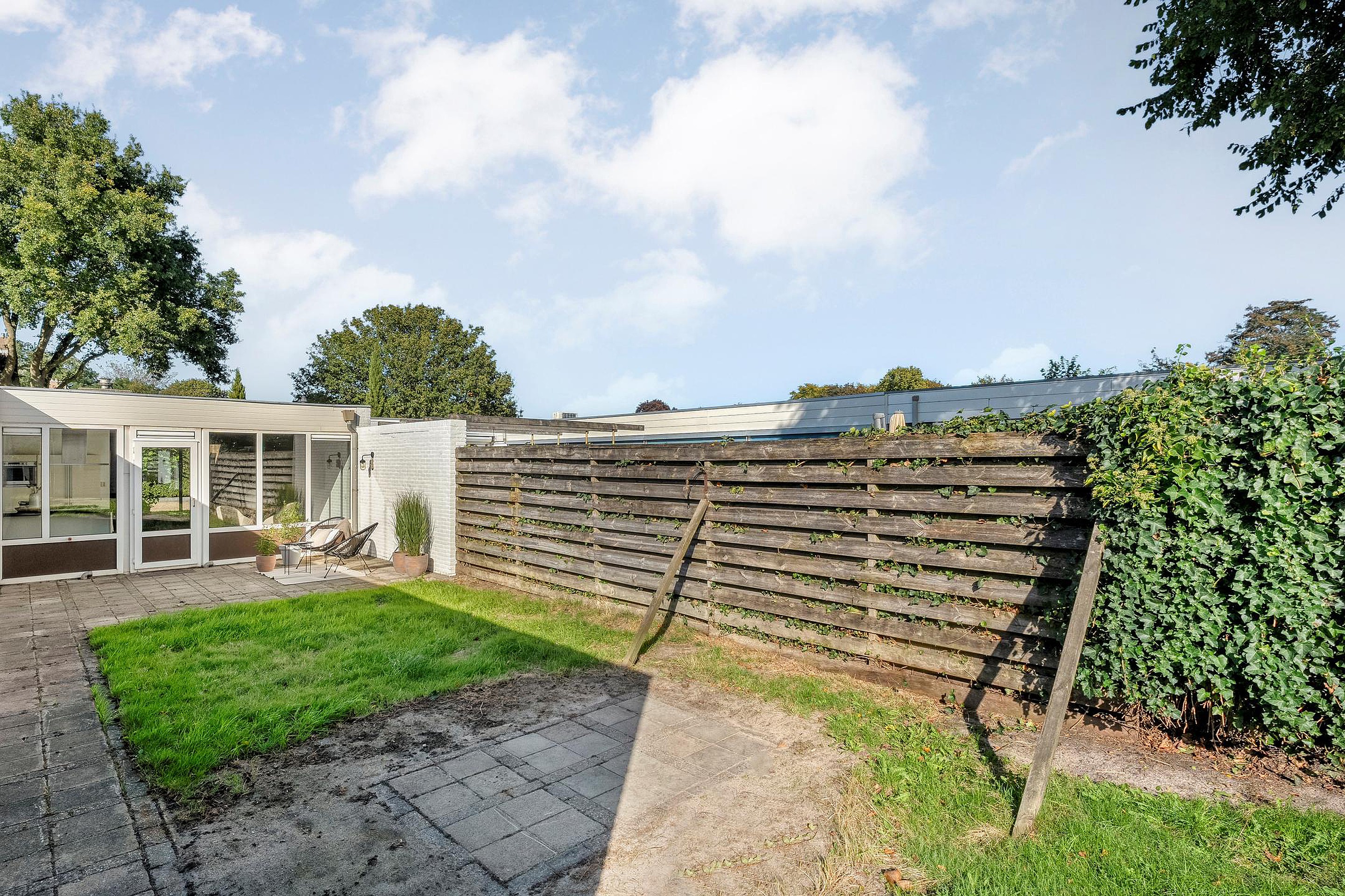 De bungalow staat op een royaal perceel van ca. 376 m2, dus qua buitenruimte zit je hier helemaal goed. De achtertuin is diep (lekker veel zonuren!) en voorzien van een houten berging. Door de laagbouw in de nabije omgeving heb je alle privacy.