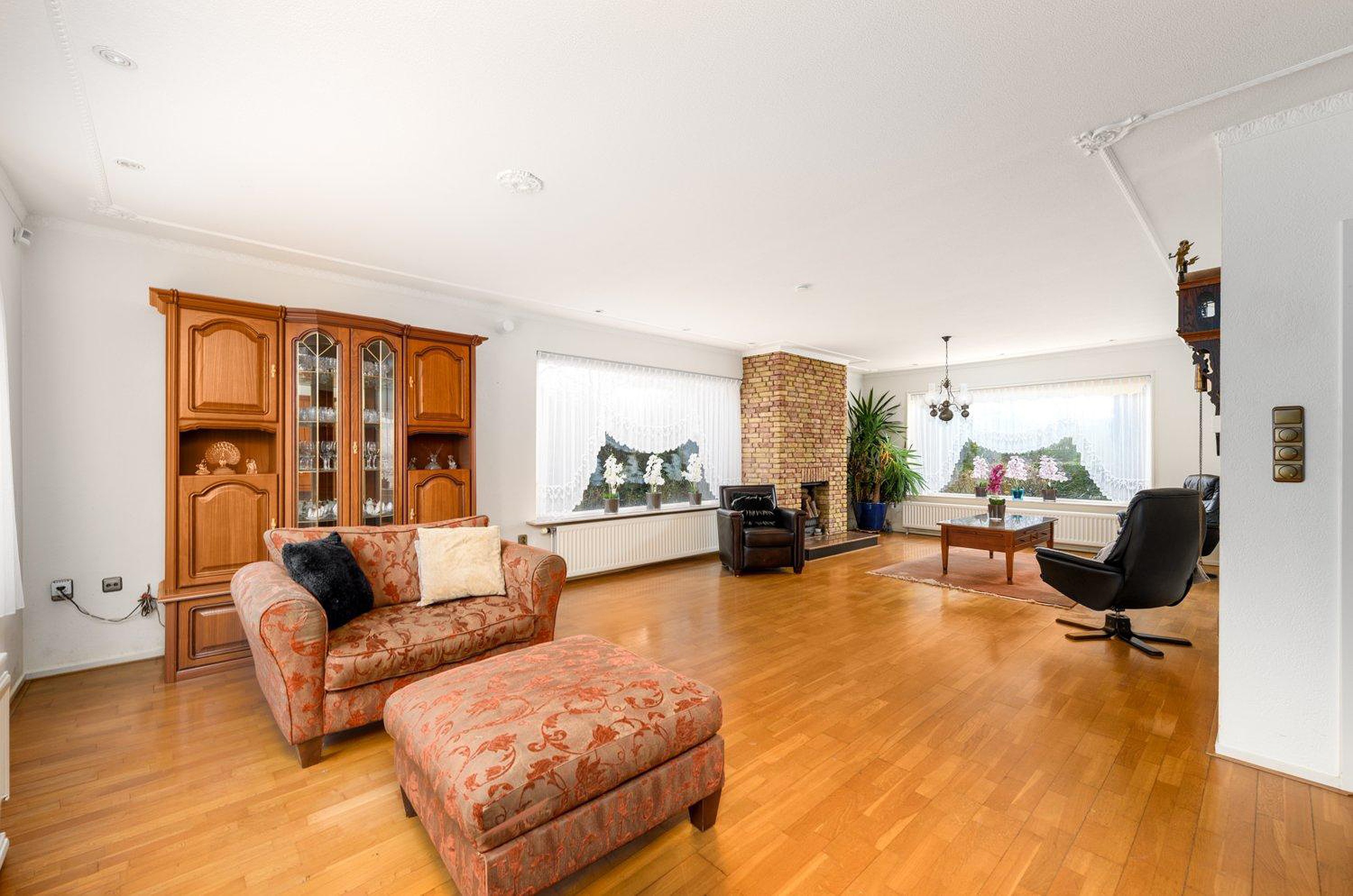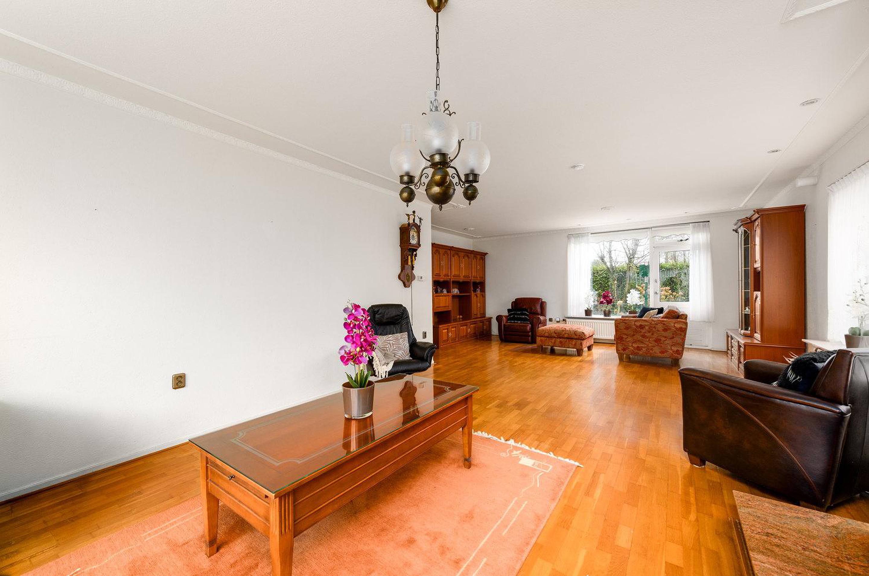 Entree, royale hal met vide, meterkast (vernieuwd), trapopgang naar eerste verdieping, extra slaapkamer met badkamer en separaat toilet. Lichte woonkamer met sfeervolle open haard en directe toegang tot de tuin. De woonkeuken is enigszins gedateerd, maar de royale afmetingen maken het mogelijk om hier een zeer luxe en moderne keuken te plaatsen. Dankzij de lichtinval en de praktische indeling wordt dit gegarandeerd de favoriete plek in huis.