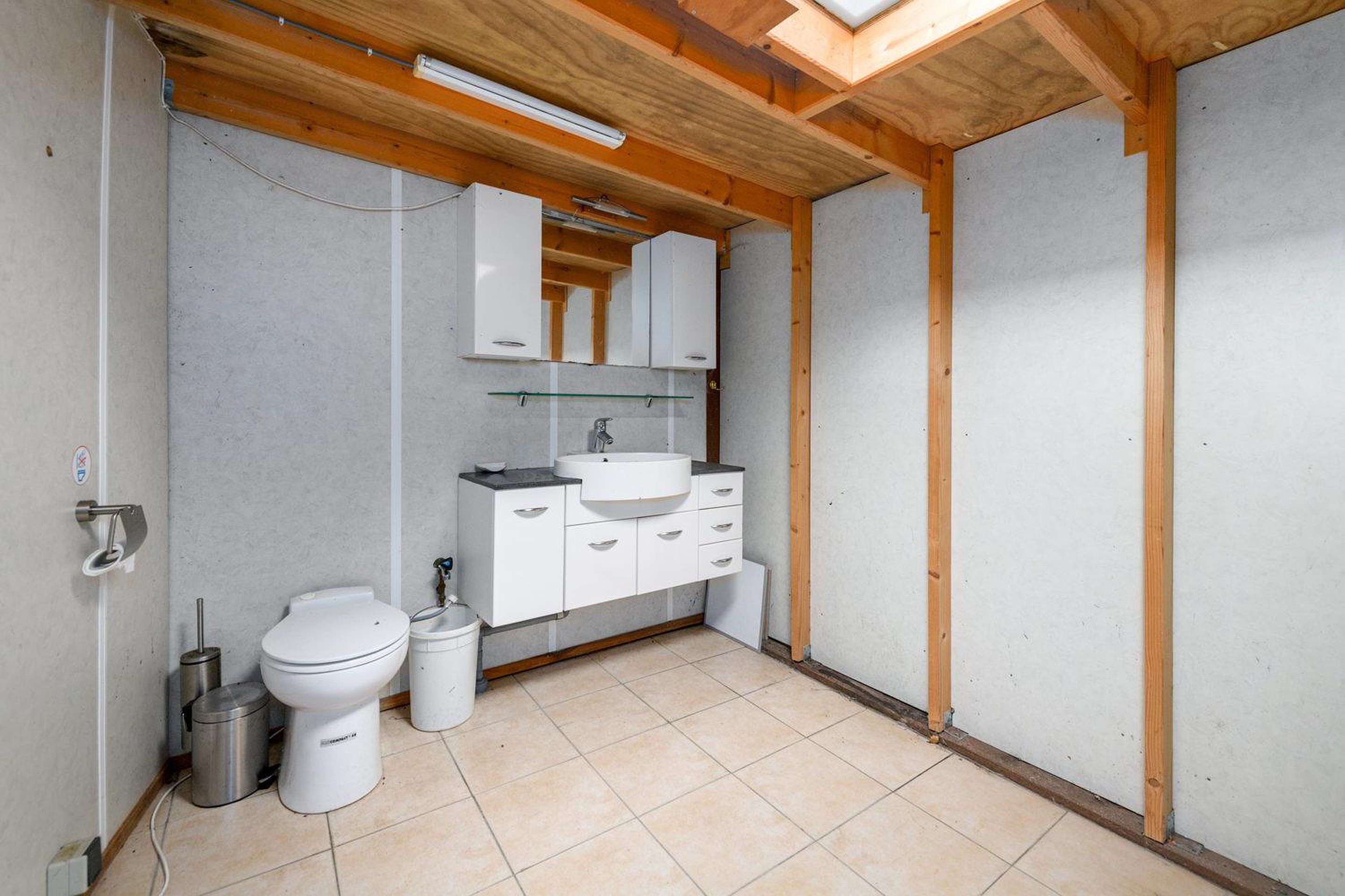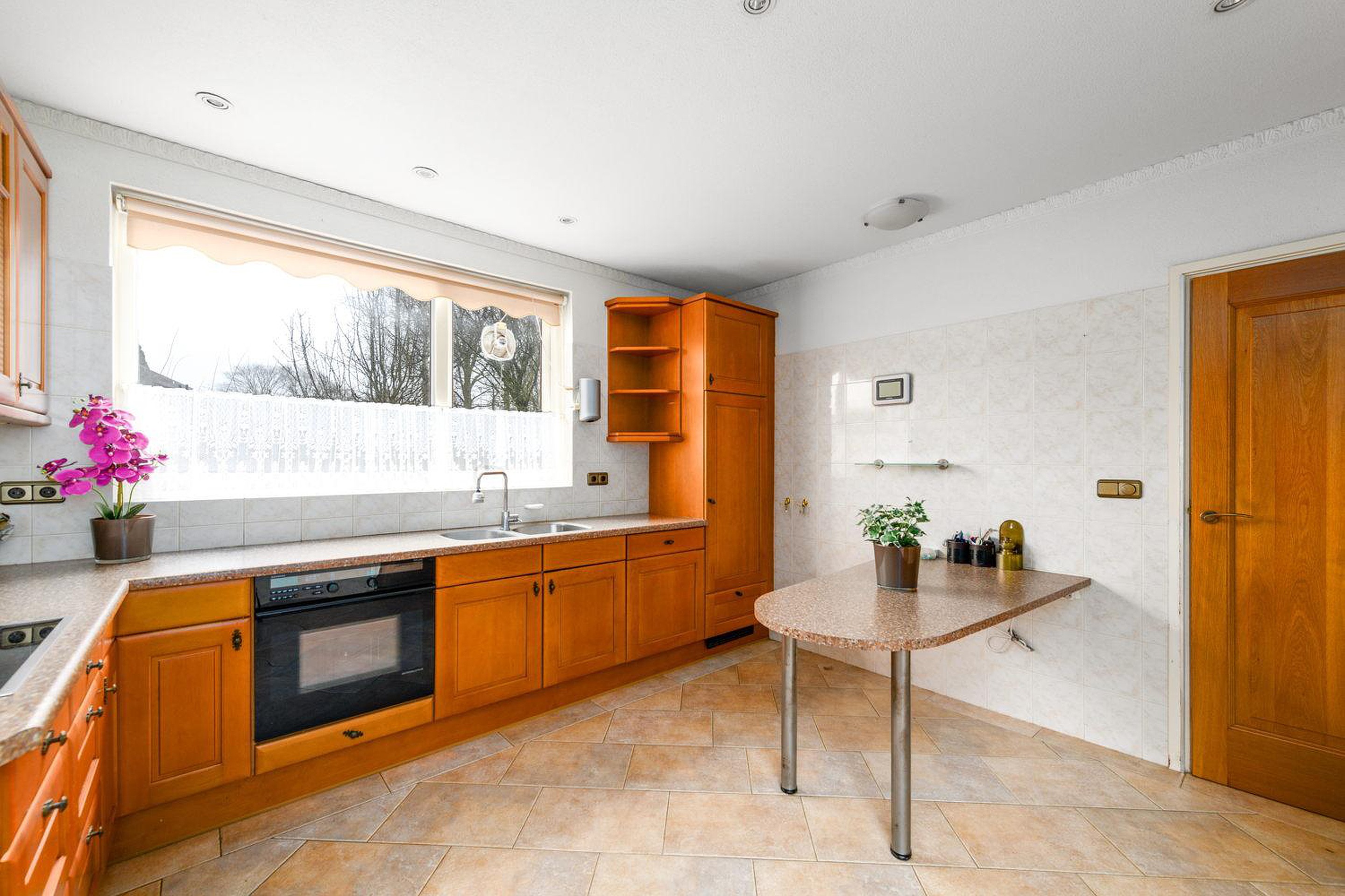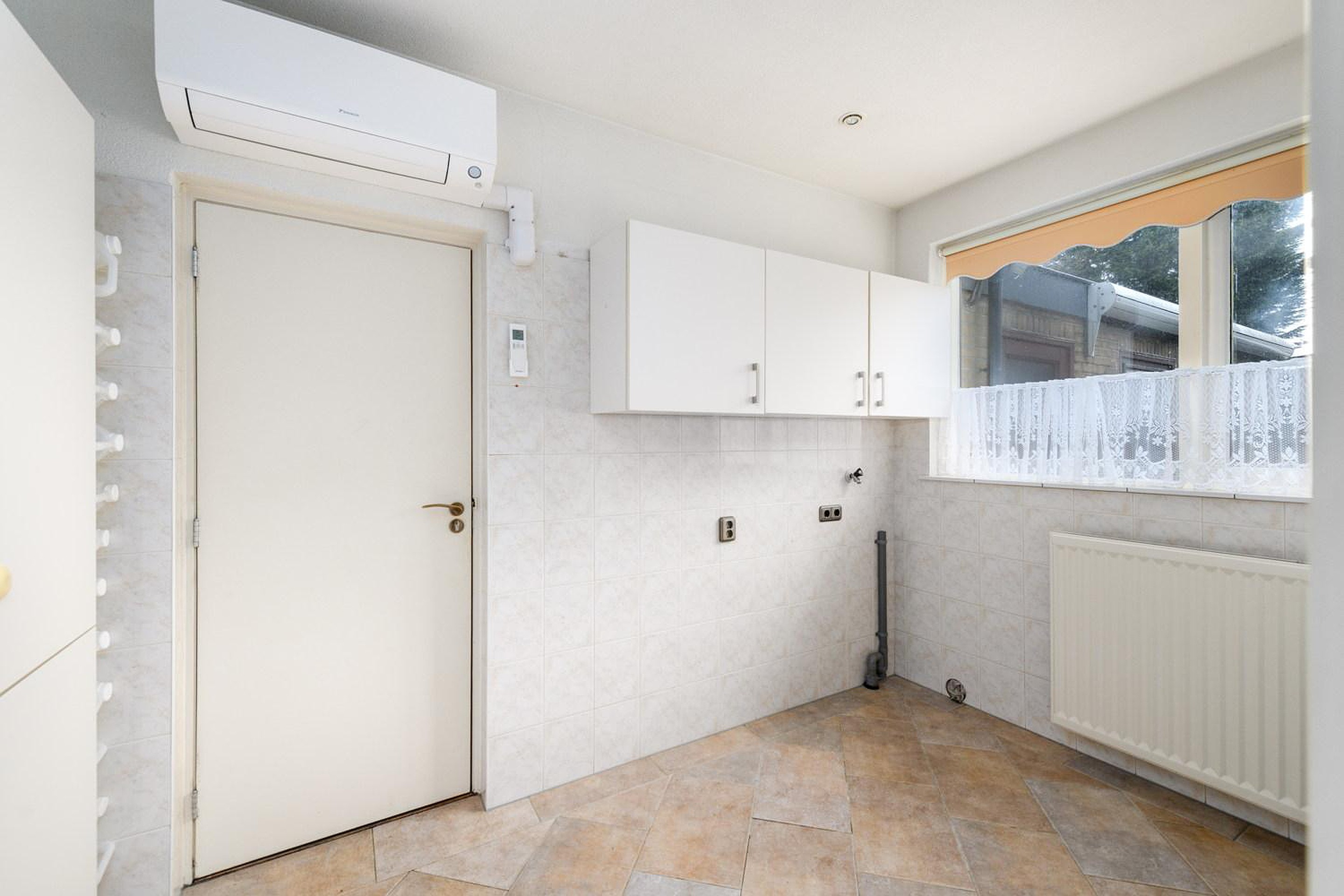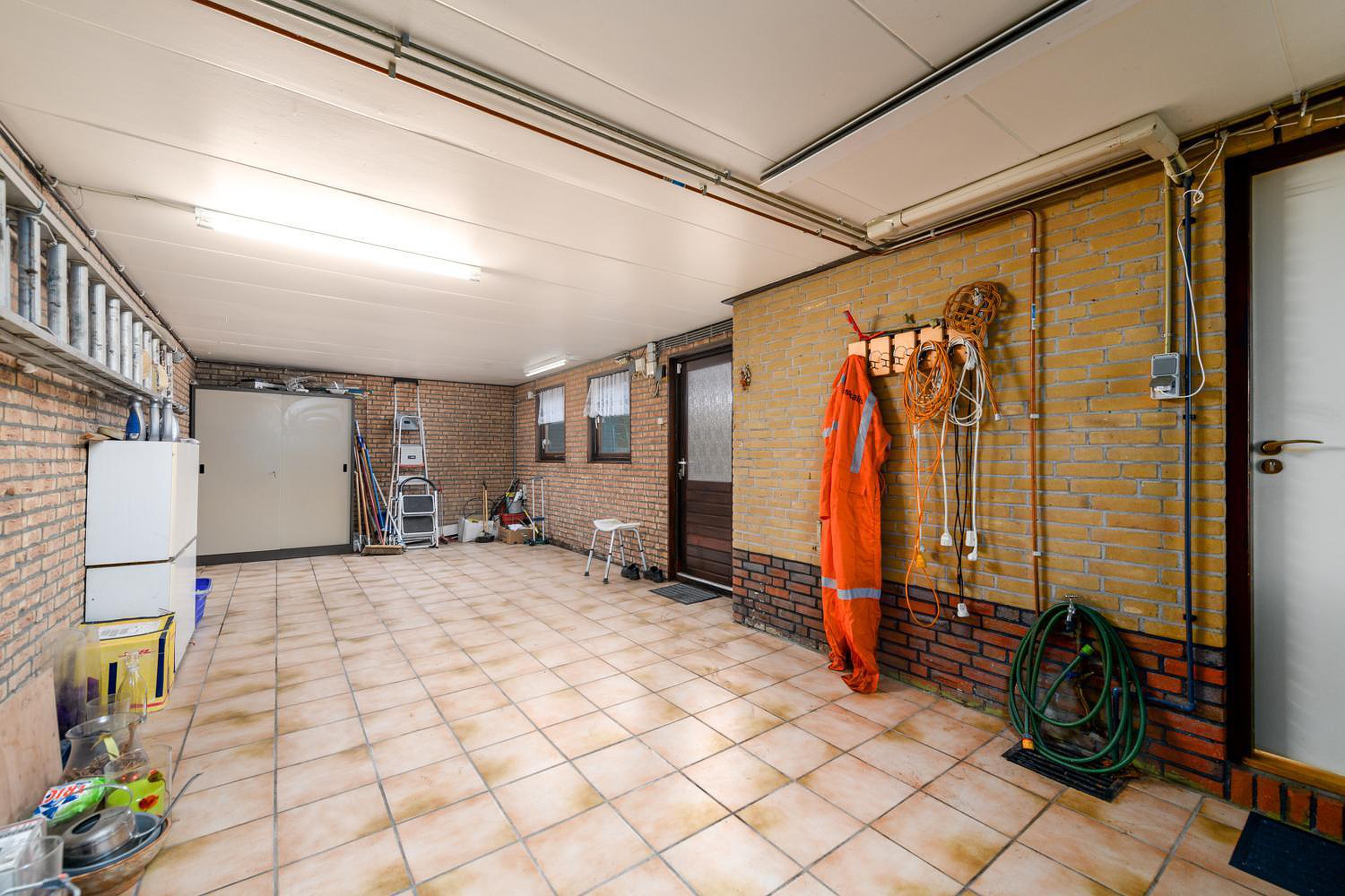 De woonkeuken staat in verbinding met de bijkeuken welke is voorzien van een Airco. Hier bevinden zich de witgoedaansluitingen. Vanuit de bijkeuken kom je in de ruimte inpandige garage van maar liefst 33 m2, voorzien van een elektrische deur. De keuken, hal en bijkeuken hebben vloerverwarming.