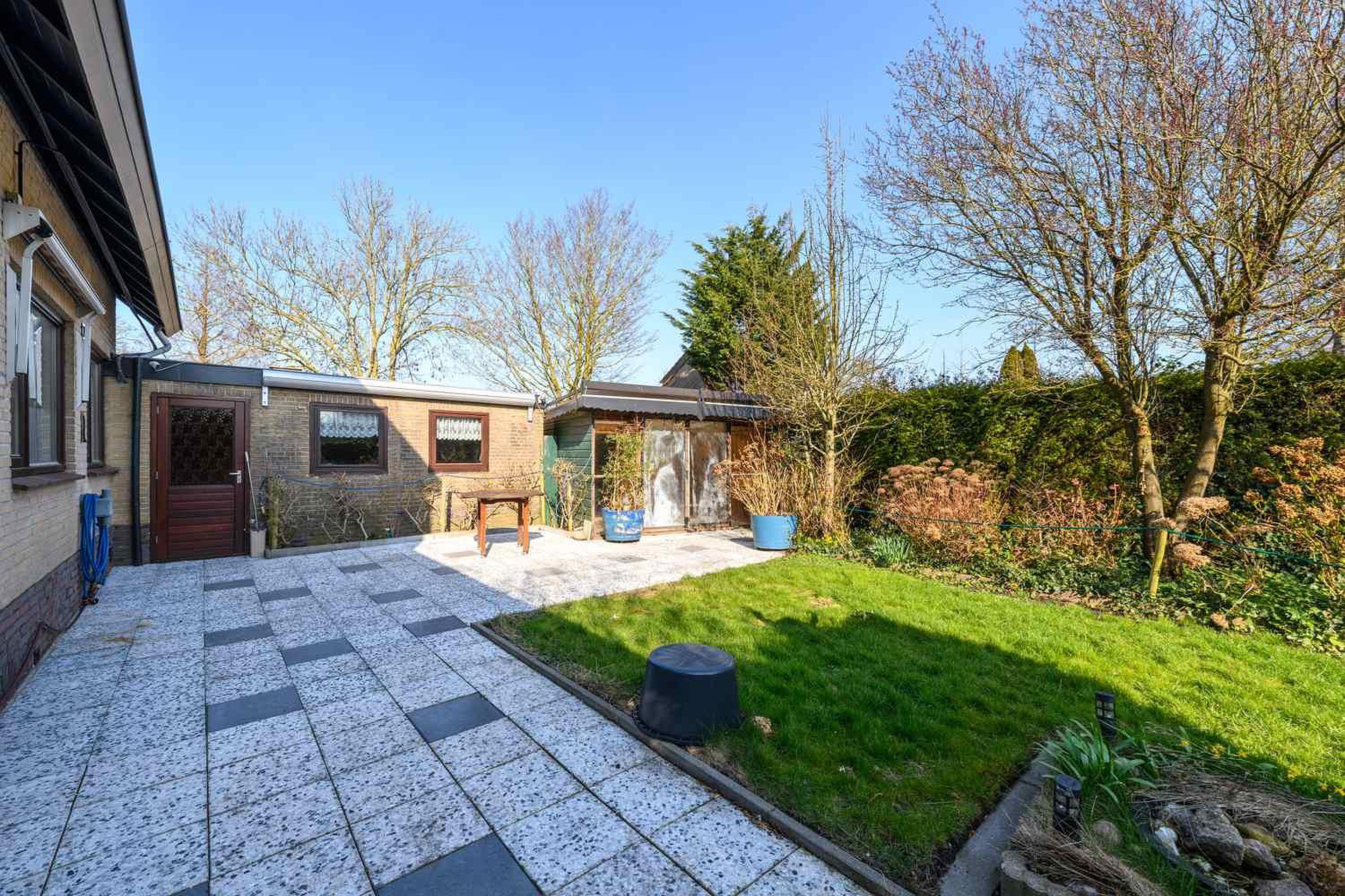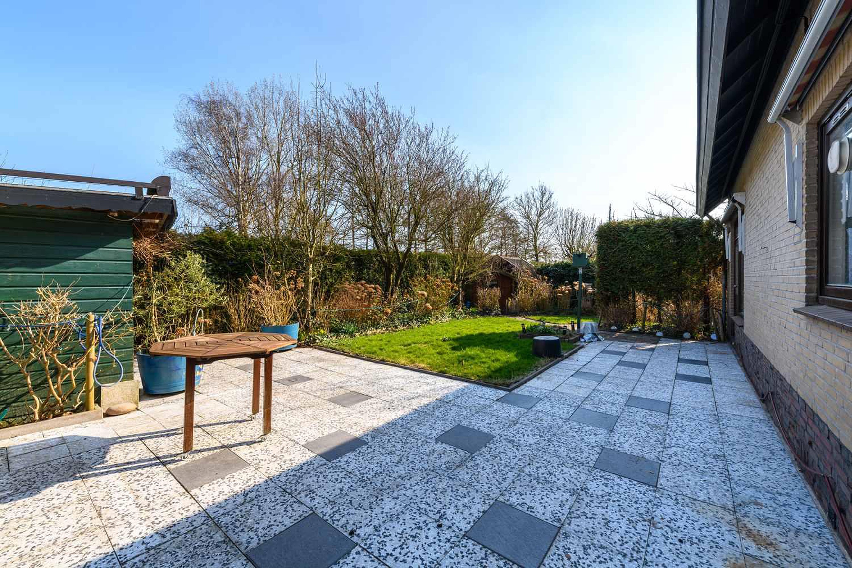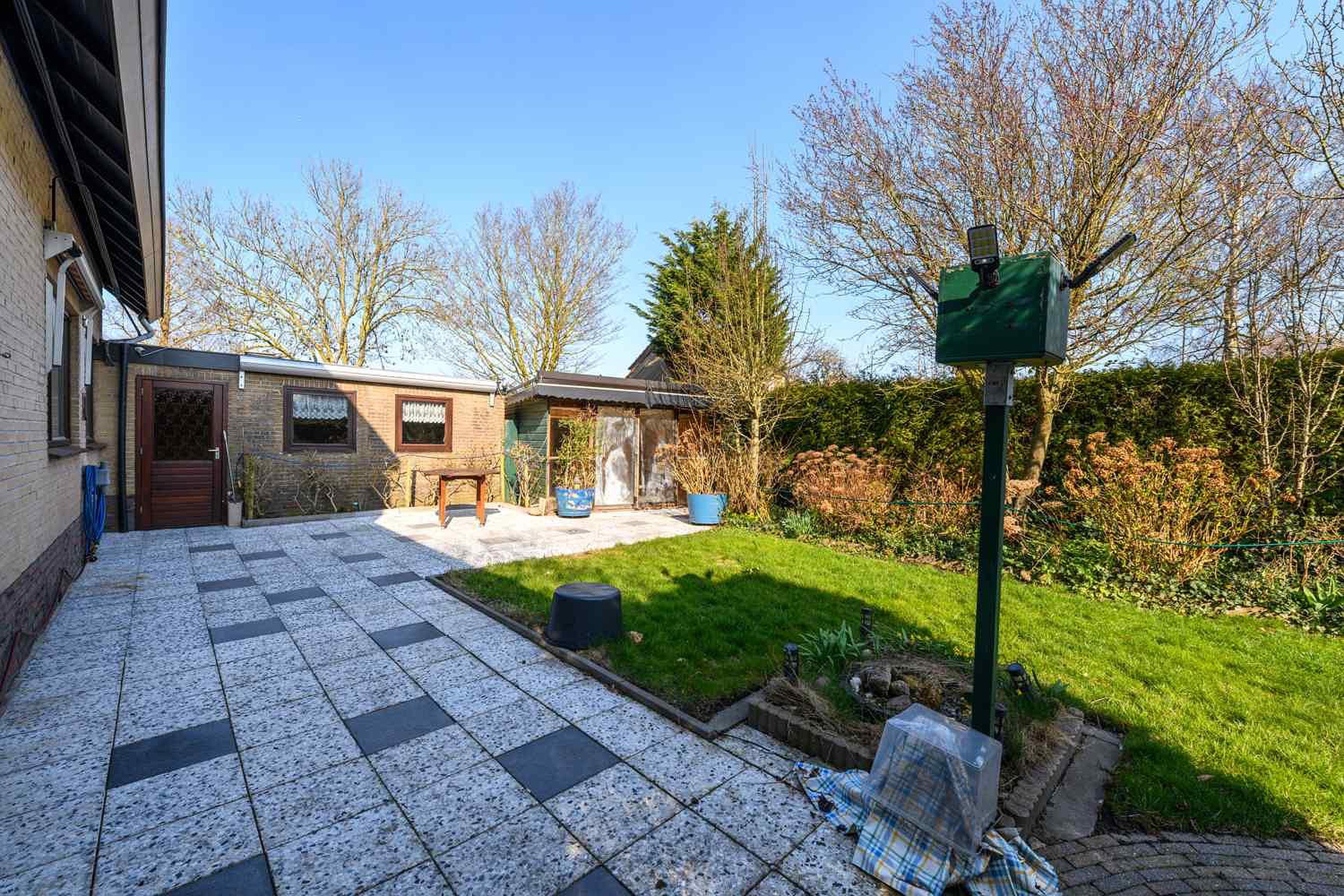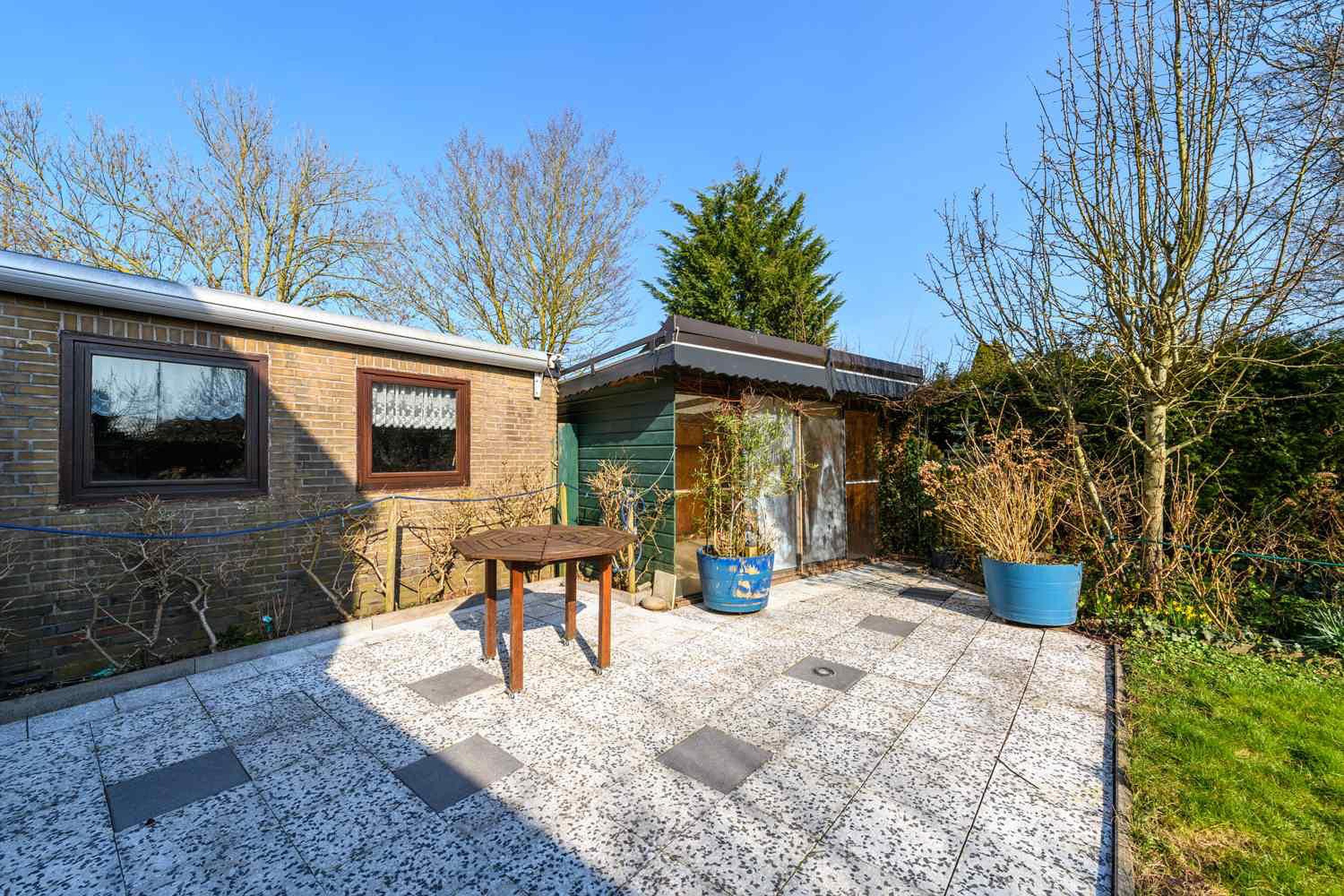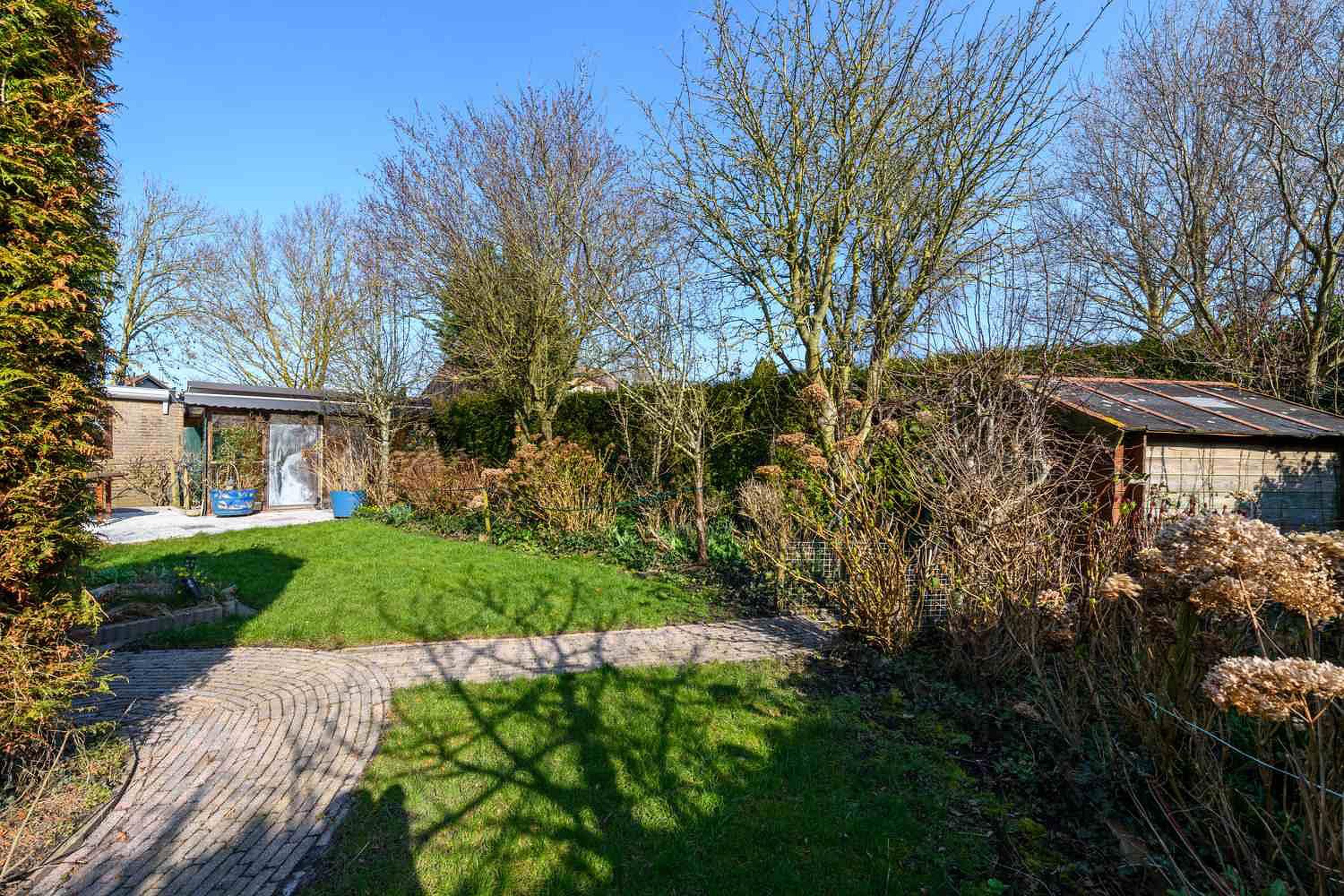 De sfeervolle zonnige achtertuin is gelegen op het zuidoosten en biedt volop privacy en beschutting. De groene tuin is een heerlijke plek om te ontspannen en beschikt over diverse terrassen. In de tuin staat een houten schuur. Deze schuur heeft een eigen toilet en wastafel.