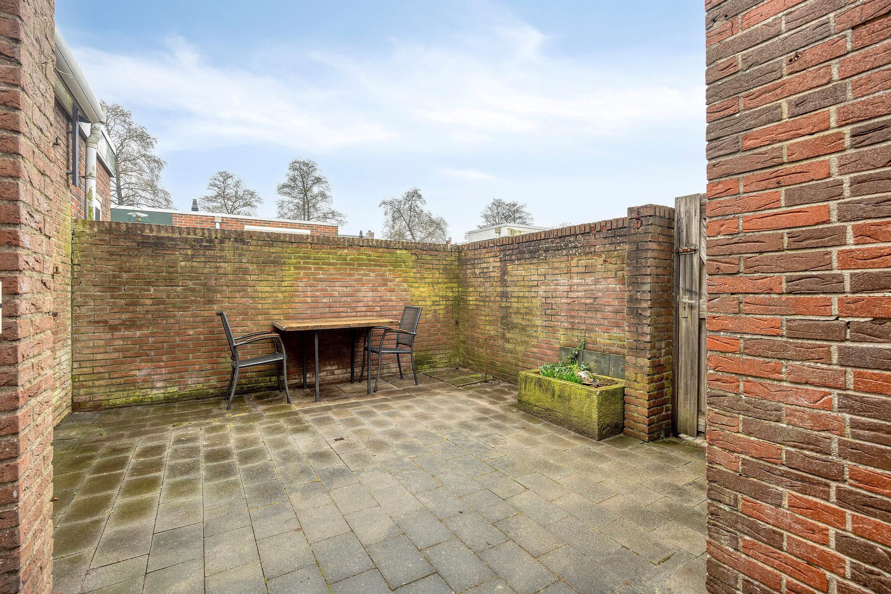 De achtertuin is gesitueerd op het noordwesten en biedt in de middag en avond een fijne plek om van de zon te genieten. Tevens beschikt de achtertuin over een aangebouwde stenen berging, ideaal voor het stallen van fietsen en het opbergen van tuingereedschap.