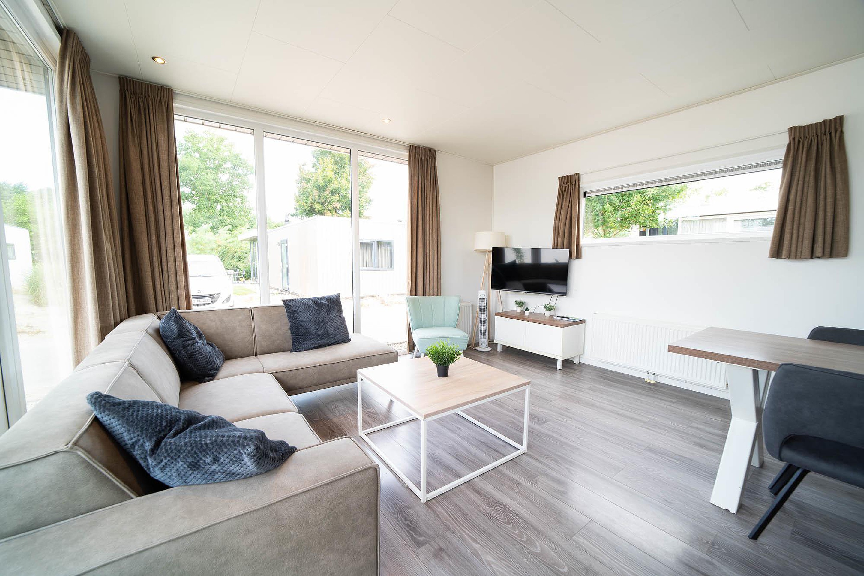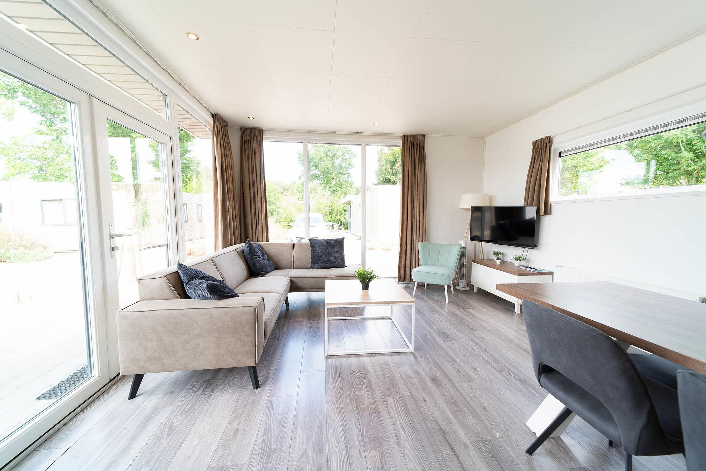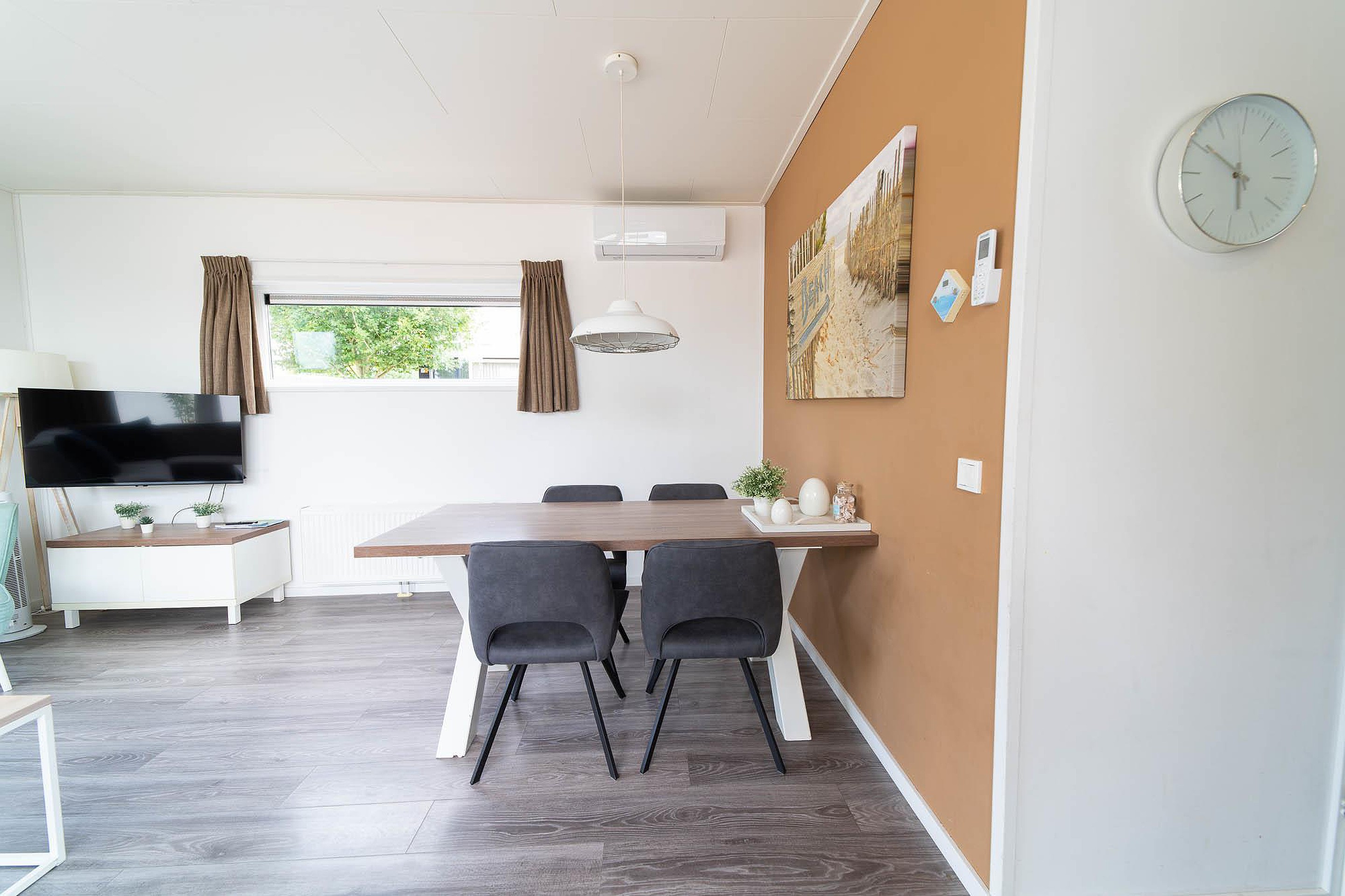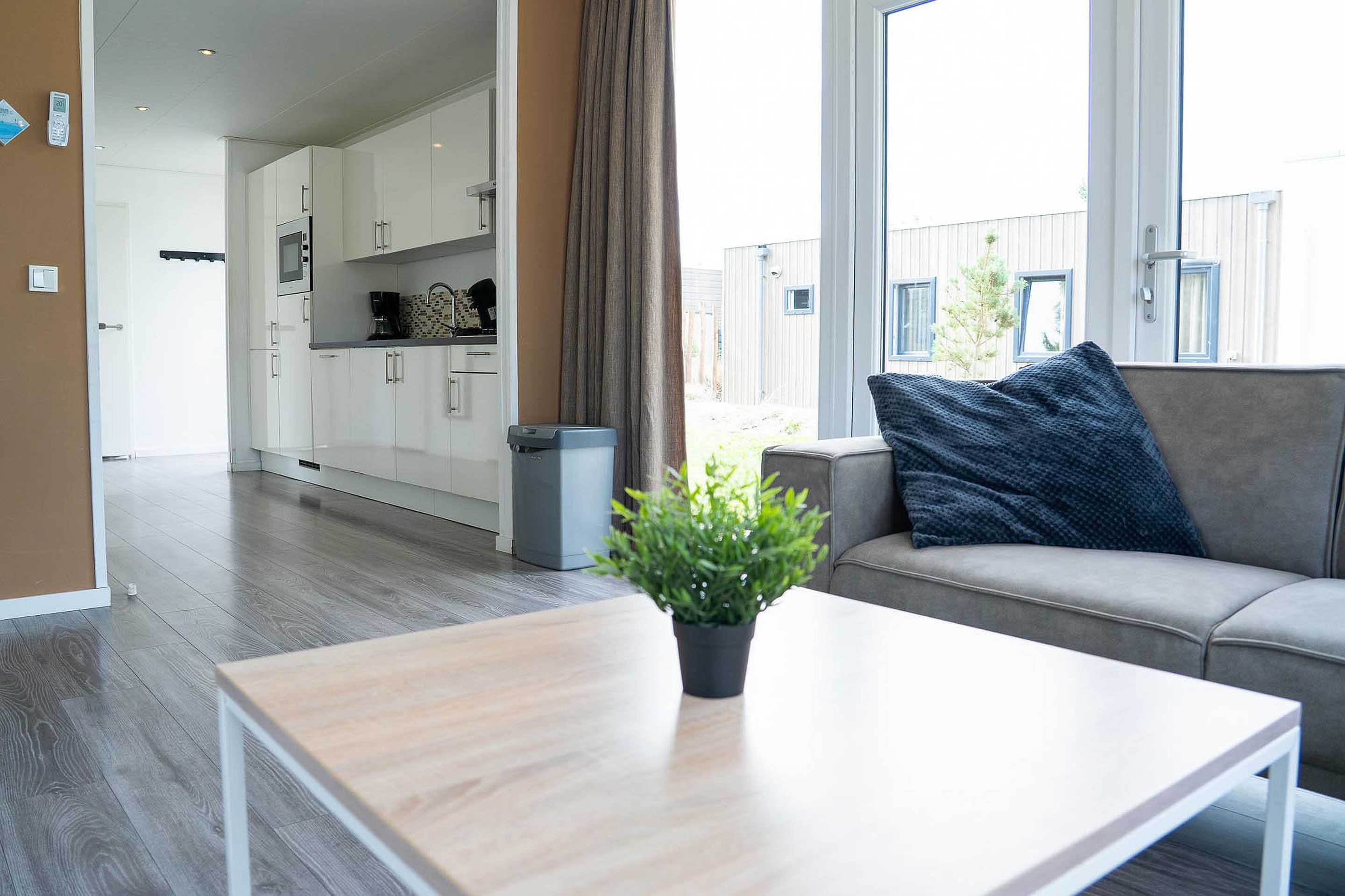Gelegen op een mooie plek op het Europarcs Resort Poort van Zeeland, nabij de uitgang richting het strand, staat dit ruime en goed onderhouden zespersoons chalet. Nummer 273 is een buitenkans voor wie op zoek is naar een comfortabele recreatiewoning, of het nu voor eigen gebruik, verhuur, of een mix van beide is. Het chalet onderscheidt zich direct door de lichte en open sfeer, mede dankzij het hoge plafond en de hoge ramen in de woonkamer, die een gevoel van ruimte en vrijheid geven. De deuren naar het terras op het zuiden laten de zon rijkelijk naar binnen en zorgen voor een naadloze overgang van binnen naar buiten. De airconditioning zorgt voor extra comfort, zelfs op de warmste dagen. Met 58 m2 woonoppervlakte en een royaal perceel van 195 m2 op huurgrond, is dit chalet groter dan de meeste vergelijkbare woningen op het park en biedt het een oase van rust op een zeer gewilde locatie. Parkeren op eigen erf is een bijkomend gemak.