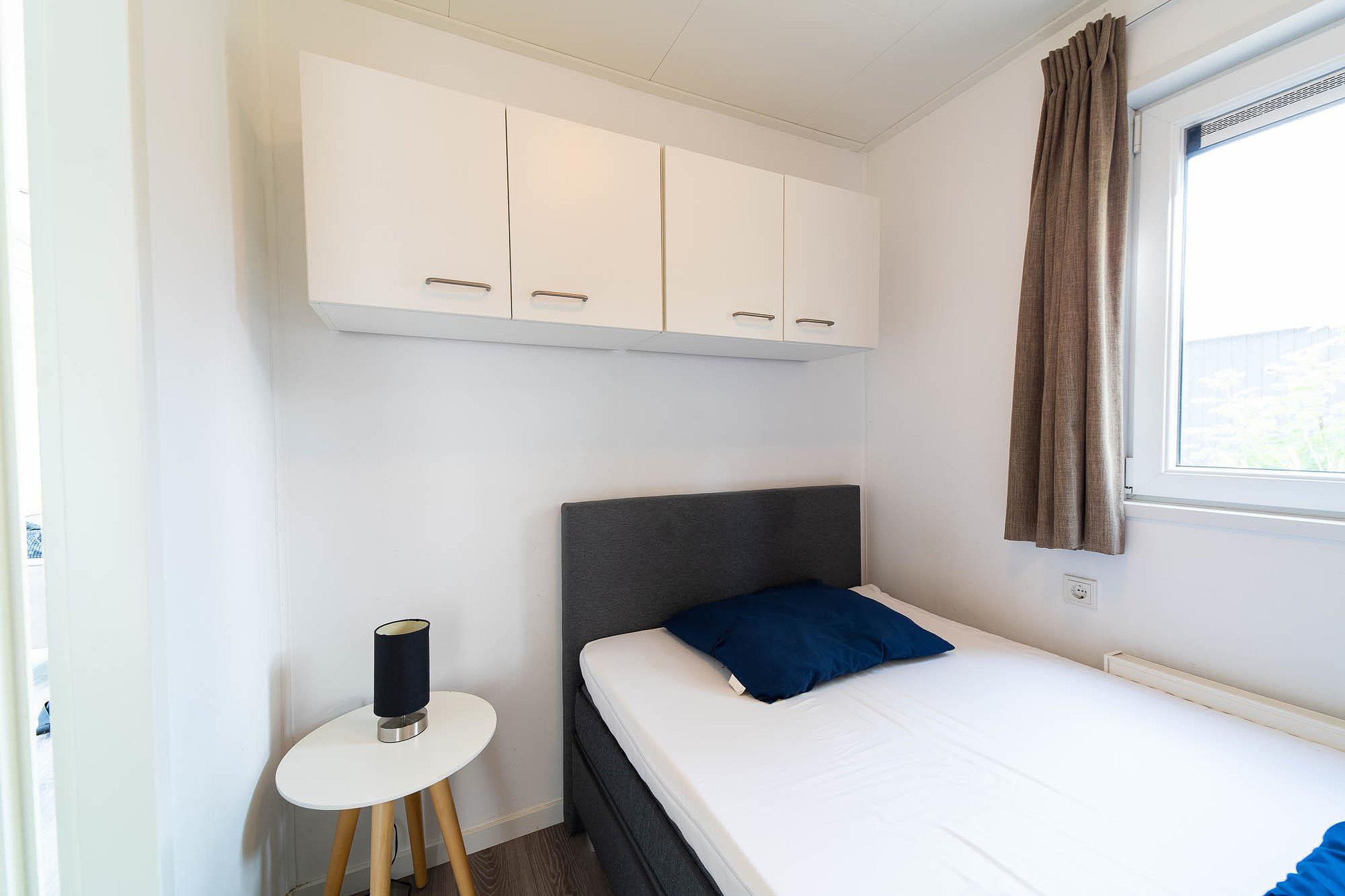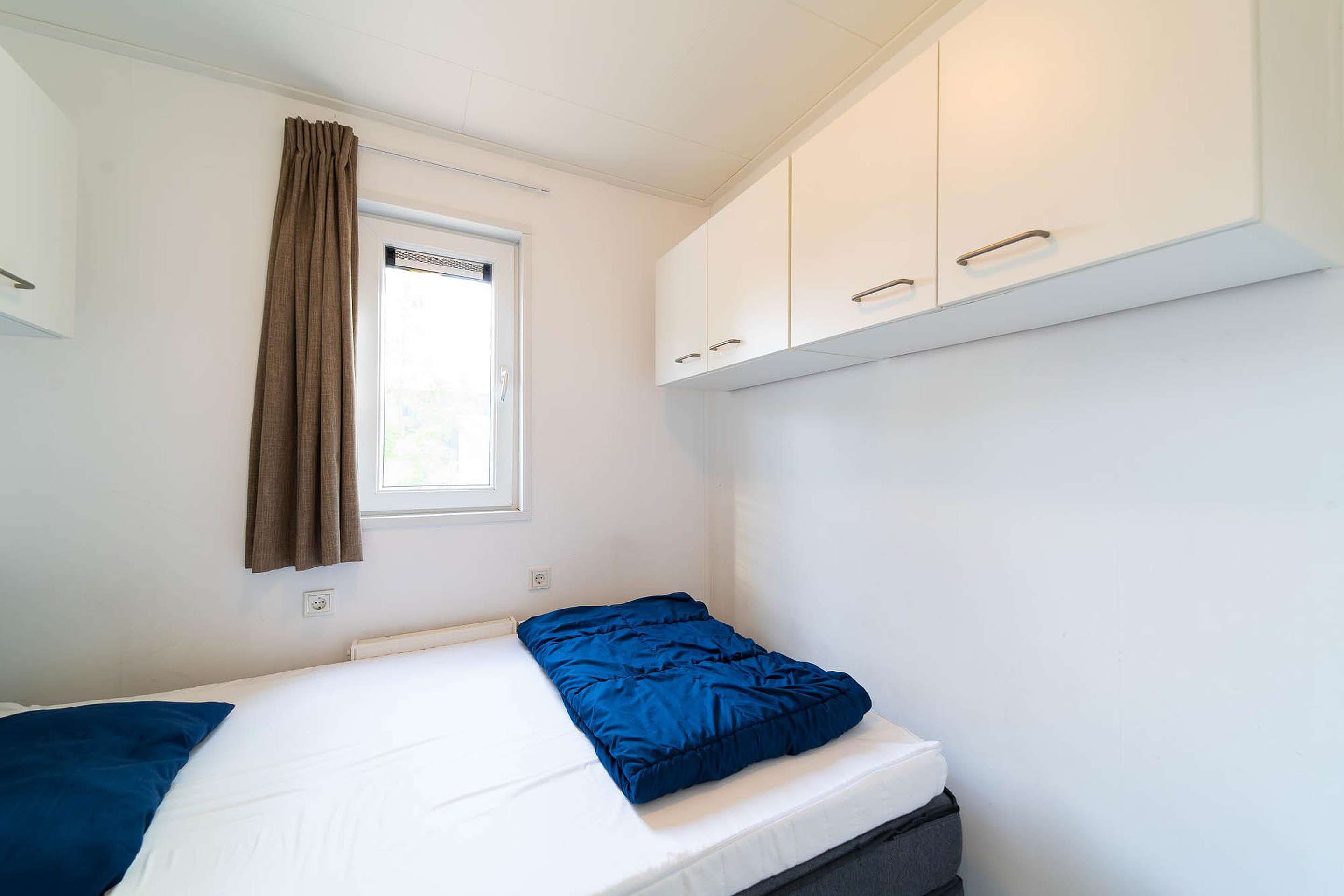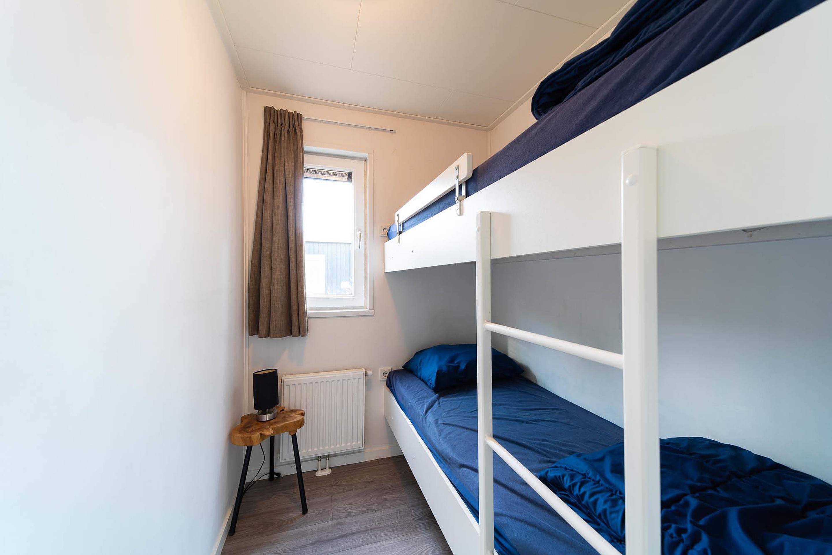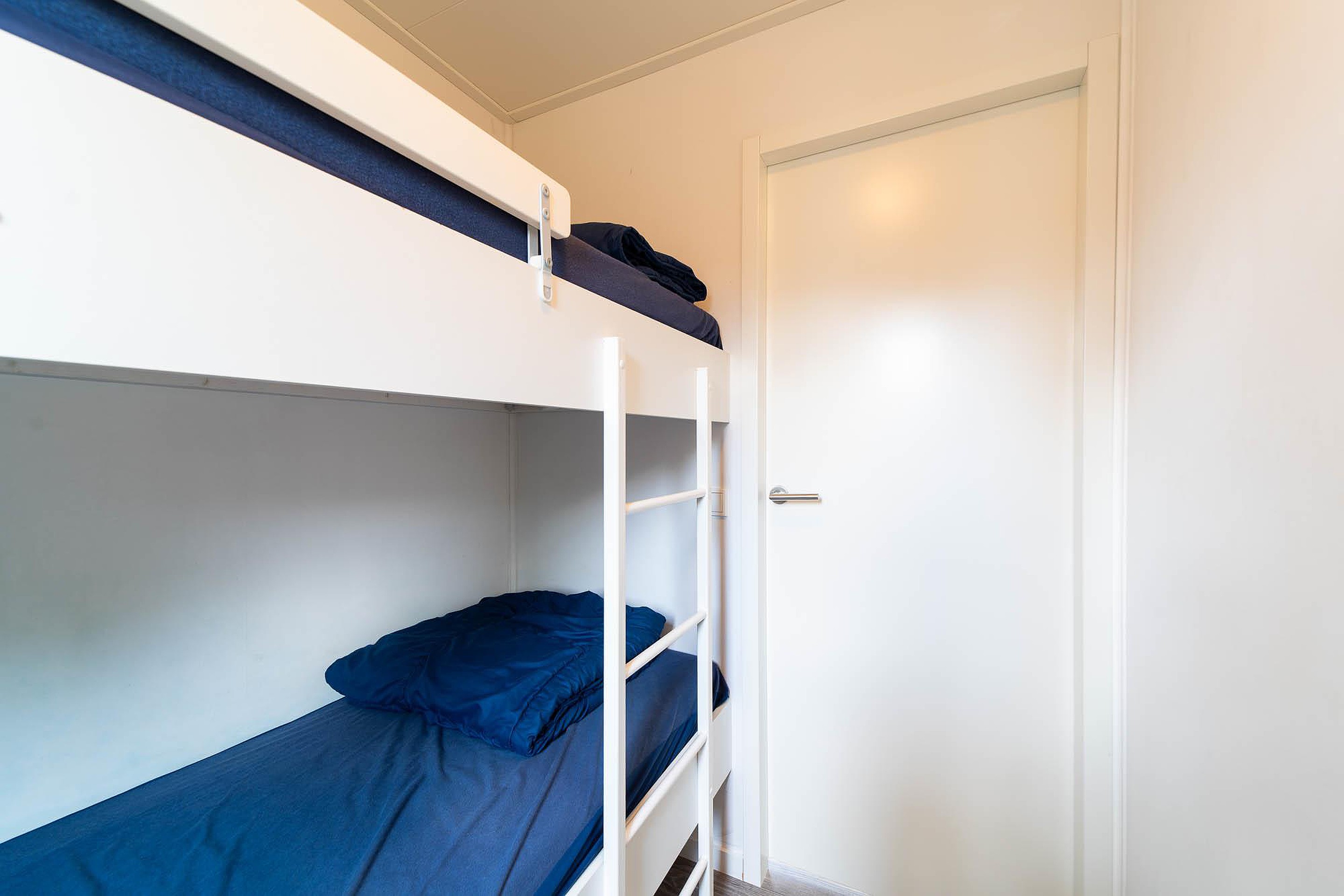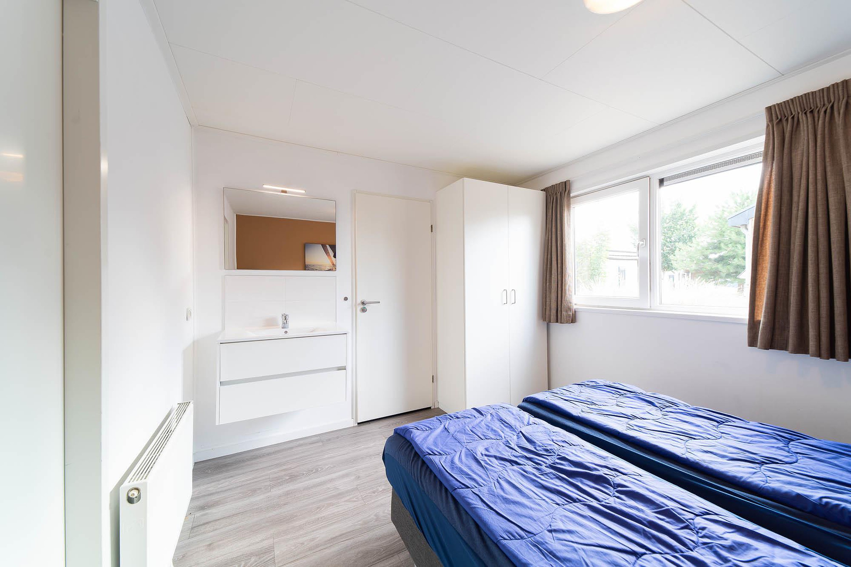 Het chalet beschikt over drie smaakvol afgewerkte slaapkamers, waardoor er voldoende privacy is voor alle gasten. De master bedroom heeft het extra comfort van een eigen badkamer met een wasbak. Daarnaast zijn er nog twee andere slaapkamers. Op verzoek van de huurders zijn de twee eenpersoonsbedden vervangen door een twijfelaar van 120 cm. Deze praktische aanpassing maakt het chalet extra comfortabel. De mogelijkheid om met zes personen te verblijven maakt dit chalet extra aantrekkelijk voor verhuurders, aangezien deze chalets populairder zijn dan de gangbare vierpersoons chalets op het resort.