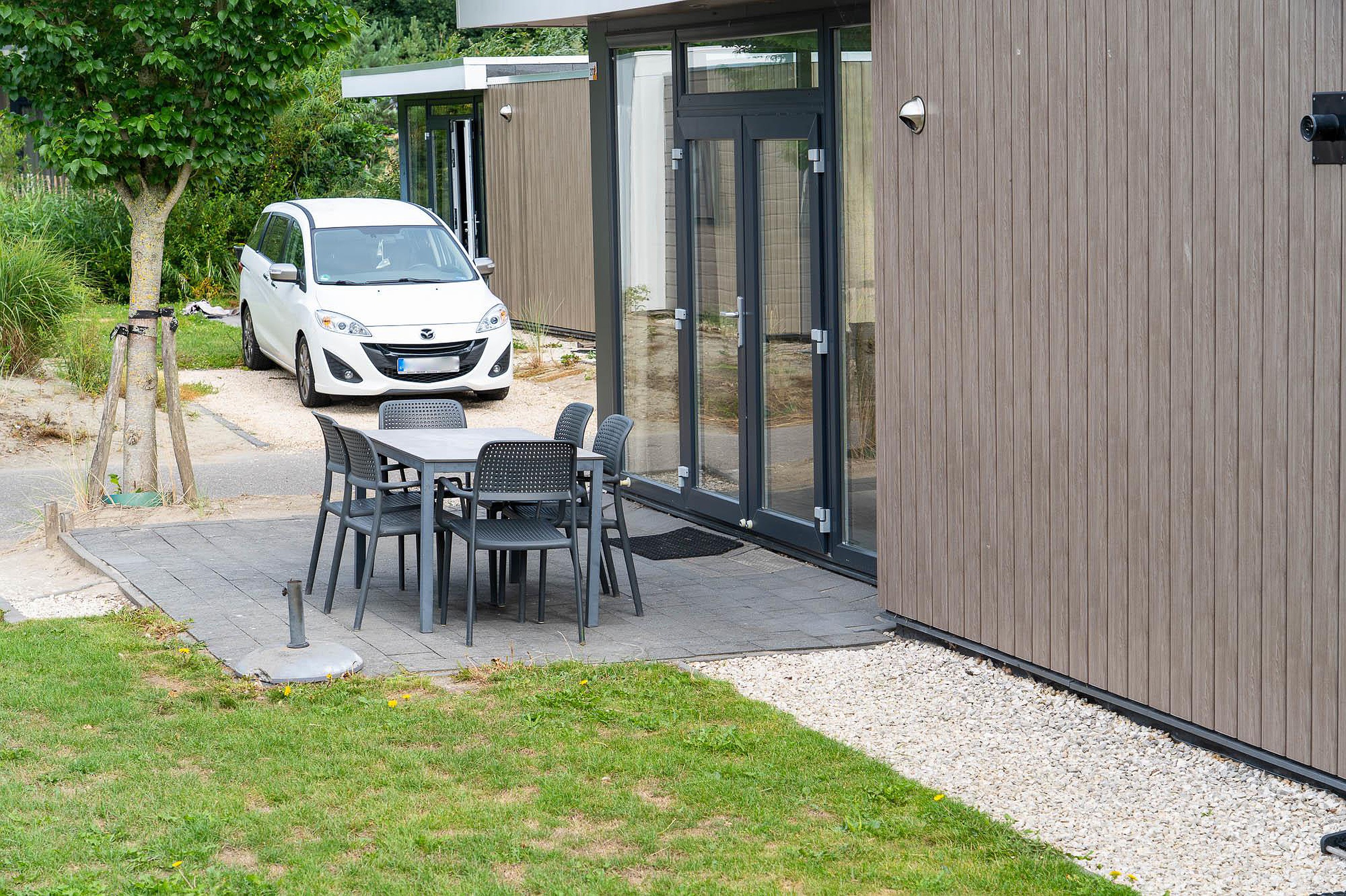 Tuin De deuren vanuit de woonkamer leiden direct naar een ruim terras op het zuiden, de ideale plek om te genieten van de zon en de rust van de omgeving. Het perceel van 195 m2 is overzichtelijk en goed te onderhouden, en biedt voldoende ruimte om te ontspannen en van de buitenlucht te genieten. De ligging van de woning, dichtbij de uitgang, betekent dat het strand en de natuur direct binnen handbereik zijn. Dit maakt het de perfecte uitvalsbasis voor lange wandelingen en fietstochten, ook met de hond, want honden zijn toegestaan op het resort. Parkeren op eigen terrein is een prettige bijkomstigheid en maakt de aankomst en het vertrek extra gemakkelijk.