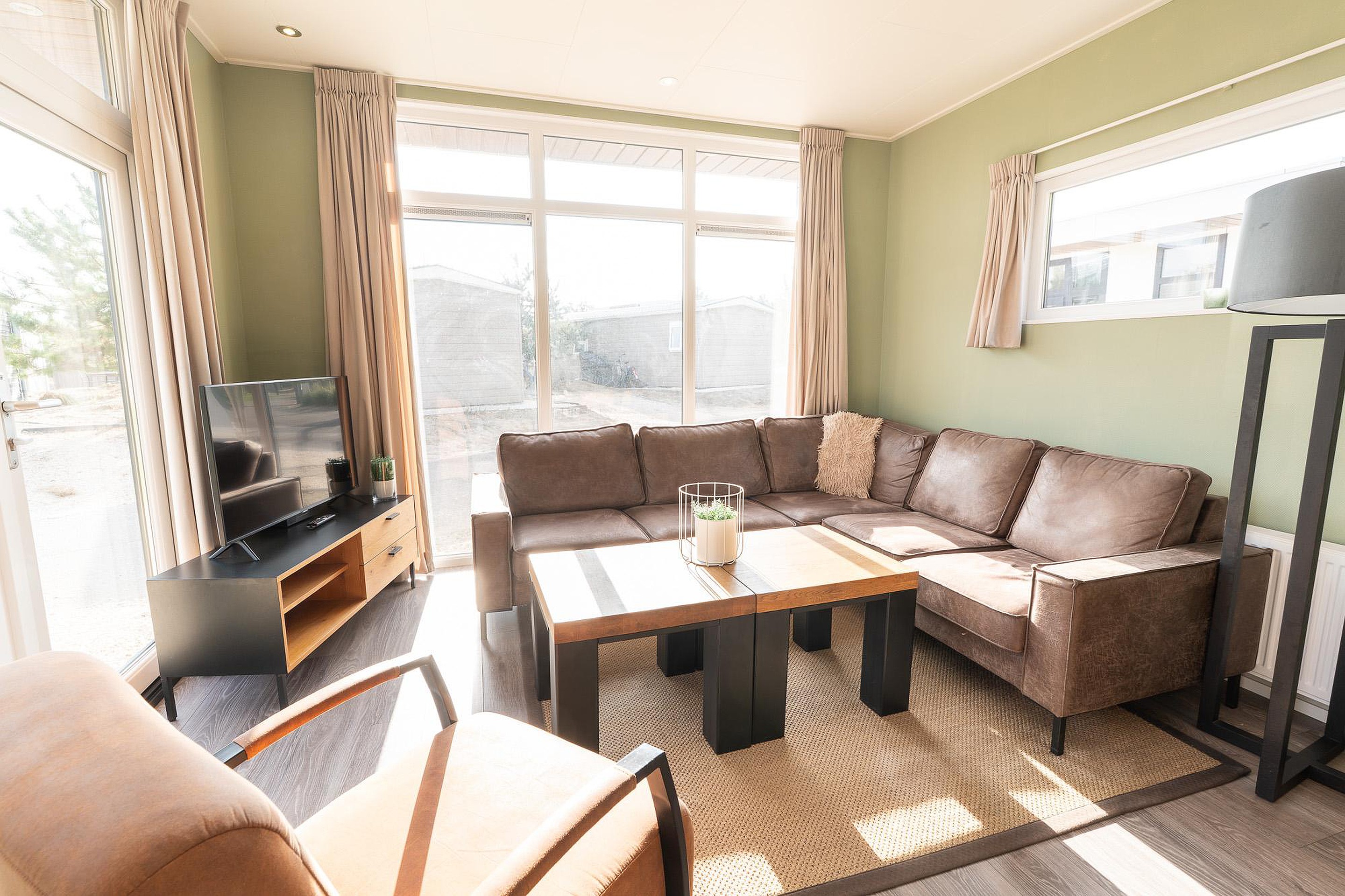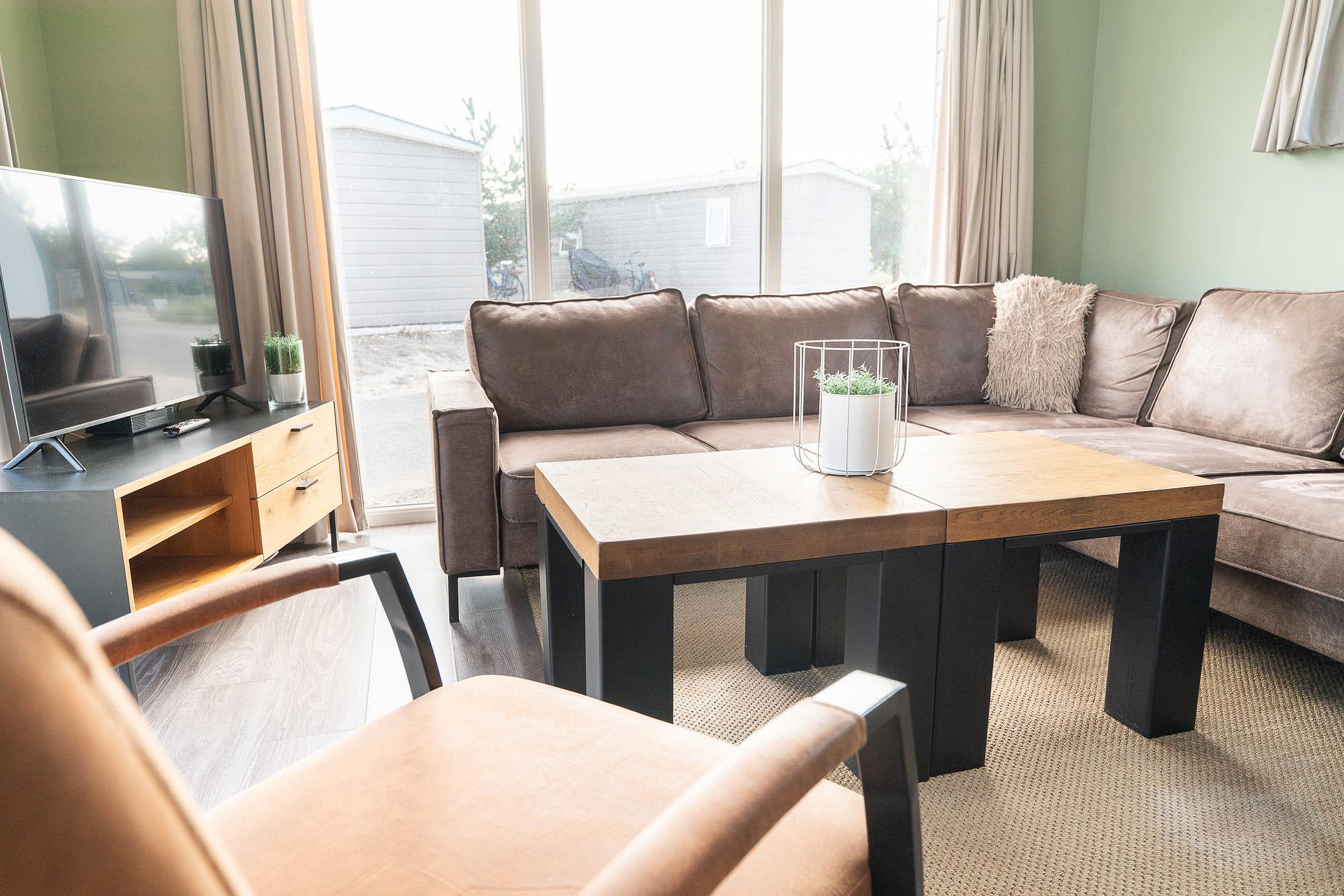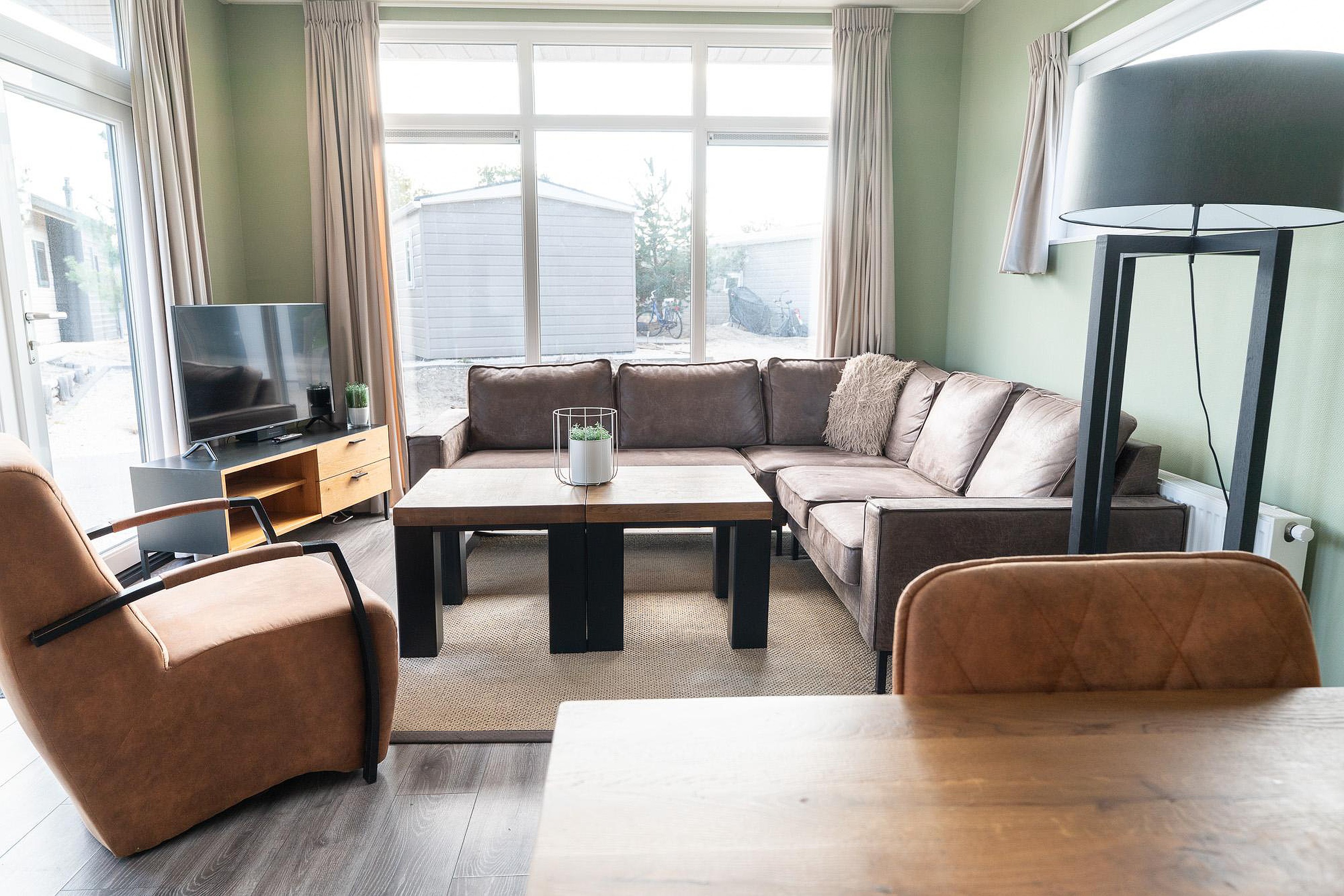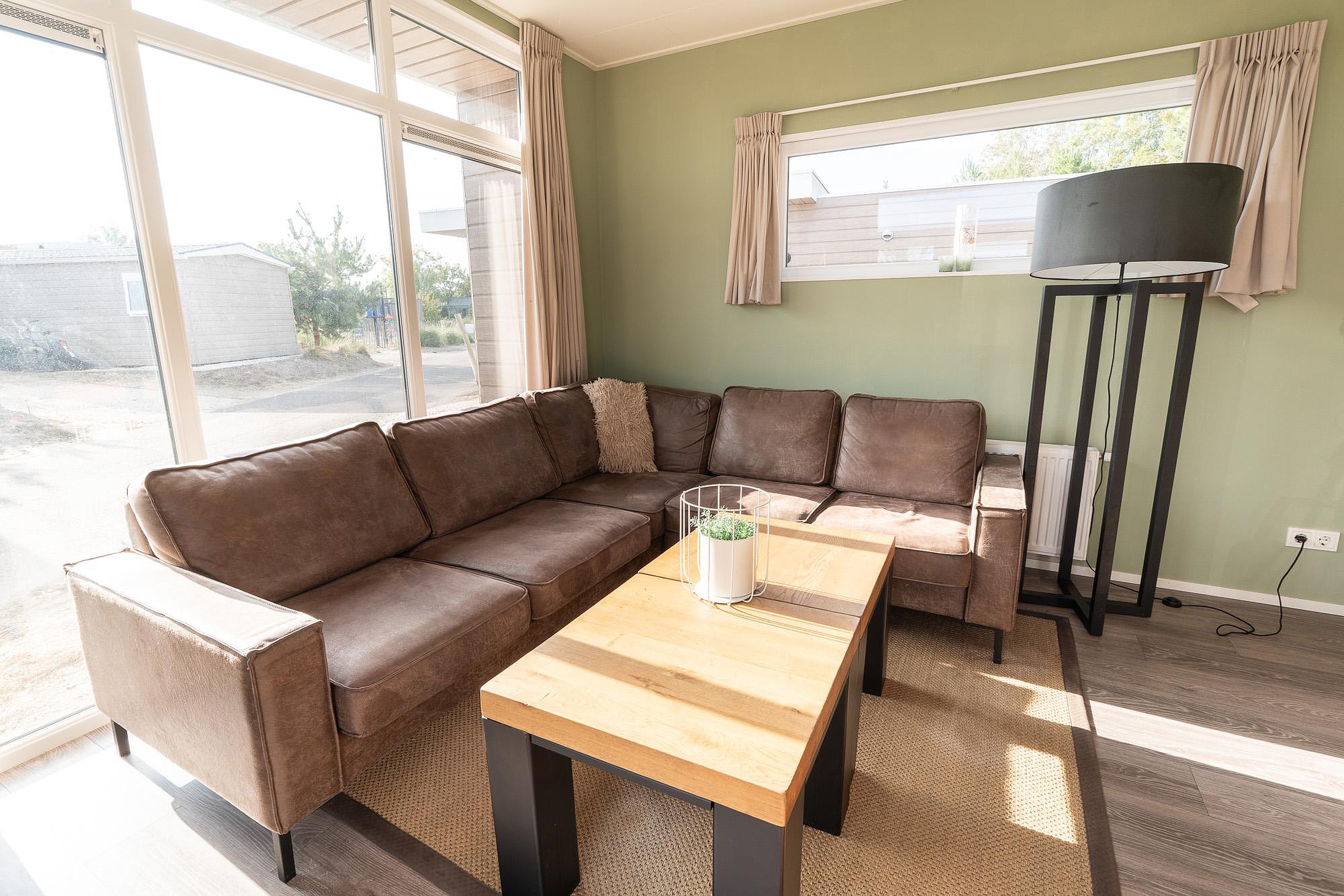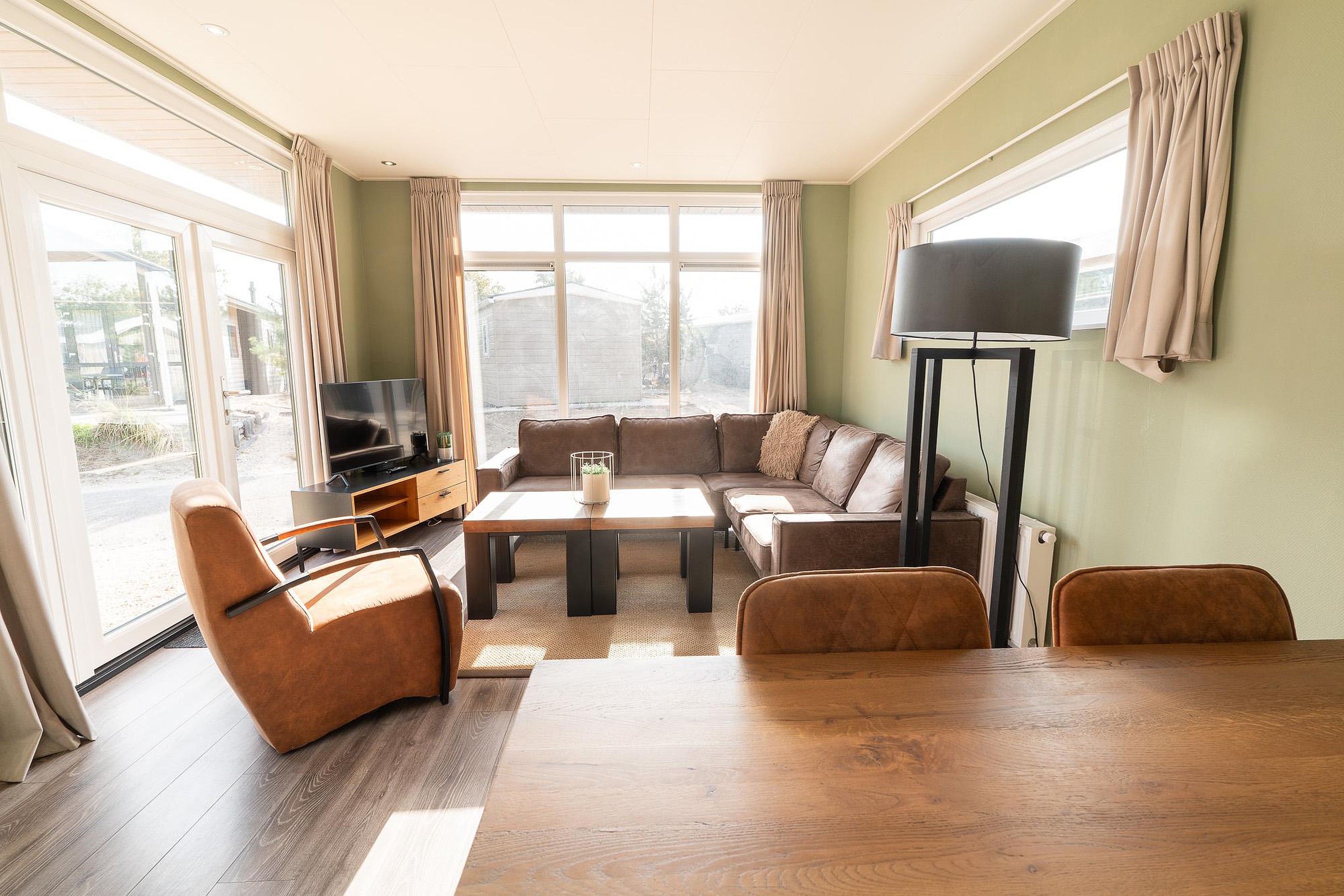 De woonkamer is licht en nodigt uit tot ontspanning. De net wat hogere plafondhoogte draagt bij aan een fijn gevoel van ruimte. Er is een comfortabele zithoek voor vier personen aanwezig. Aansluitend aan de woonkamer en in directe relatie met de keuken is de eethoek geplaatst. Zowel het onderhoud van de binnenzijde als het meubilair is in goede staat.