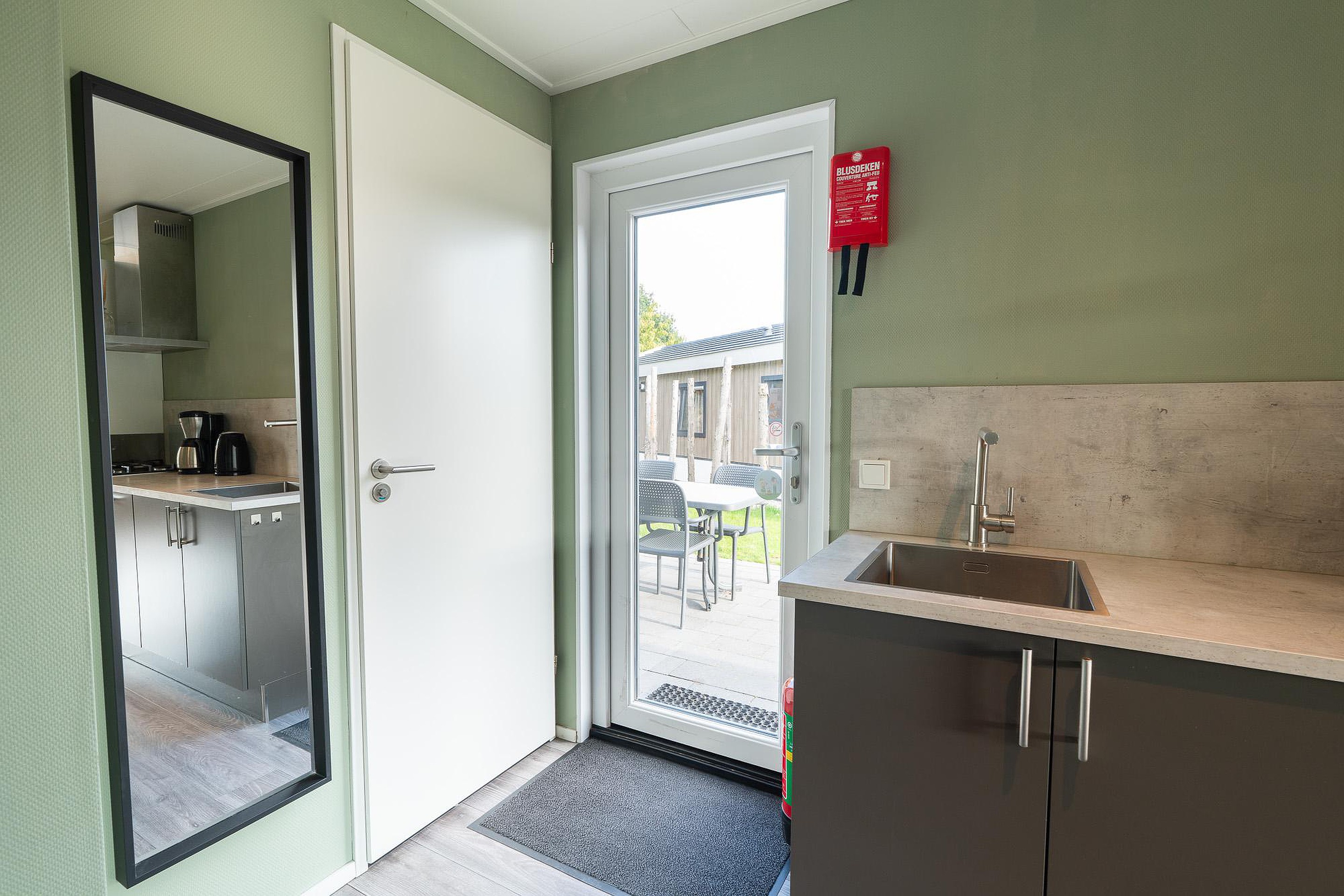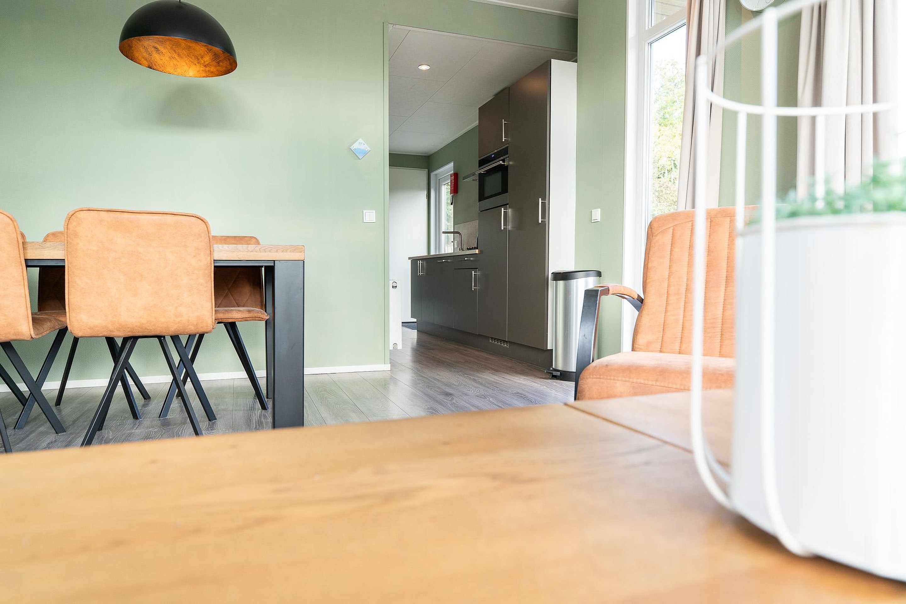 Begane grond U rijdt uw eigen auto eenvoudig op uw eigen terrein bij het chalet. De entree van het chalet leidt u direct langs de keuken naar de centrale leefruimte.