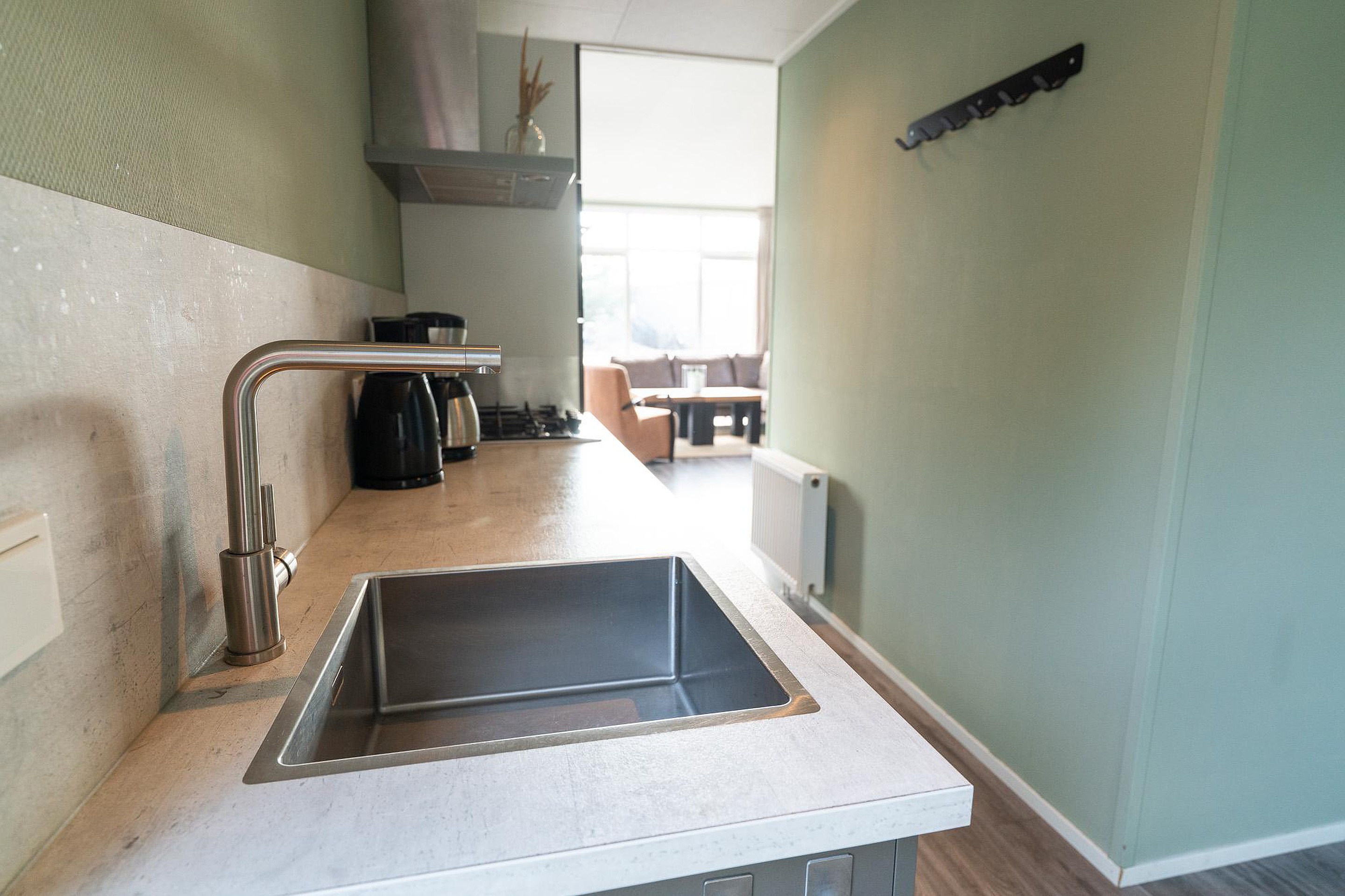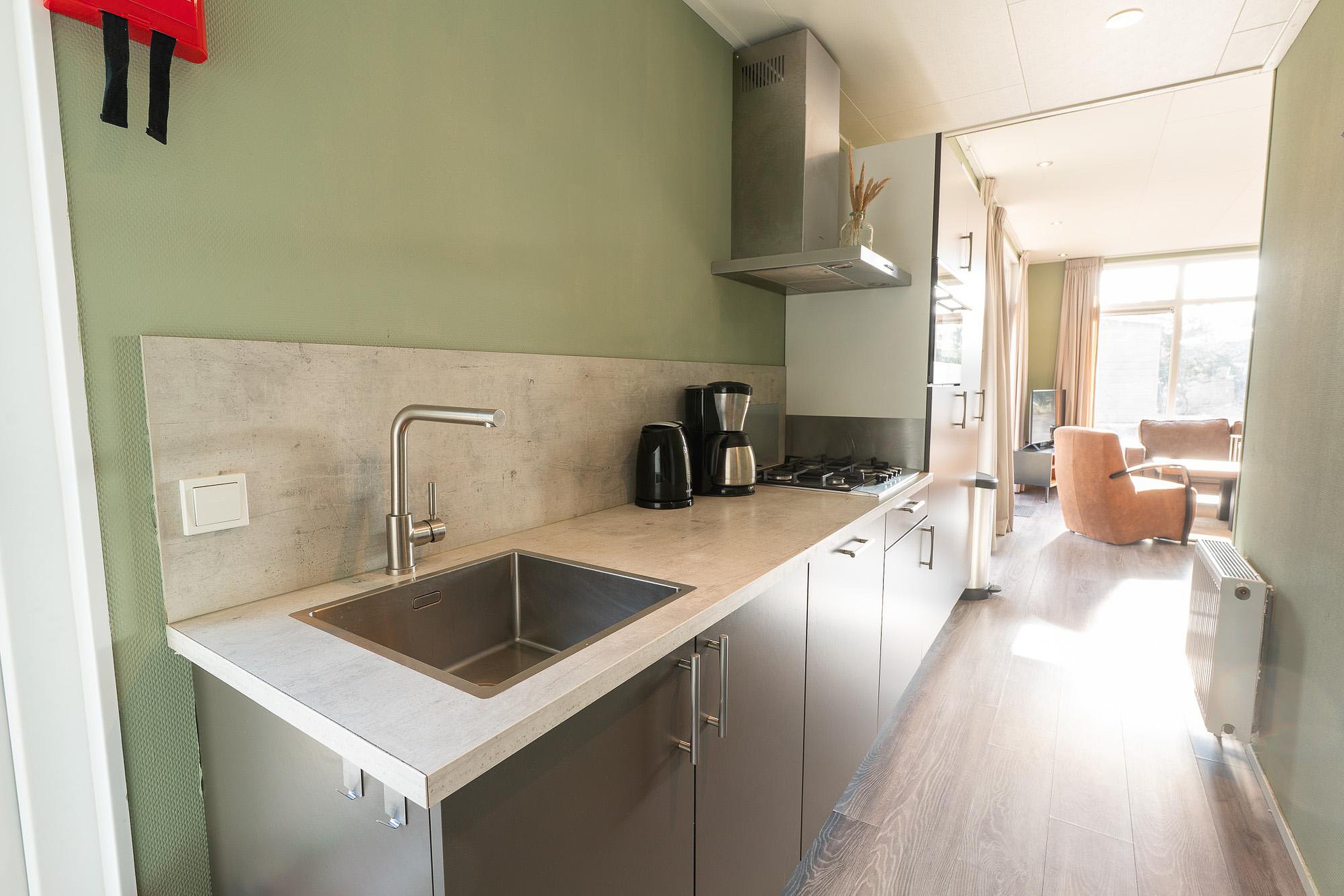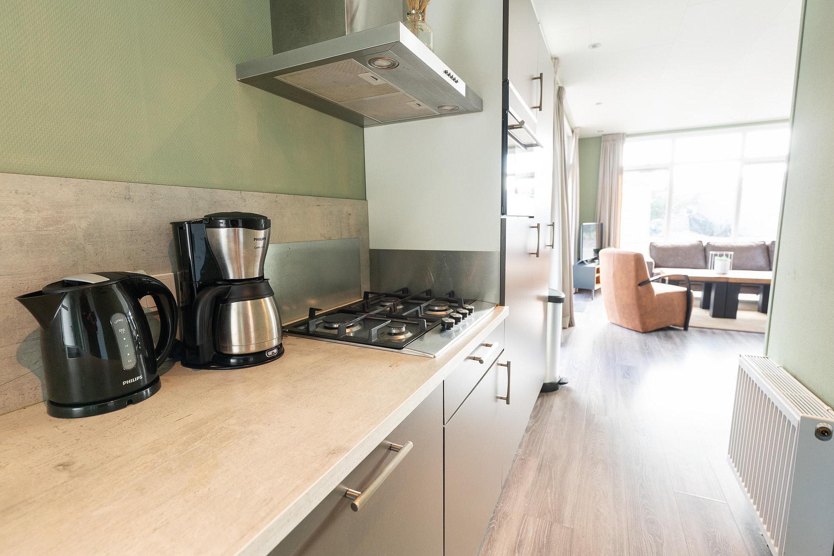 De compleet ingerichte keuken staat garant voor gemak. Deze is uitgerust met een koelkast met vriesvak, een vaatwasser, een magnetron en een kooktoestel (gas). Alles wat u nodig heeft voor een uitgebreide maaltijd of een snelle snack is binnen handbereik.