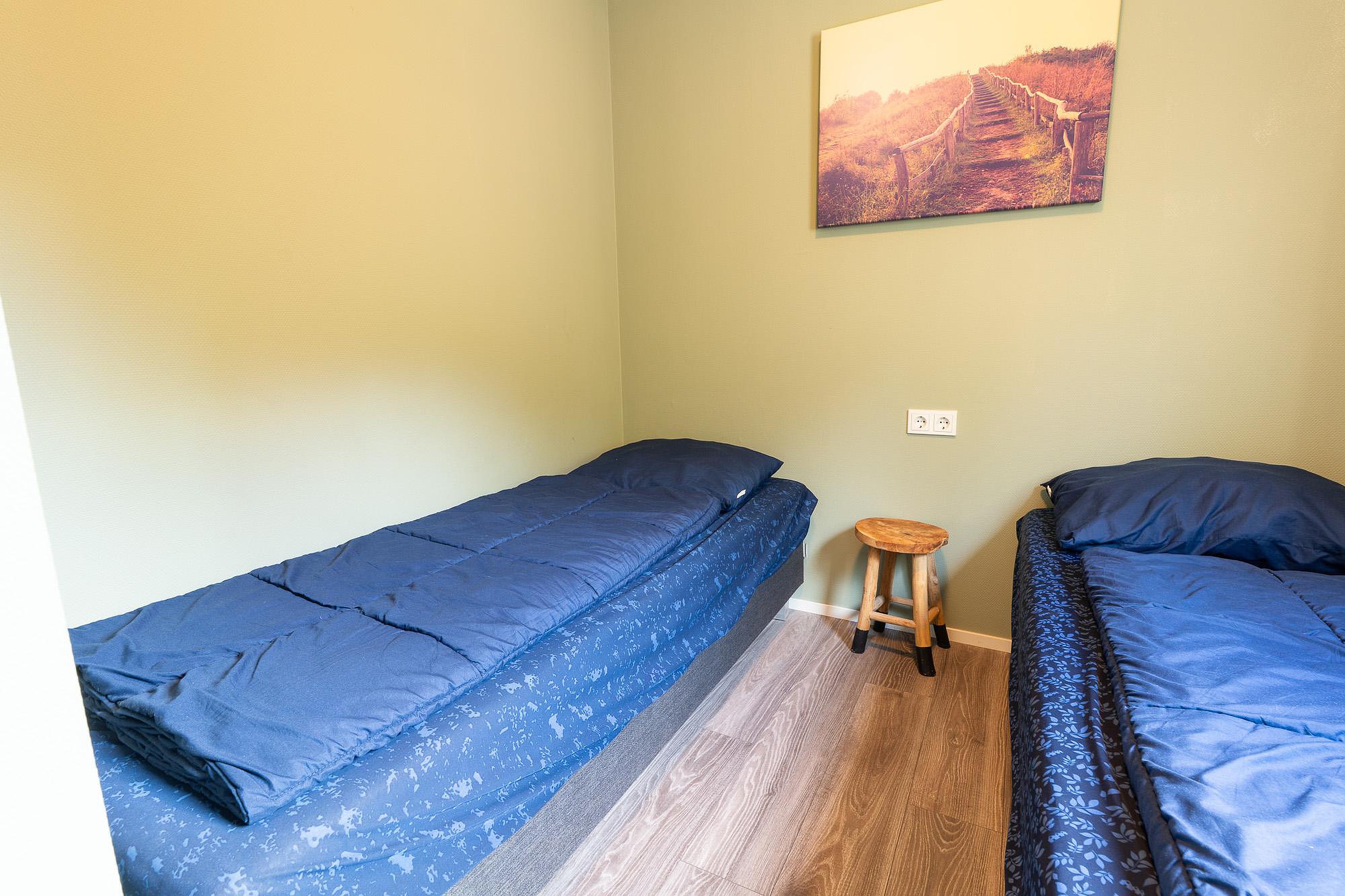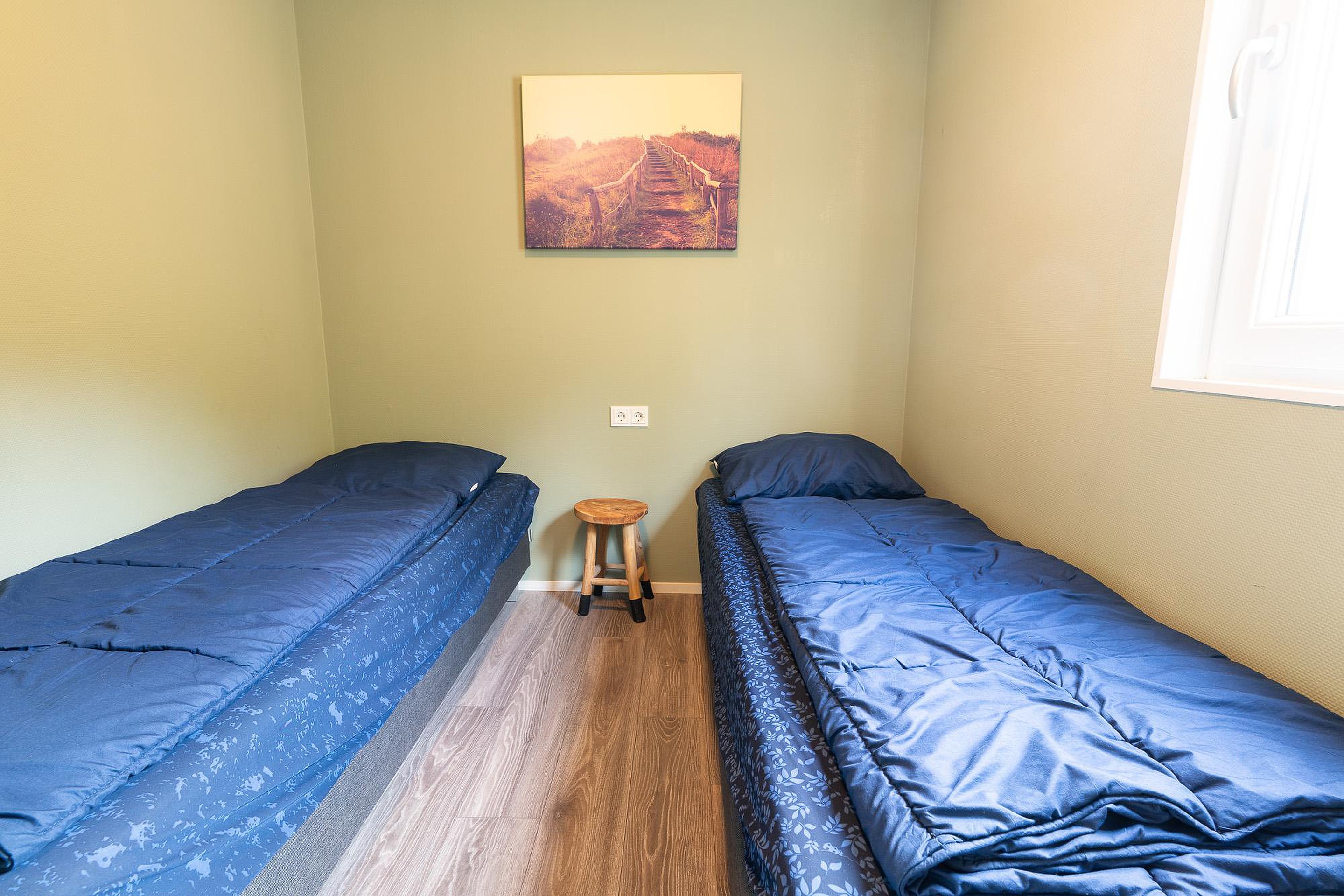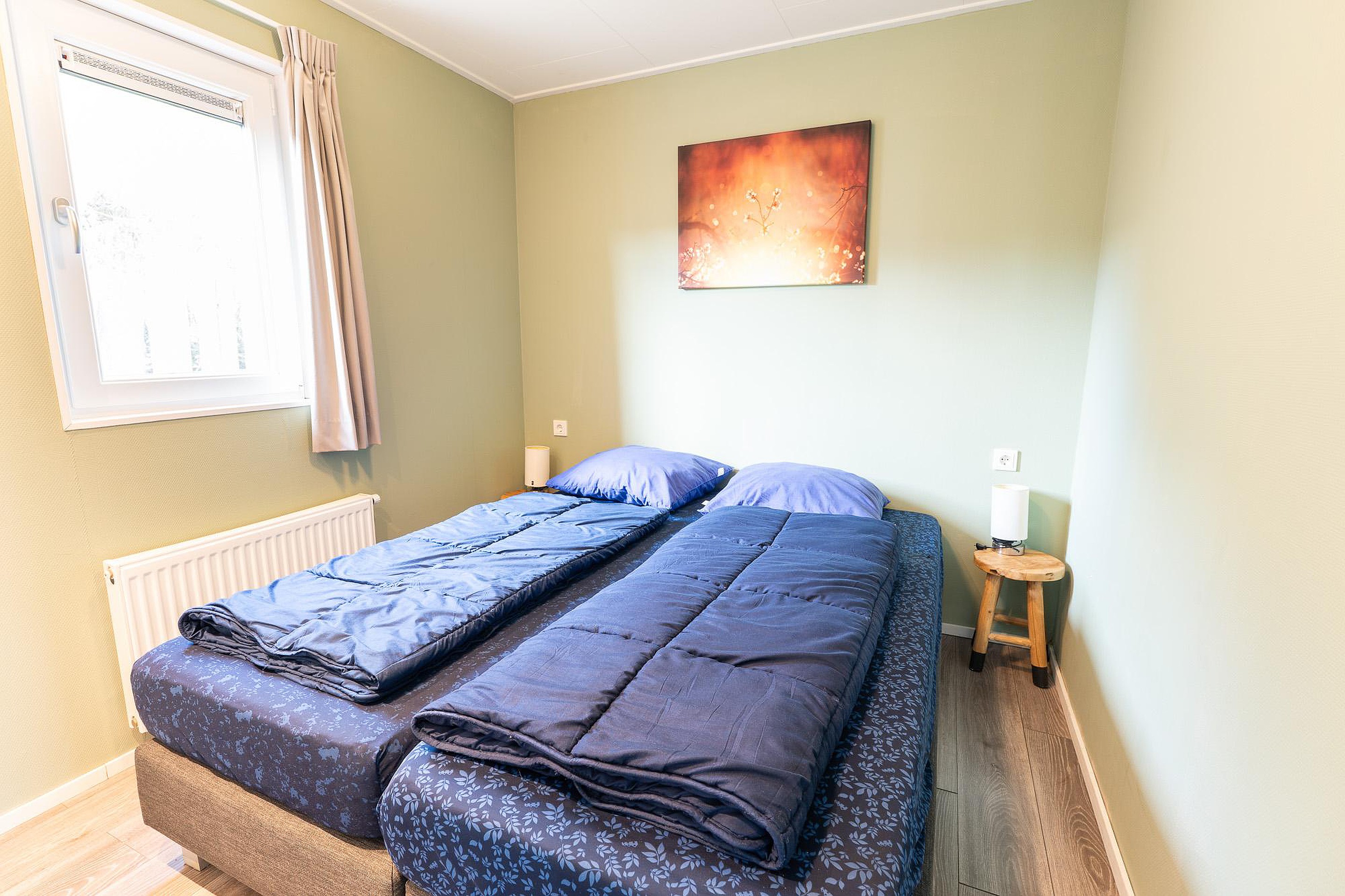 Het chalet beschikt over twee slaapkamers, waardoor er comfortabel plaats is voor vier personen. Iedere slaapkamer is voorzien van twee eenpersoonsbedden; er zijn geen stapelbedden aanwezig.
