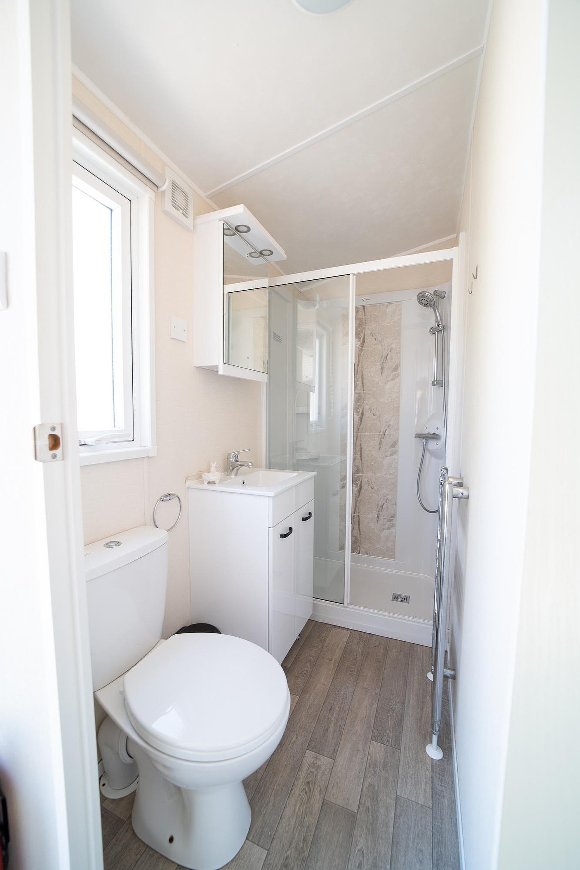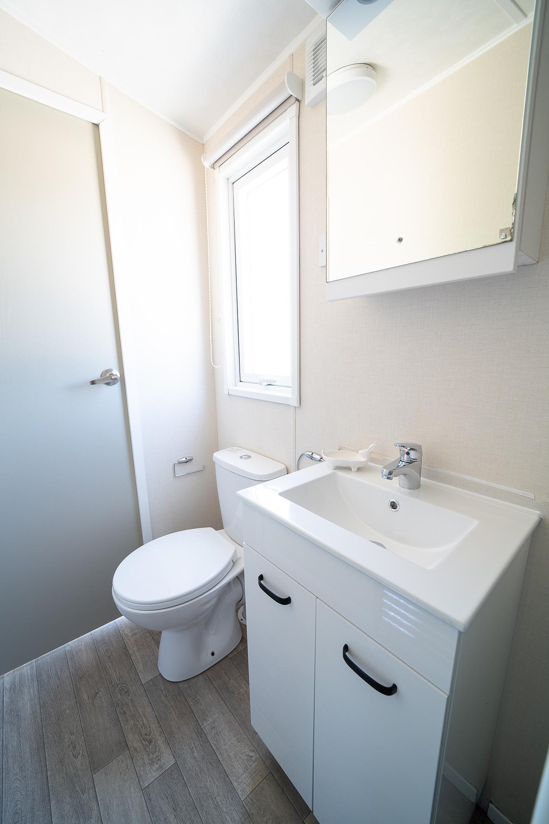 Het chalet beschikt over twee comfortabele slaapkamers, die samen vier slaapplekken bieden. Ideaal voor een gezin met kinderen of om gasten te ontvangen. De goed onderhouden badkamer is van alle gemakken voorzien, inclusief een moderne douchecabine, een net wastafelmeubel en een toilet.