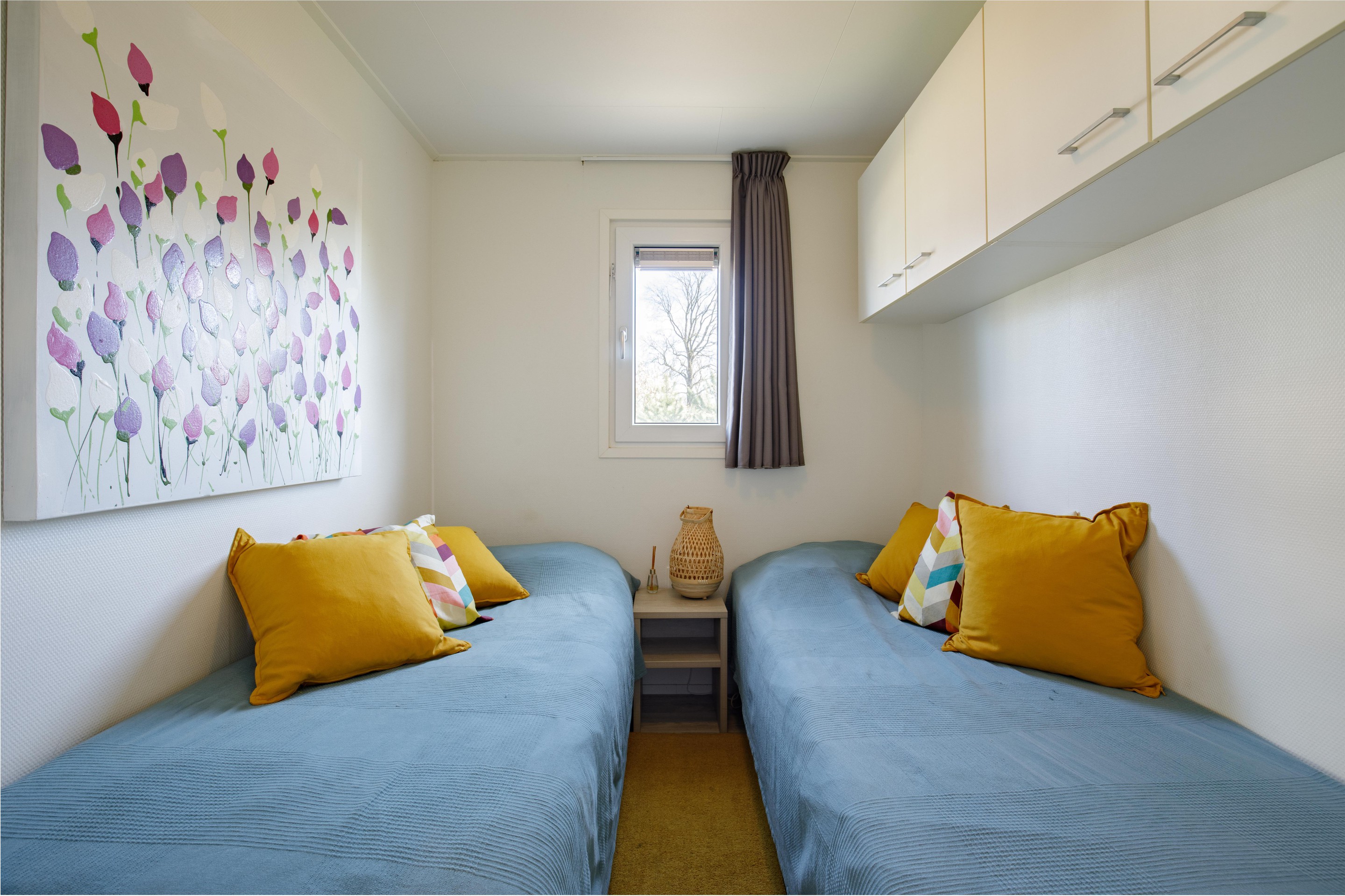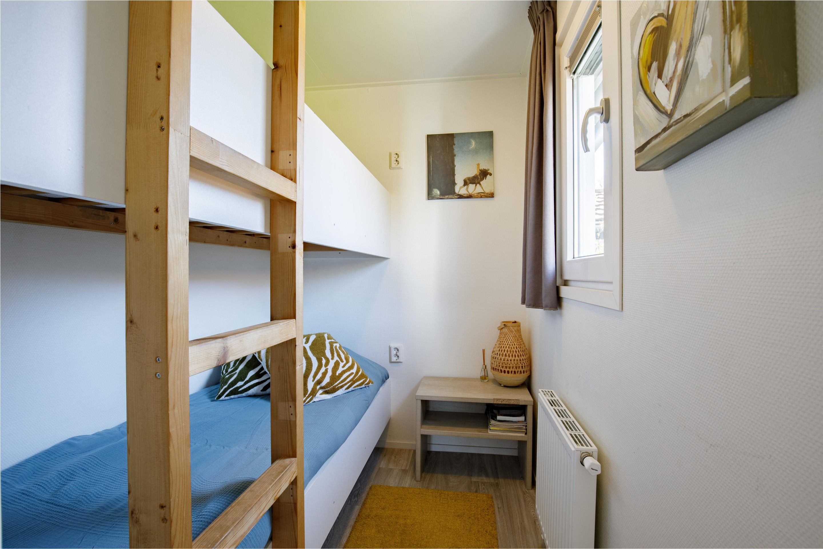 Begane grond De woning beschikt over een lichte en moderne woonkamer met airconditioning. En wordt inclusief de prachtige meubels en inventaris aangeboden, waardoor je hier direct kunt genieten van je eigen vakantieplek nu de seizoen is begonnen! De moderne keuken is voorzien van diverse inbouwapparatuur, waaronder een gaskookplaat, combimagnetron en een koffiezetapparaat, vaatwasser, etc. De woning is voorzien van drie slaapkamers, waaronder een kamer met een stapelbed, een kamer met twee eenpersoonsbedden en de Masterbedroom met een tweepersoonsbed. Dankzij de praktische indeling en de comfortabele inrichting is de woning ideaal voor eigen gebruik, maar ook interessant voor recreatieve verhuur.