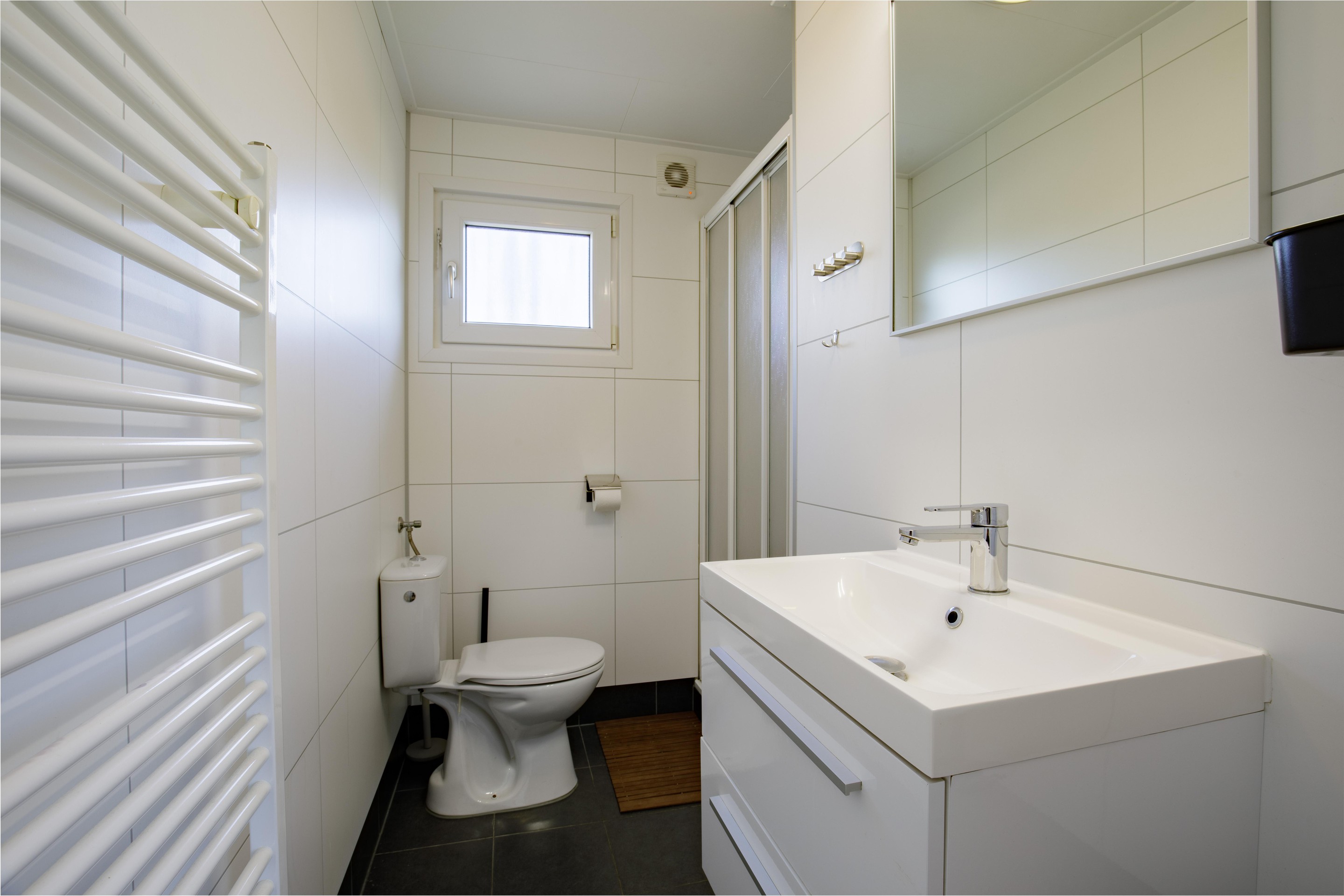 - Badkamer met toilet, inloopdouche en wastafel meubel