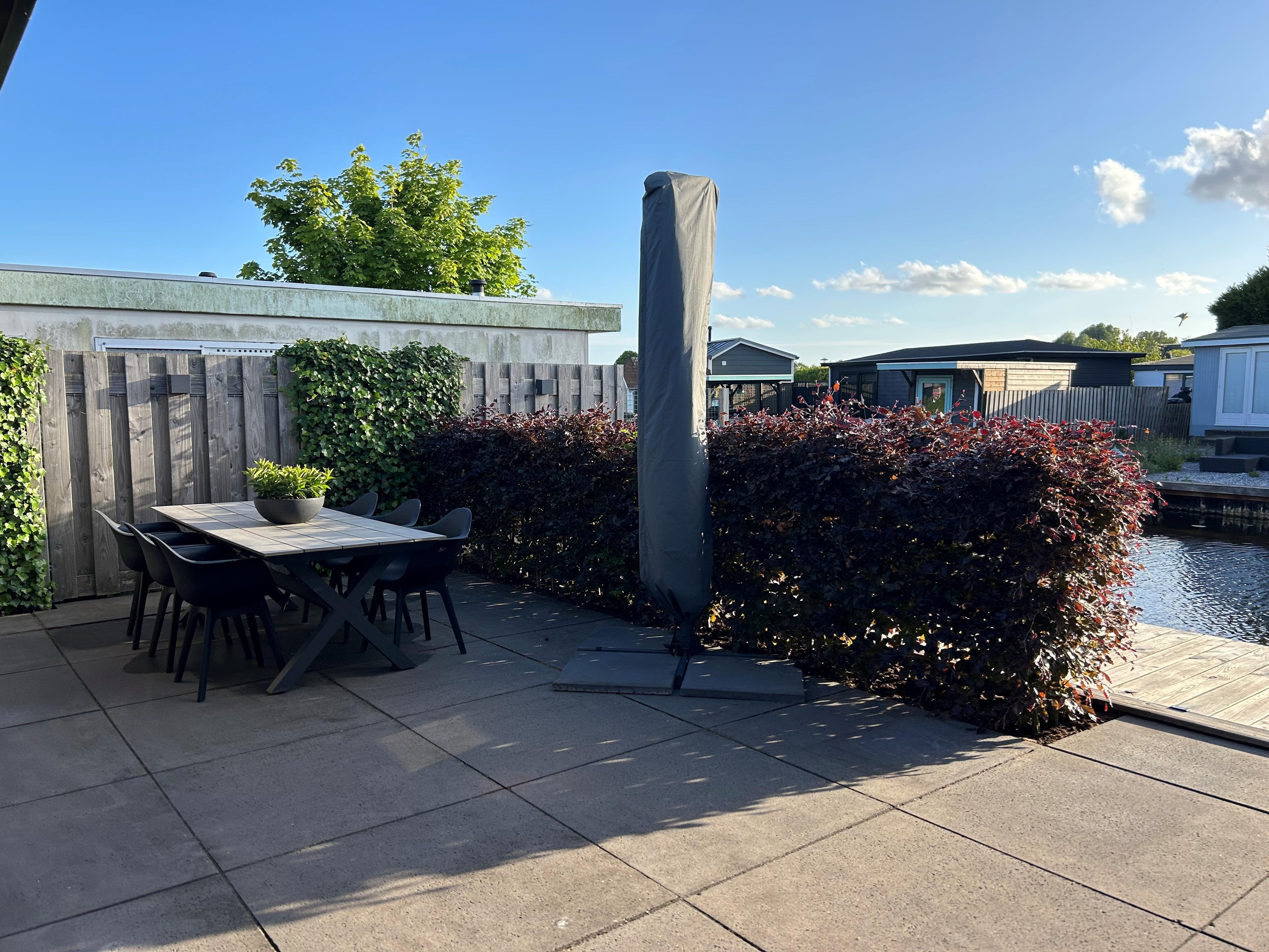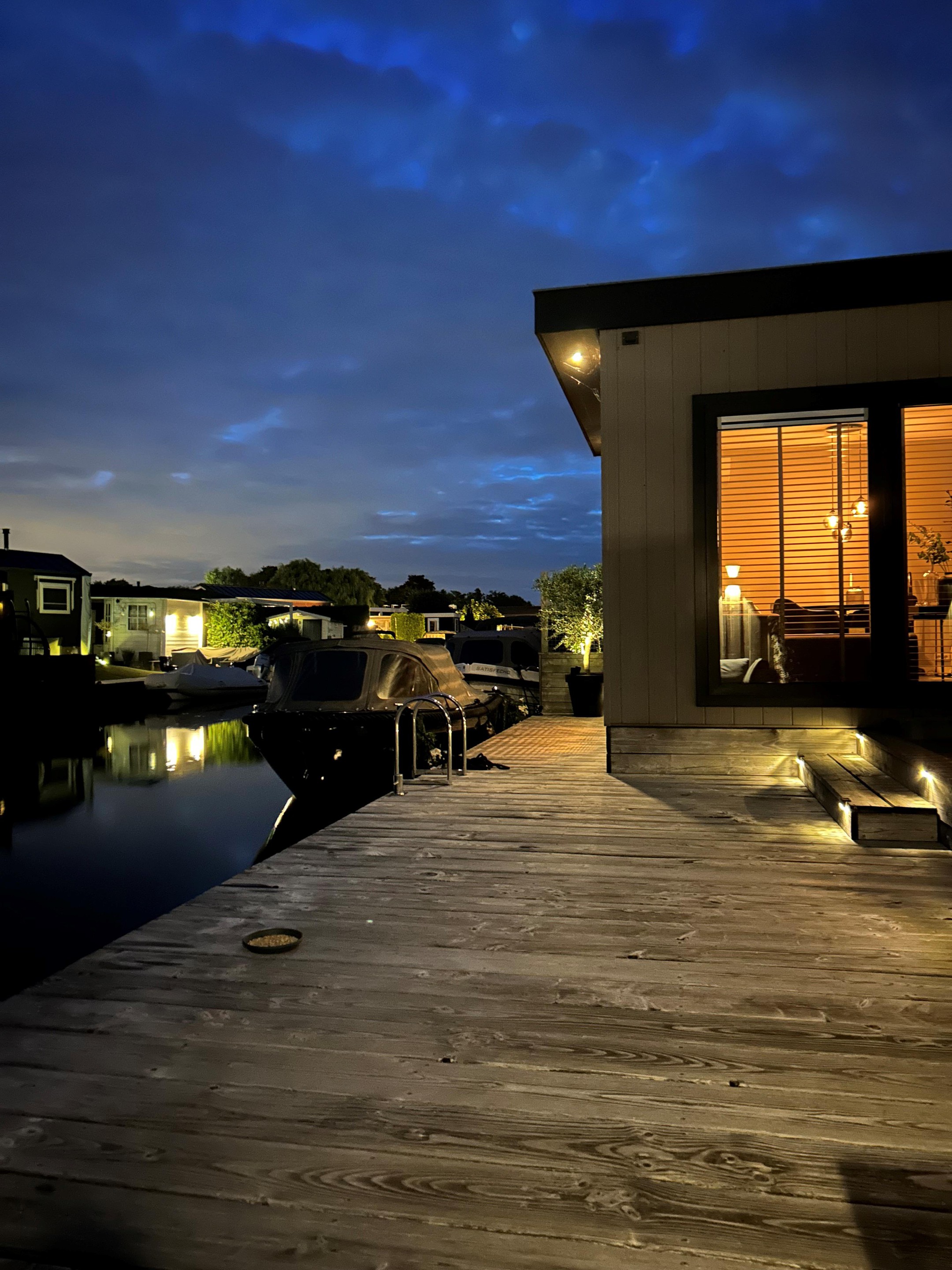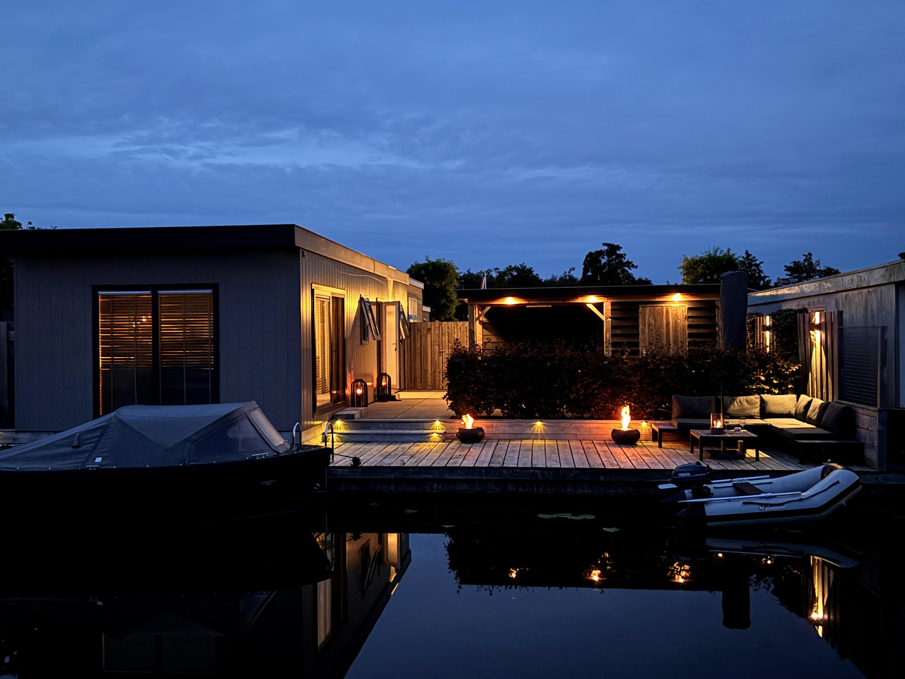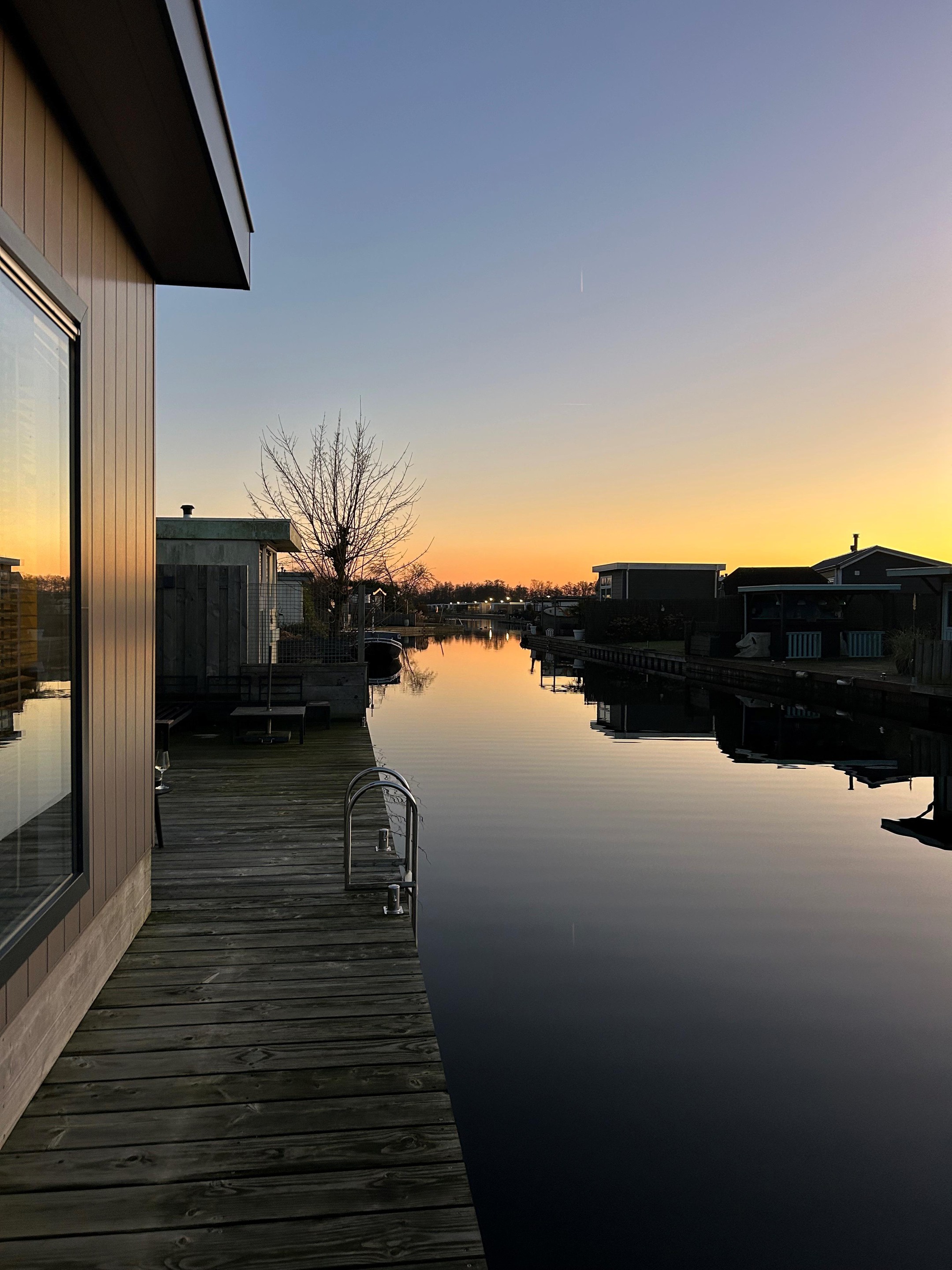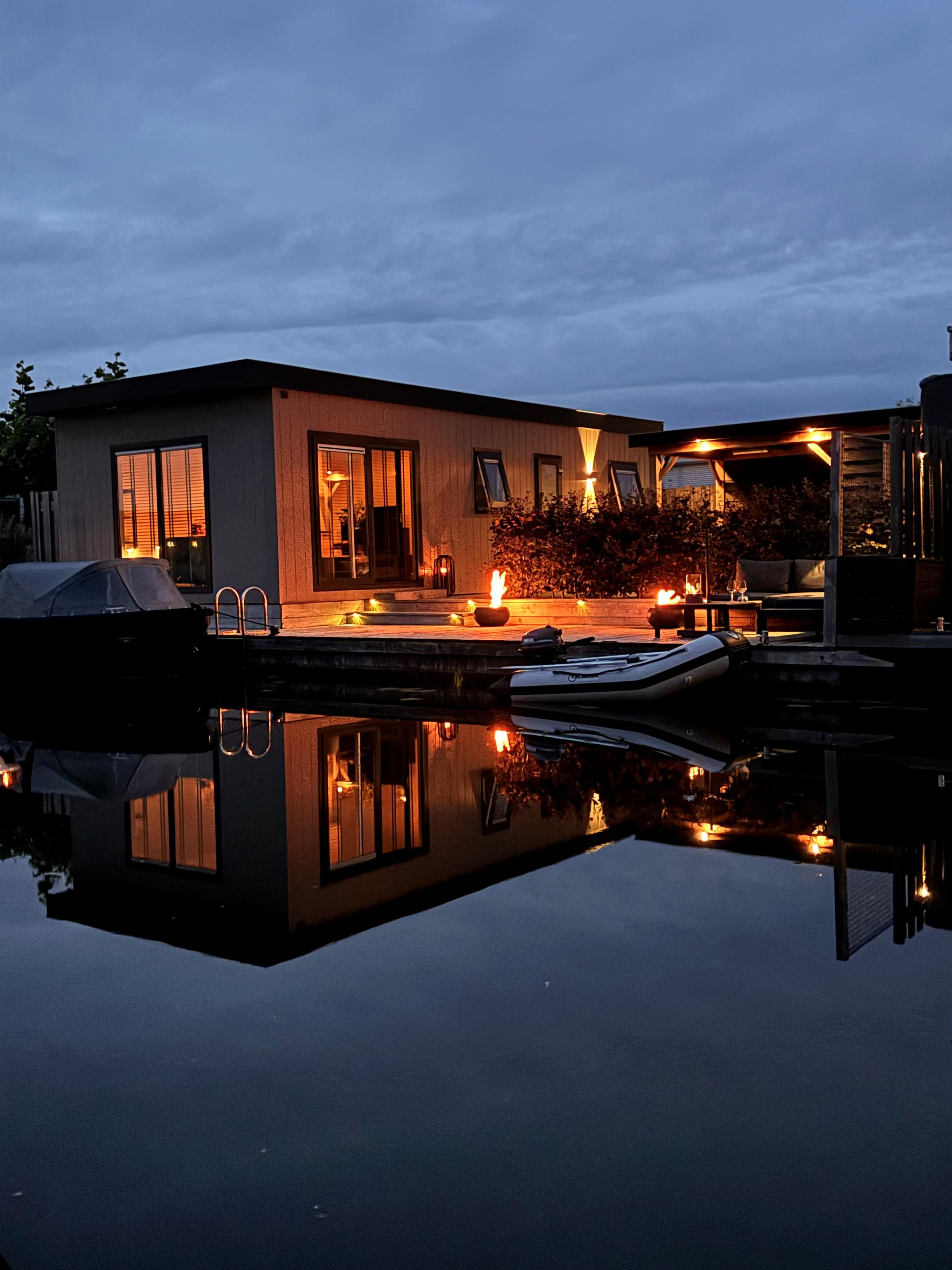 Dit moderne chalet is in 2019 gebouwd en uitgevoerd in onderhoudsarm keralit (vergrijsd ceder) met antracietkleurige kozijnen. Dankzij de ligging aan open vaarwater kun je direct vanaf je eigen steiger zwemmen, suppen of varen. En na een dag op het water? Genieten van de zon op het grote vlonderterras of ontspannen in de lichte woonkamer met airco.