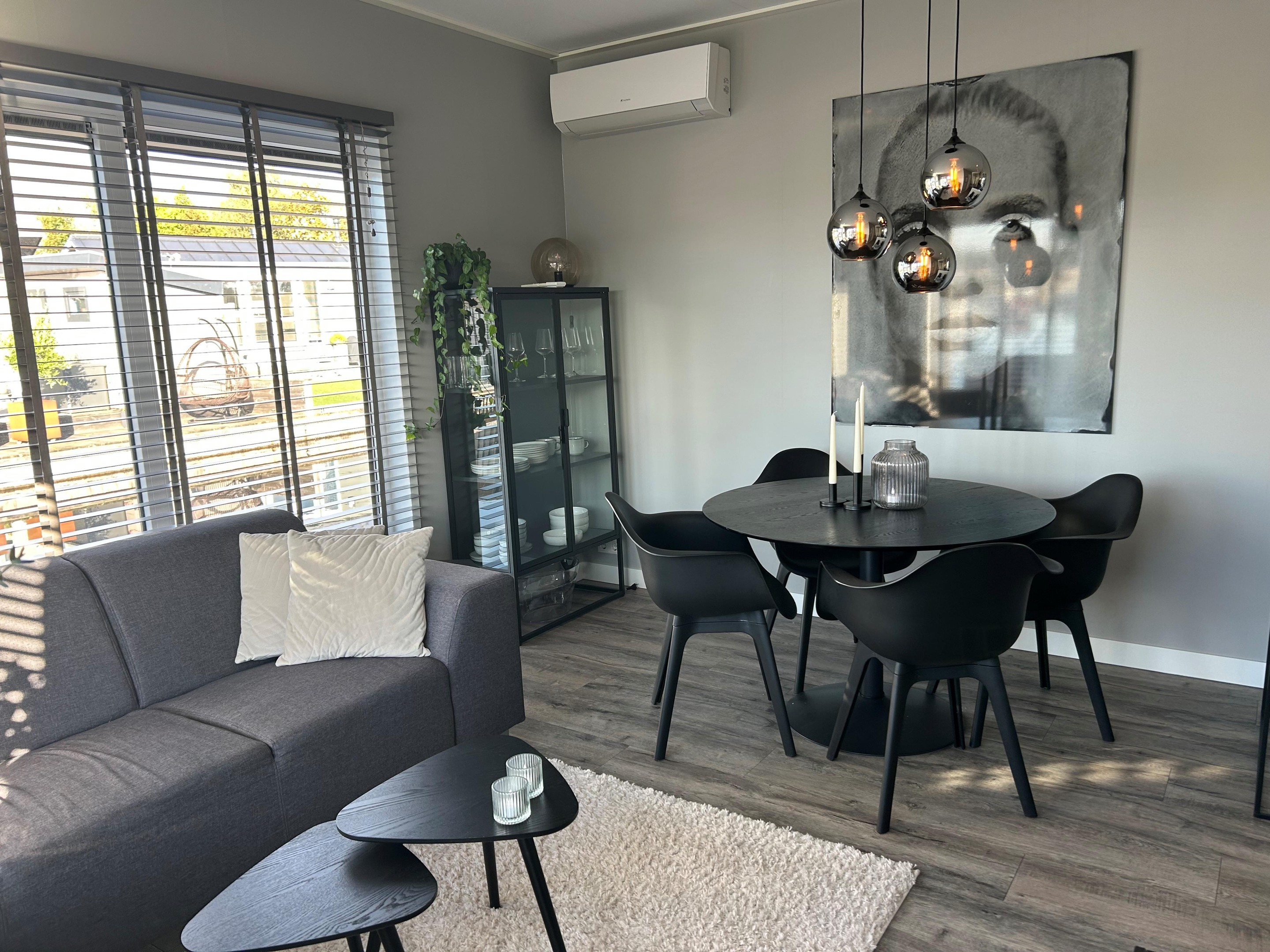 - Een lichte woonkamer met airconditioning (inclusief verwarmingsfunctie)