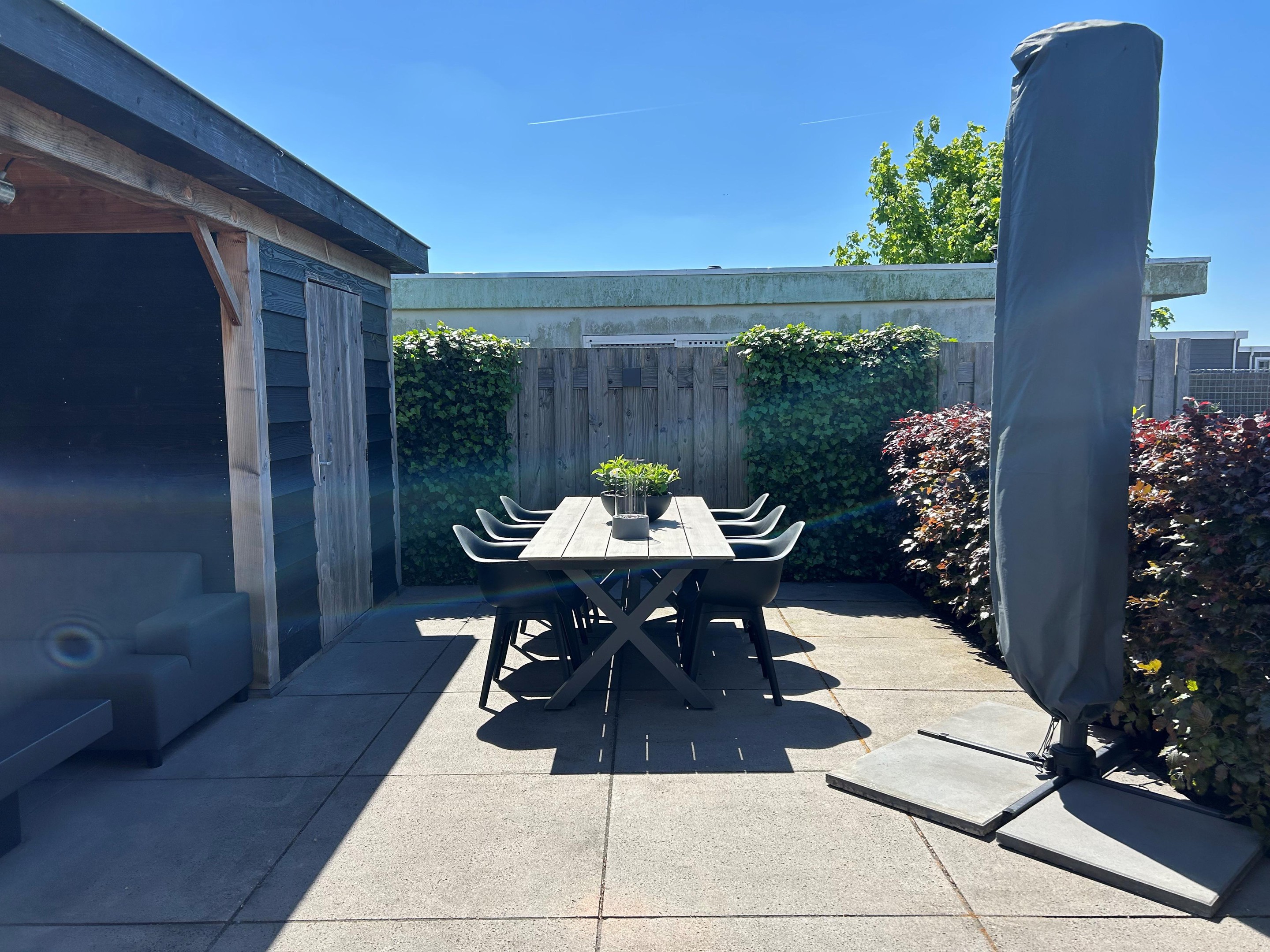 - Fraai aangelegde tuin met betonlook tegels