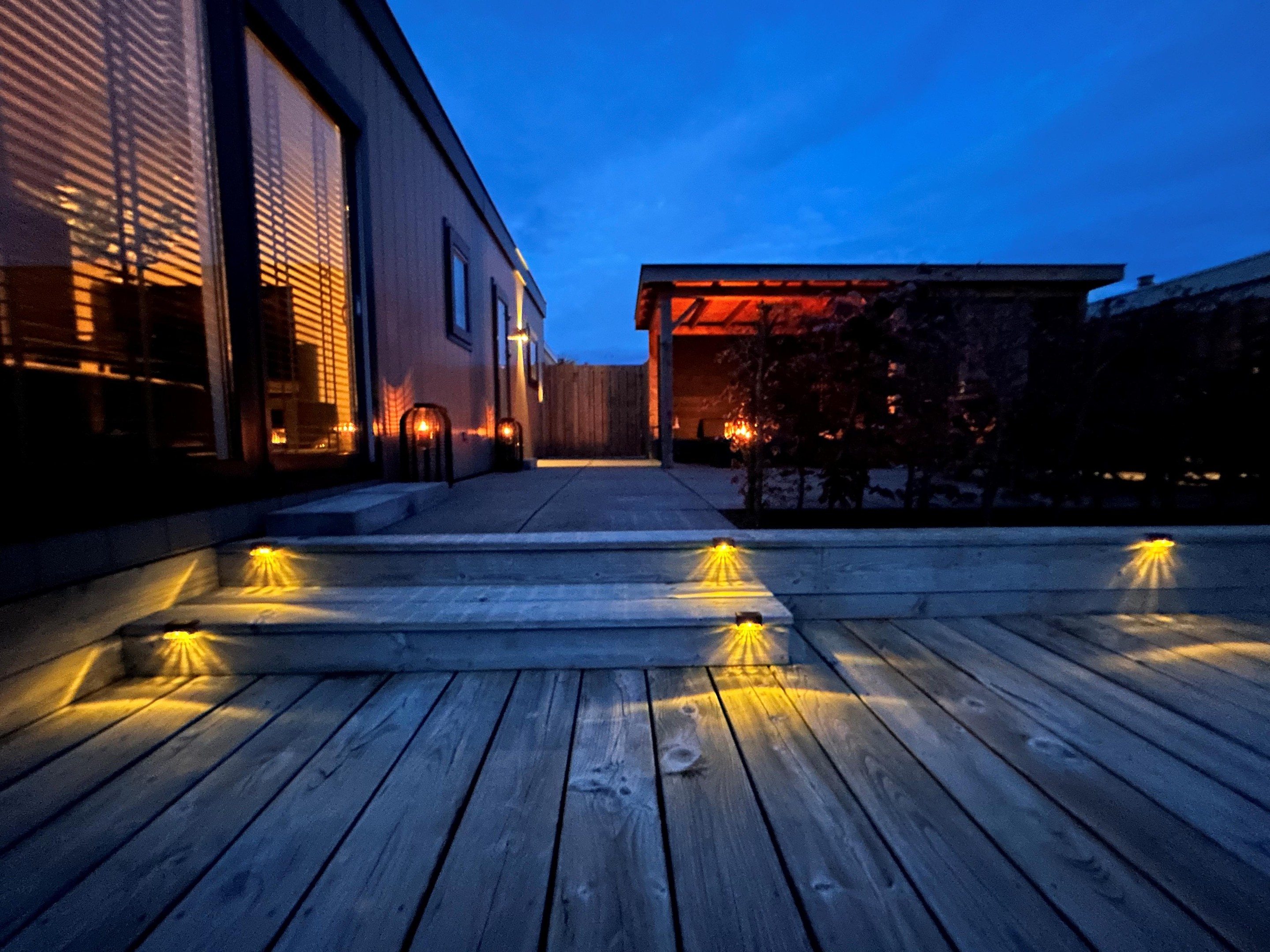 This modern chalet was built in 2019 and features low-maintenance Keralit cladding (weathered cedar) with anthracite window frames. Thanks to its location on open water, you can swim, paddleboard, or boat directly from your own jetty. After a day on the water, relax in the sun on the large deck terrace or unwind in the bright living room with air conditioning.