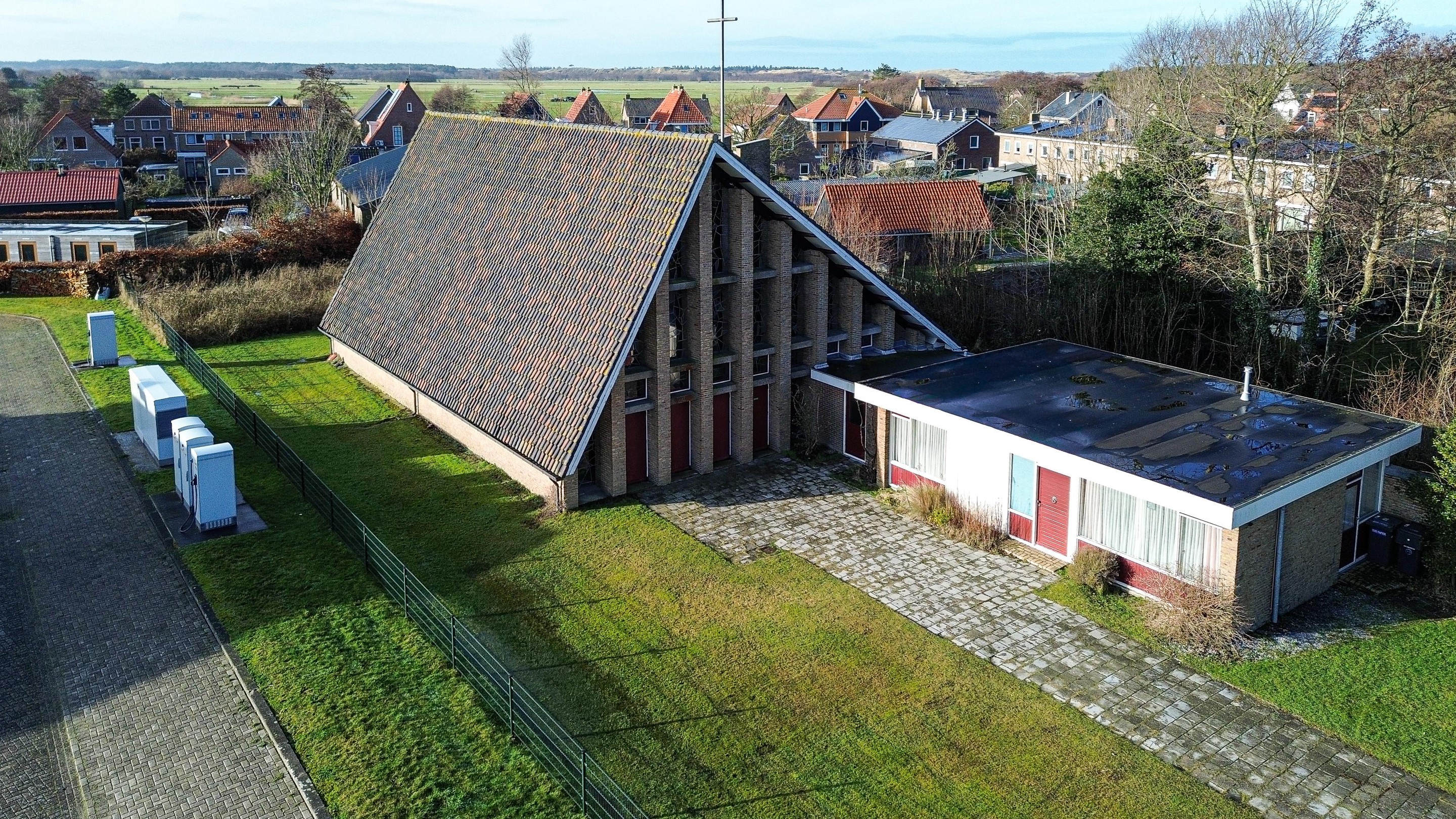 Aan de Brouwershoekweg, nabij de hoofdweg in Midsland, wordt een bijzonder en herkenbaar object aangeboden: de voormalige Petrus de Visserkerk met aangebouwde (kosters)woning. Sinds de bouw in 1960 vormt dit complex een beeldbepalend en vertrouwd element in de omgeving. Het geheel is gelegen op een ruim perceel van 1.958 m2 eigen grond. De combinatie van het karakteristieke kerkgebouw, de zelfstandige woning, de centrale ligging en het royale terrein biedt uitstekende mogelijkheden voor voortzetting van maatschappelijke of religieuze functies, alsmede duidelijke potentie voor herbestemming, bijvoorbeeld ten behoeve van wonen, zorg, cultuur of andere maatschappelijke invullingen.
