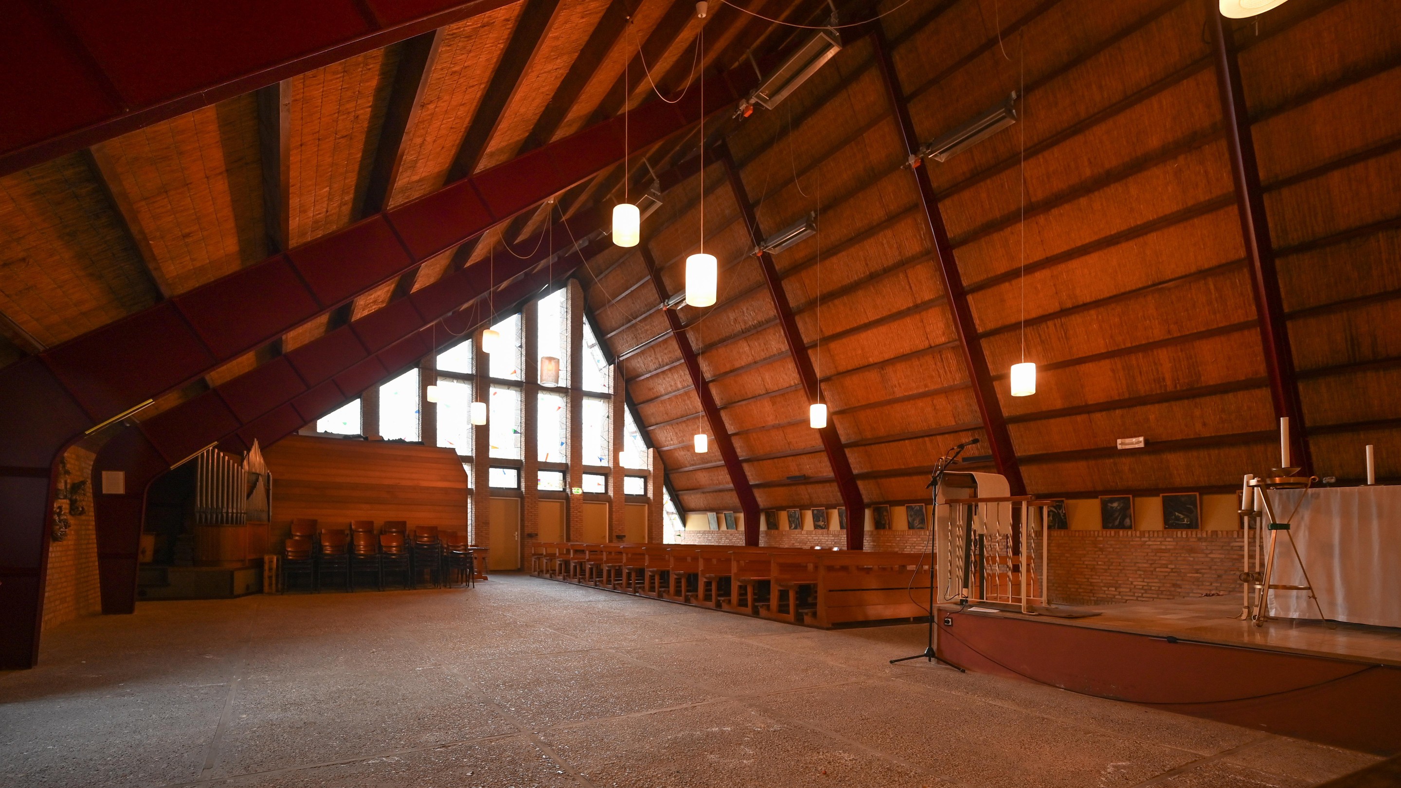 Kerkzaal, afmeting ca. 14.05 x 14.80/18.40 m