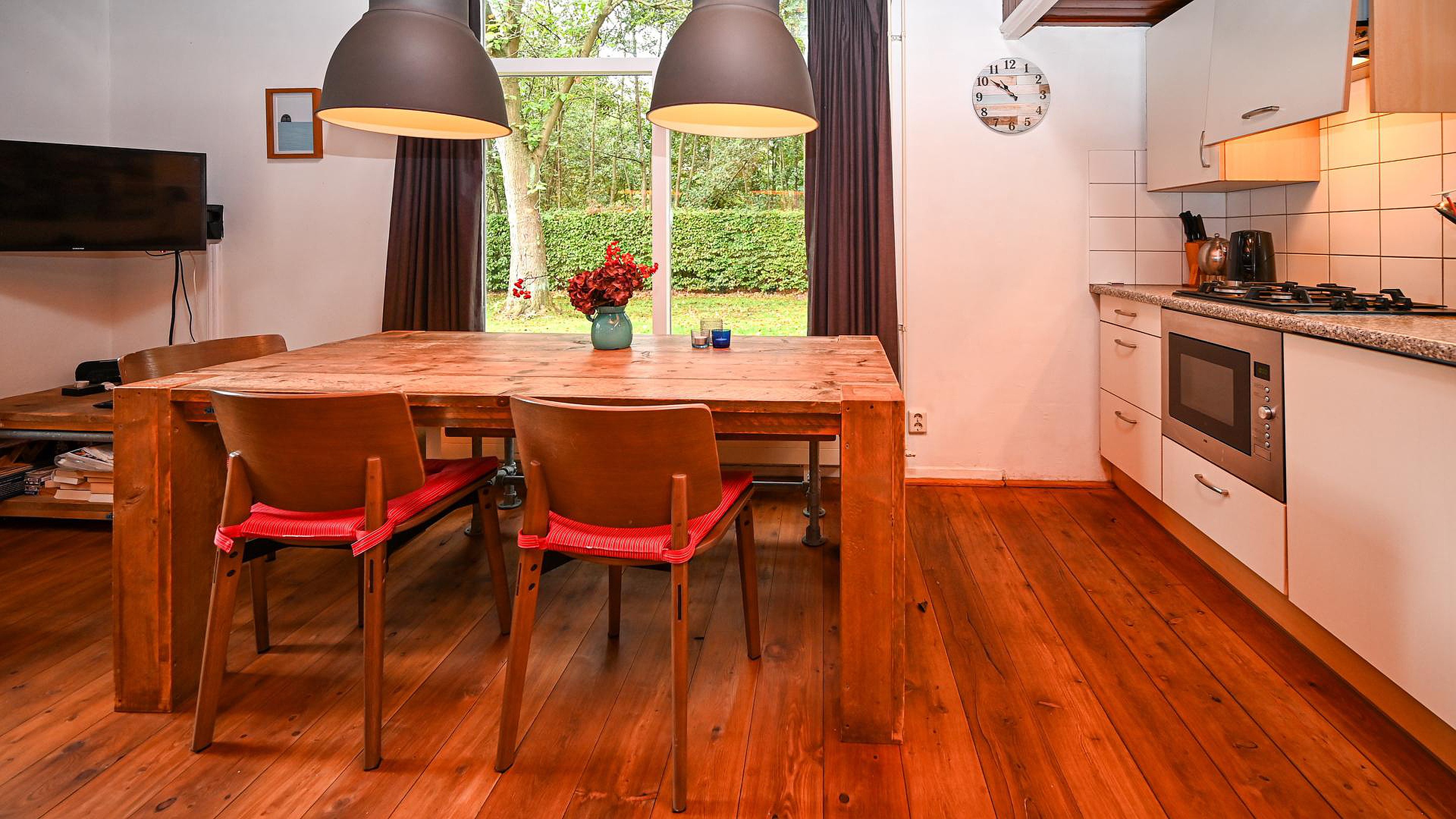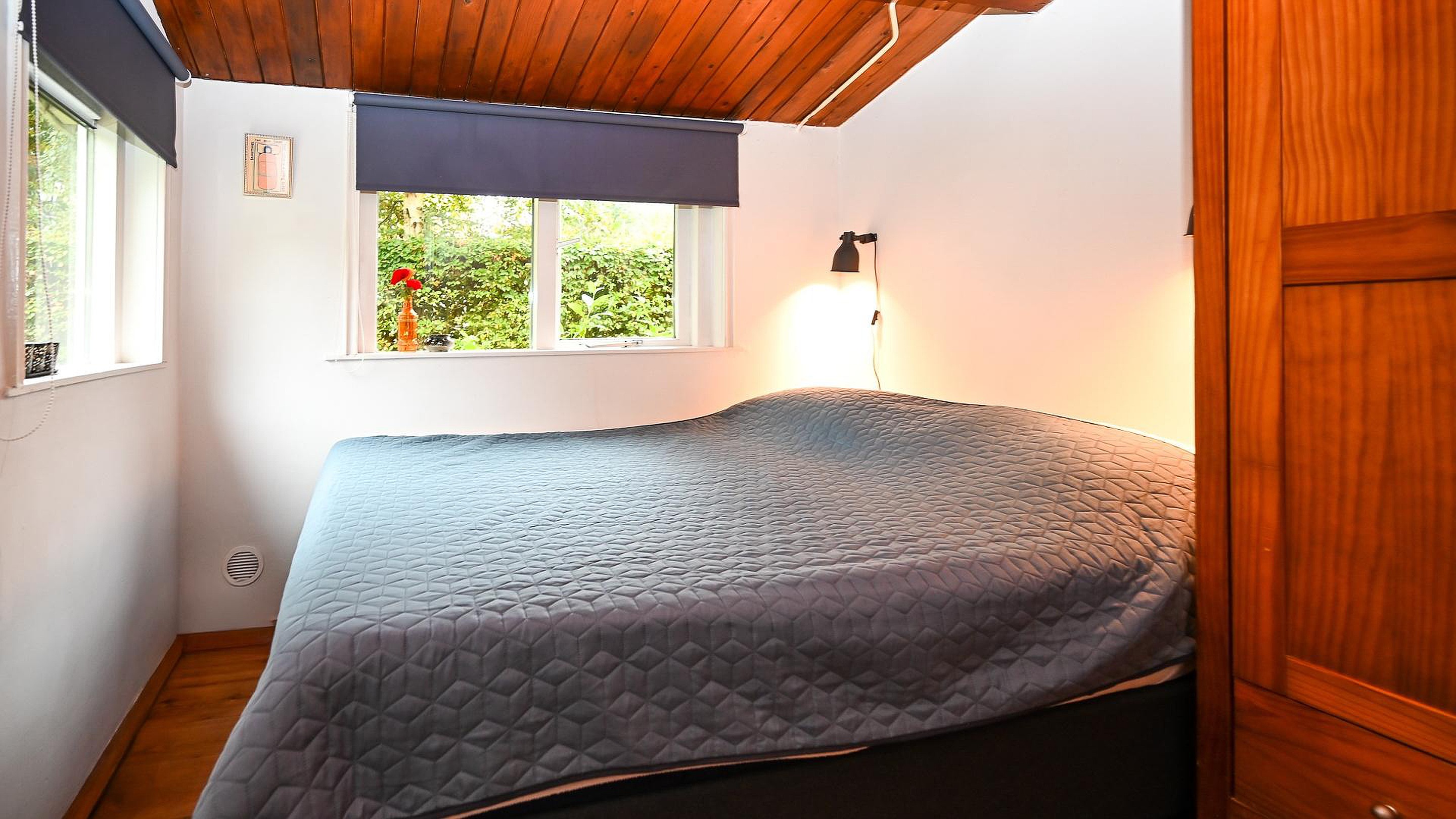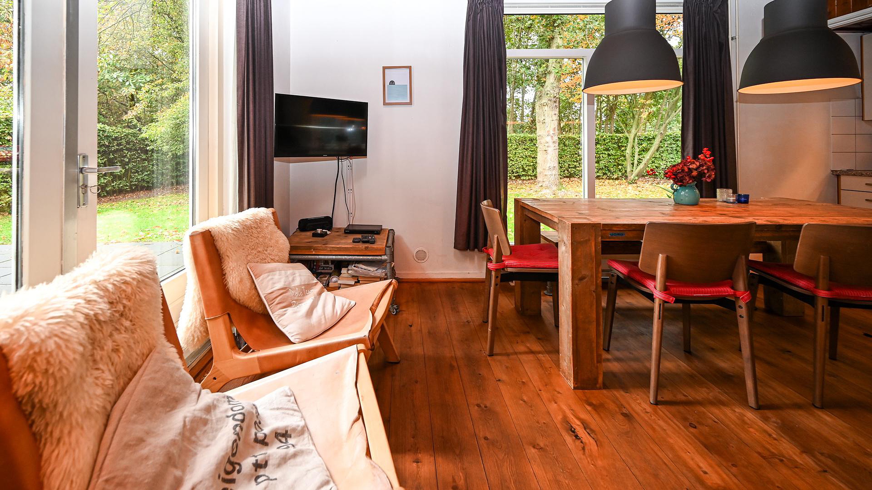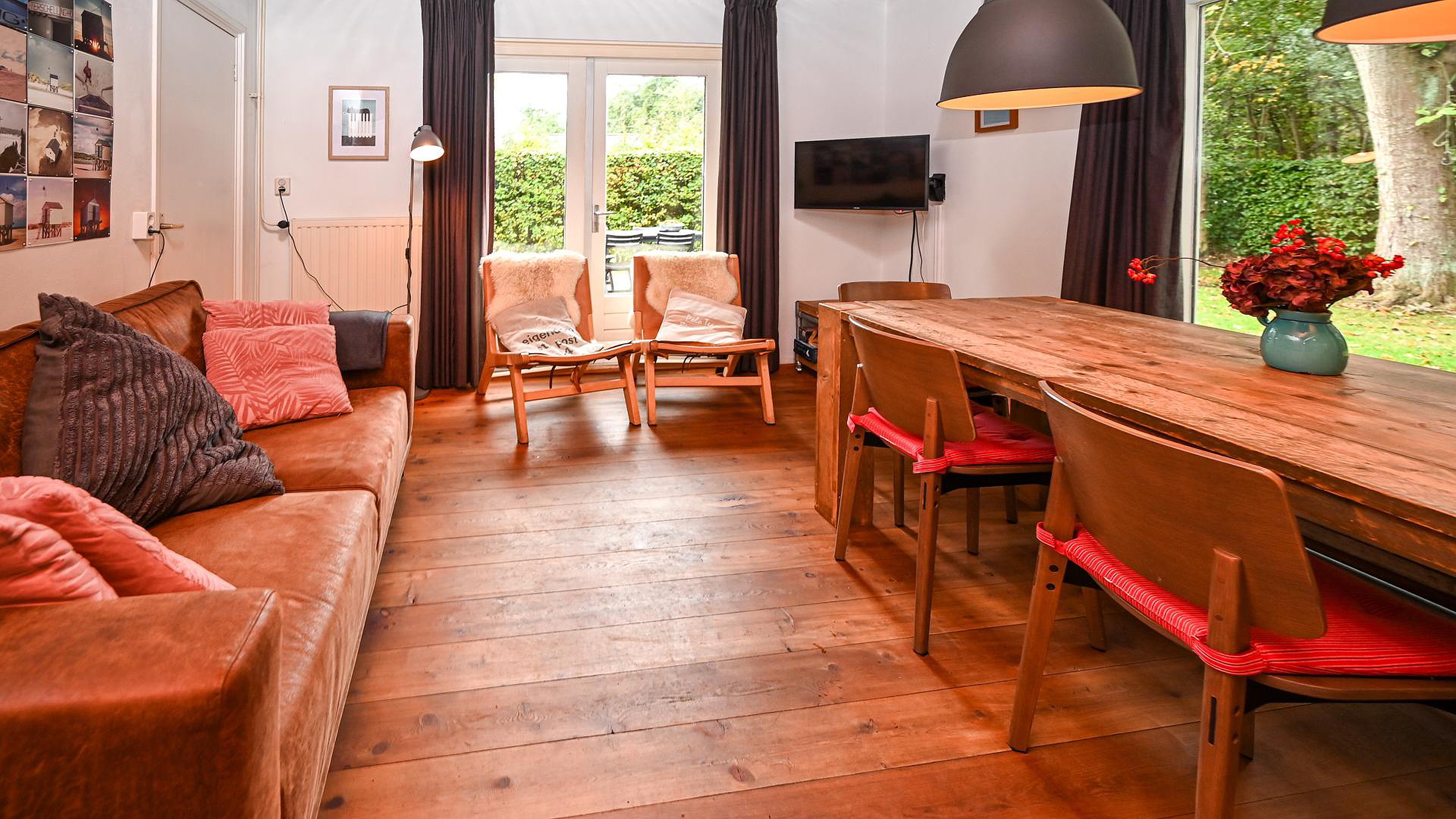 ‘Caprifolium’ beschikt over een knusse woonkamer met open keuken en openslaande deuren naar het zonnige terras op het zuiden, waardoor binnen- en buitenleven naadloos in elkaar overgaan. Daarnaast is er een praktische doorloopslaapkamer, ideaal als kinder- of werkkamer en een tweede slaapkamer met uitzicht op de groene tuin. De badkamer is voorzien van een douche en wastafel met daarnaast een separaat toilet in de de hal. De tuin rondom de woning is fraai aangelegd en volledig omheind door groen en een toegangshek wat zorgt voor optimale privacy en een veilig gevoel. De sfeer van zowel de woning als het perceel is bijzonder warm, knus en met een uniek karakter dat direct een vakantiegevoel oproept het hele jaar rond.