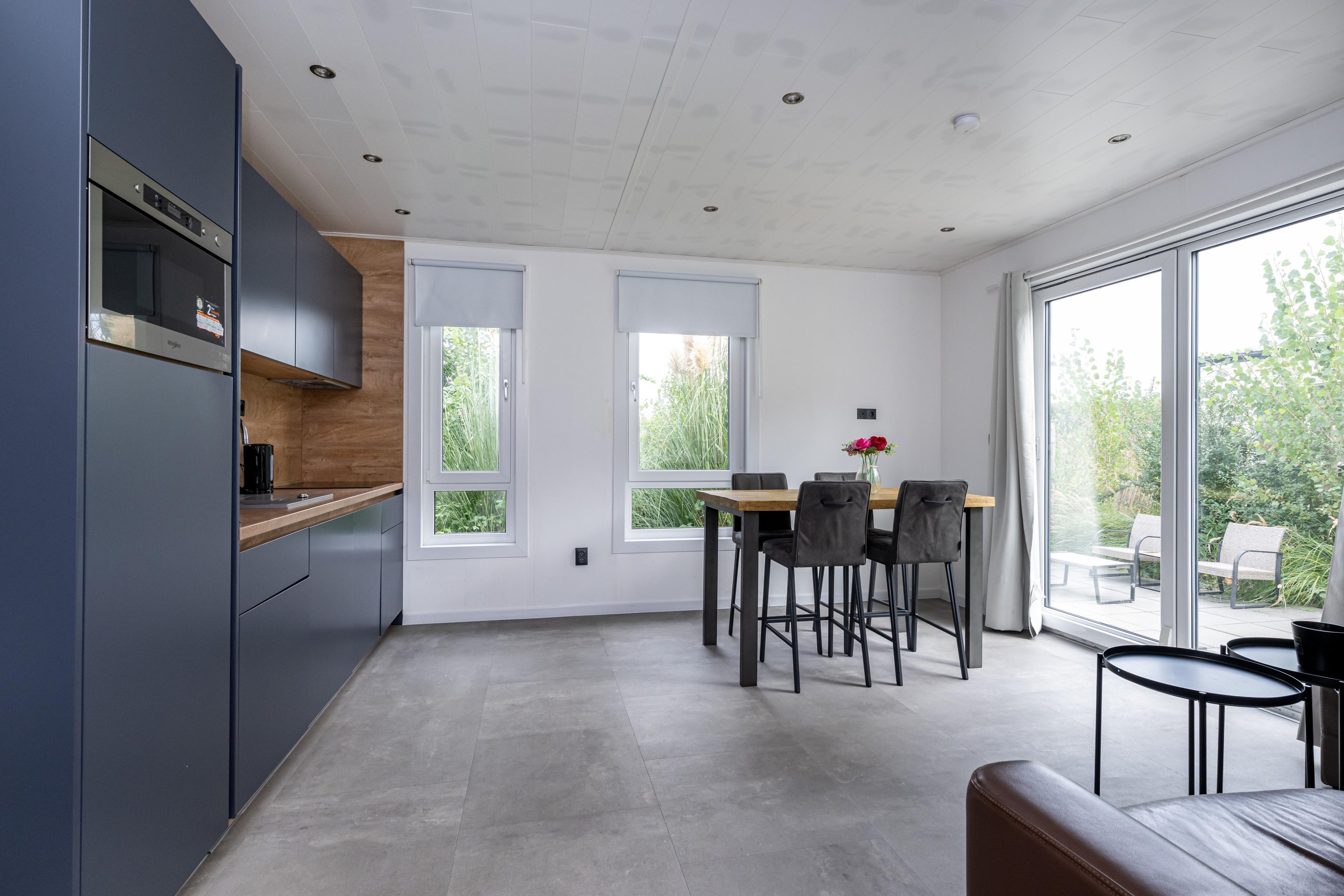 De Cube is met 46 m2 slim ingedeeld en levert alles wat u zoekt in een moderne recreatiewoning: twee slaapkamers, een badkamer met royale inloopdouche, een apart toilet en een technische ruimte/berging. Door de toepassing van ledverlichting door het gehele model — met dimverlichting in de keuken en woonkamer — creëert u eenvoudig de gewenste sfeer. Het chalet is volledig gasloos; verwarming verloopt via radiatoren in combinatie met een airconditioningunit die zowel koelt als verwarmt, waardoor u het hele jaar door comfortabel verblijft. De keuken is compleet uitgevoerd met kastjes met soft-closing en A-merk apparatuur, waaronder een combi-oven, vaatwasser en een 4-pits inductieplaat. Dankzij hoge isolatiewaarden, luxe gevelbekleding en triple glas blijft de warmte binnen en de koude buiten; een schuifdeur naar het terras vergroot de leefruimte in de zomer, en het ontwerp is winterhard uitgevoerd — gebouwd om de Nederlandse wisselende seizoenen met gemak te doorstaan.
