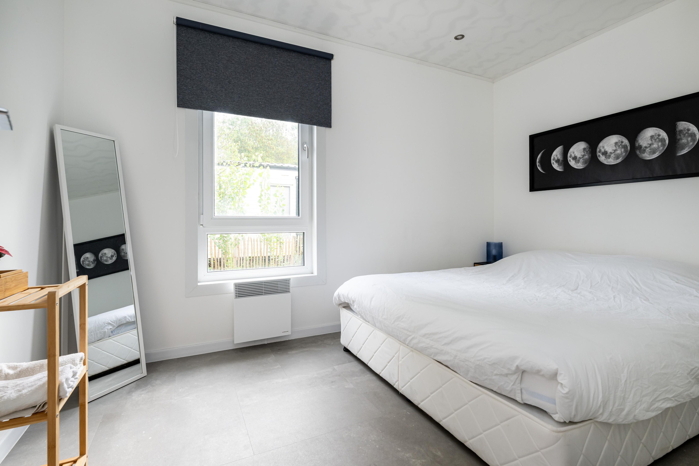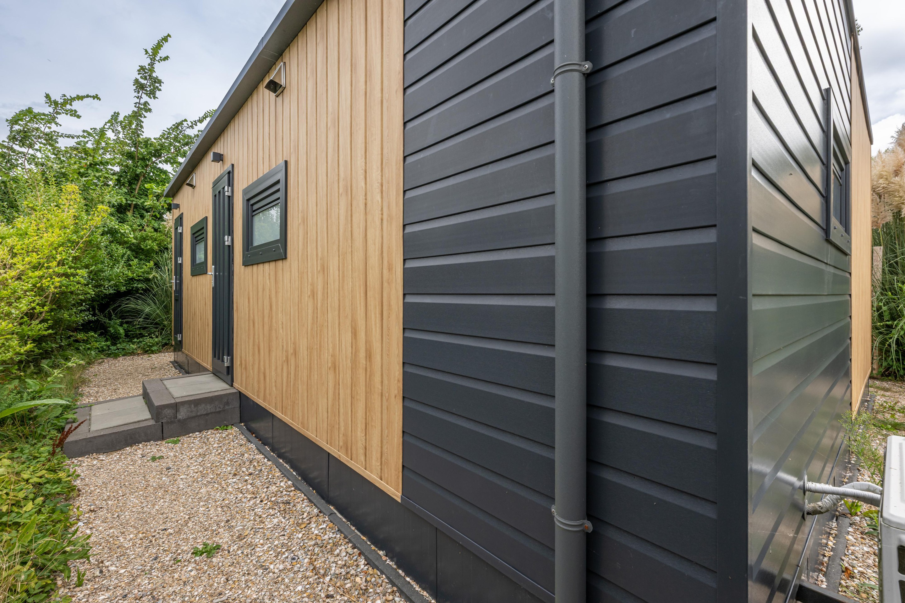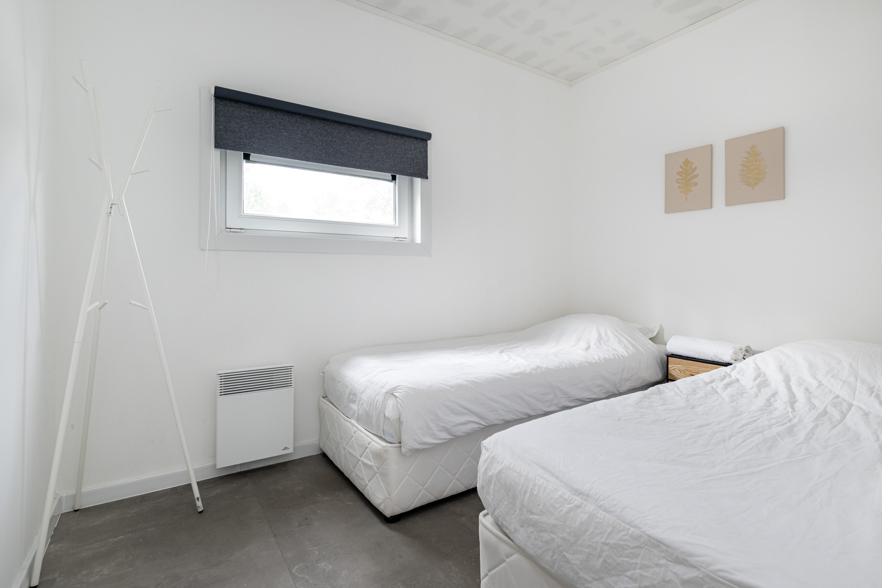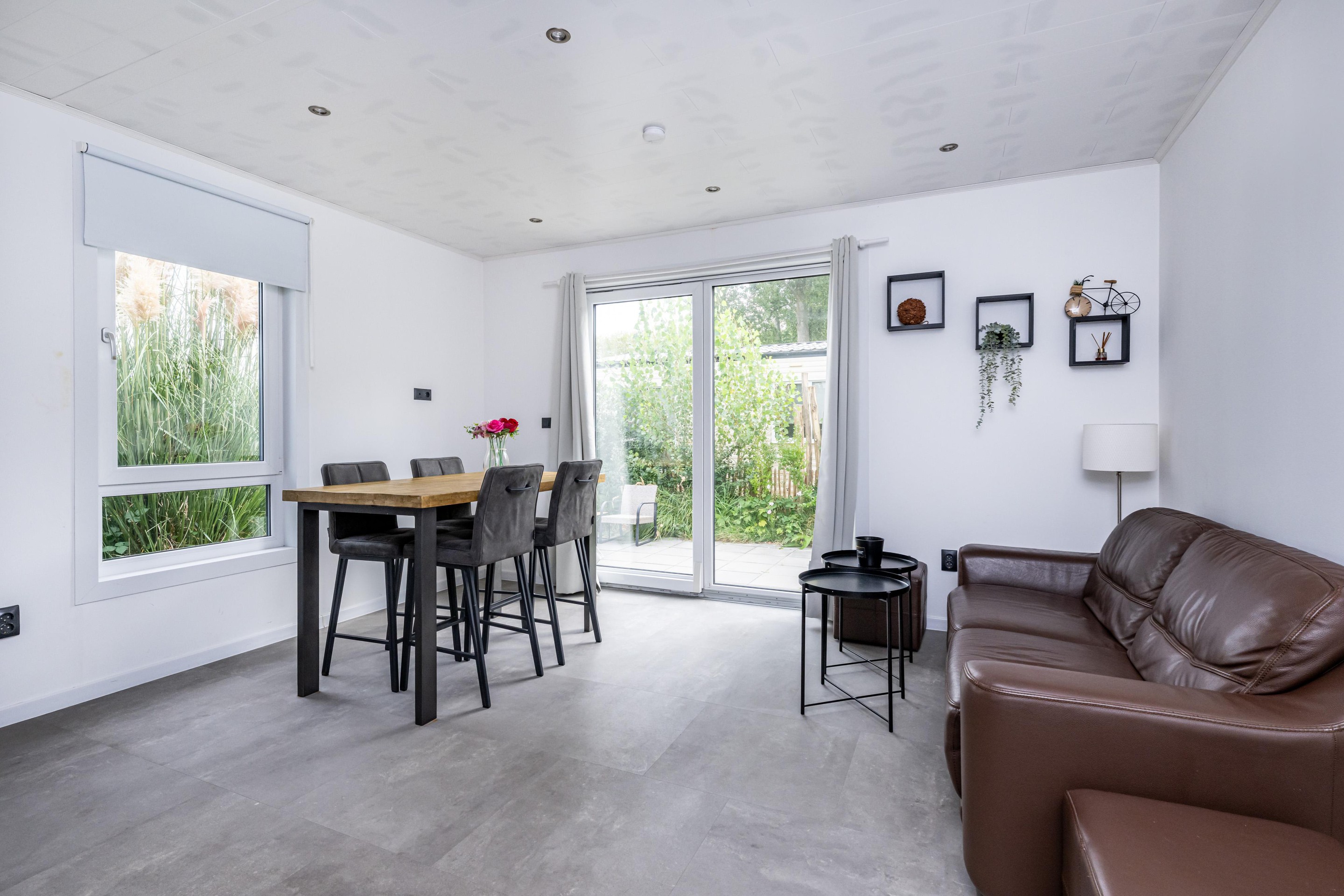 Deze fraai afgewerkte chalet, het model The Cube (bouwjaar 2021), verandert uw verblijf direct in een waar plezier: een ruime woonkamer met een luxe open keuken vormt het hart van de woning, twee slaapkamers bieden comfortabele slaapruimte, de luxe badkamer met inloopdouche en het separate toilet verhogen het wooncomfort nog verder en een praktische technische ruimte/berging zorgt voor nette opslag en installatieoplossingen.